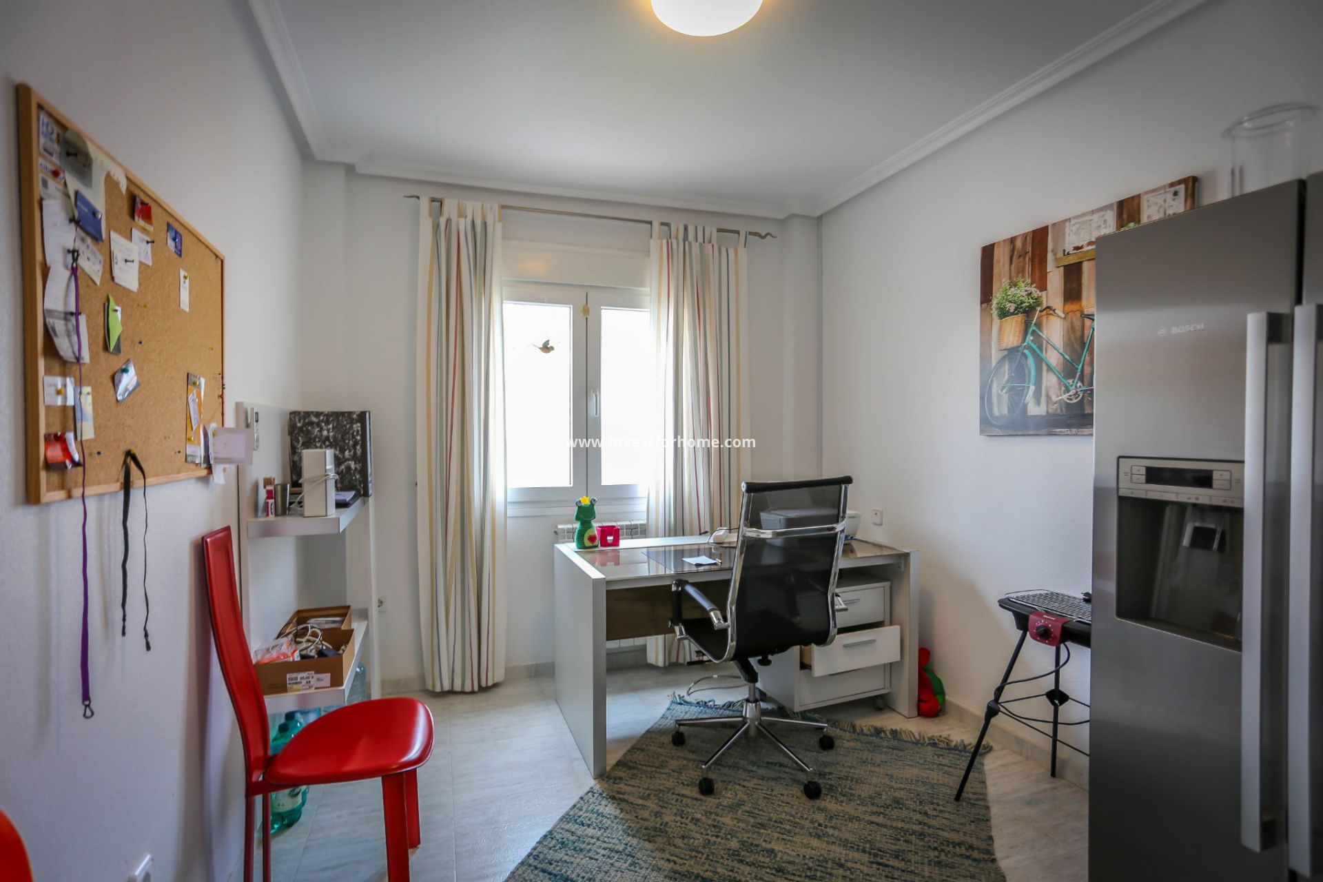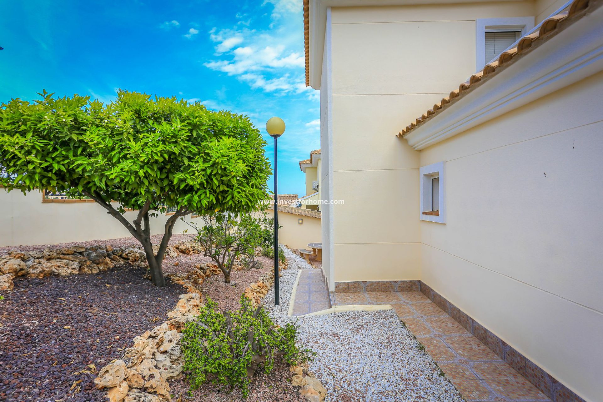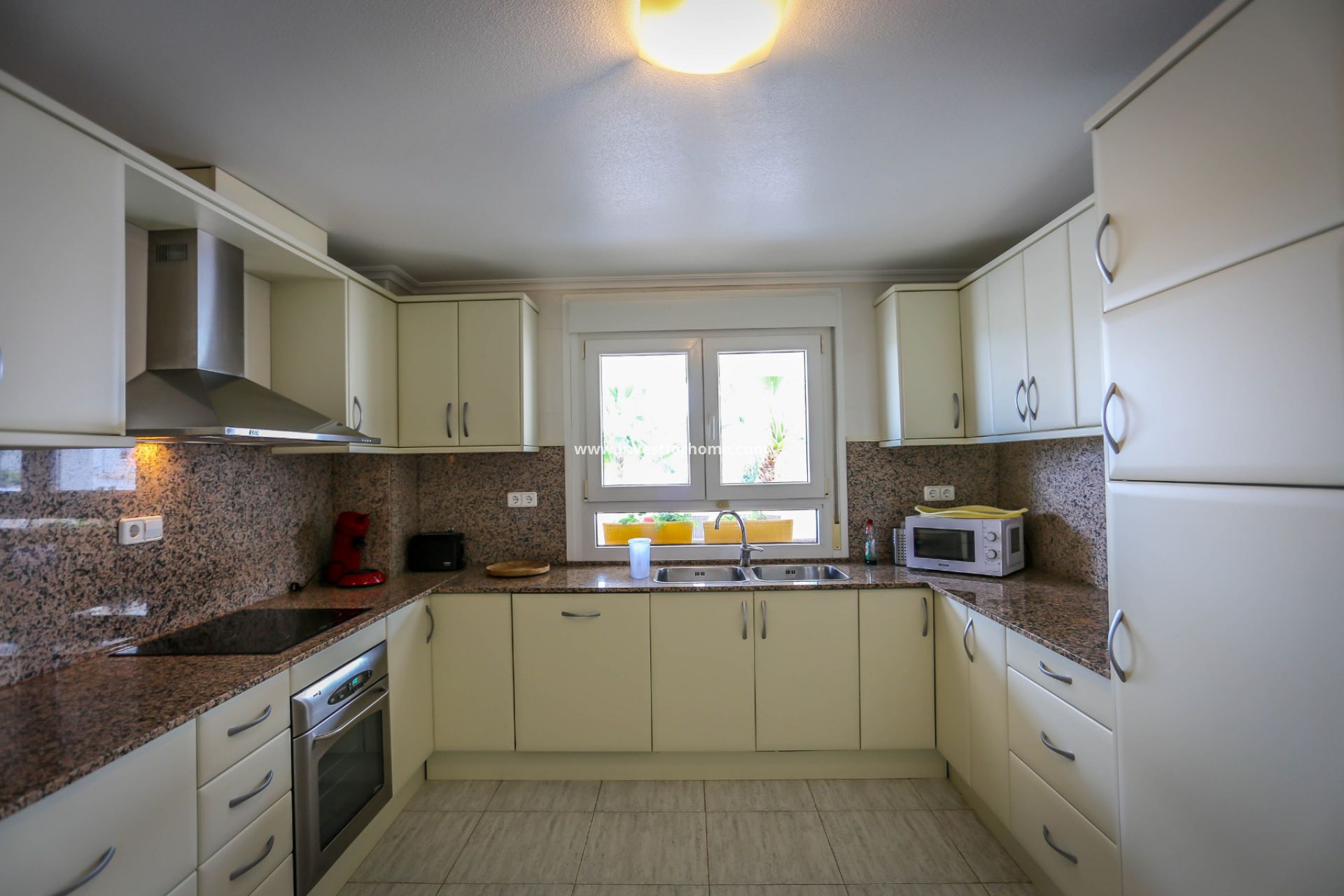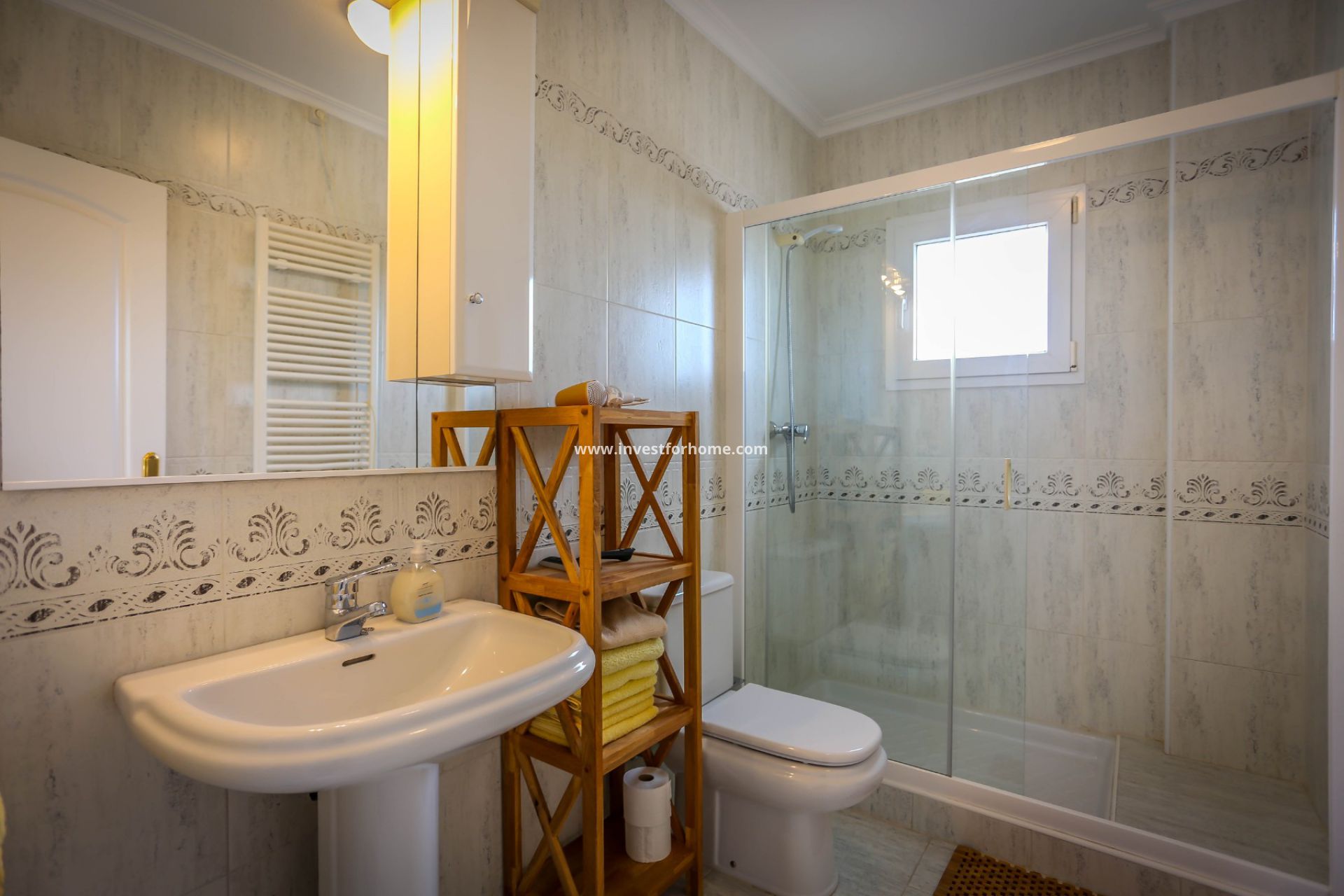 Magnifique villa familiale spacieuse dans le Golf de Lomas de Campoamor comprenant 5 chambres et 4 salles de bains. La villa a une surface habitable totale de 270 m² répartis sur trois étages. Le rez-de-chaussée se compose d'une entrée, de deux chambres doubles , salle de bain et W.C . En outre, une grande cuisine équipée et un salon avec un espace pour une salle à manger et un salon. Le premier étage est composé de 3 chambres et 2 salles de bains. Le sous-sol comprend un garage, une buanderie et une salle de bain. La villa est située sur un terrain de 550 m². Dans le jardin, il y a une grande piscine privée et beaucoup d'espace pour s'asseoir à l'extérieur et transats. La villa est située à seulement 4 km des belles plages de sable d'Orihuela Costa. Dans le quartier, vous trouverez toutes les commodités telles qu'un centre commercial, des boutiques, des restaurants, des bars et plusieurs terrains de golf. Cette belle villa est idéale pour les vacances ou toute l'année.