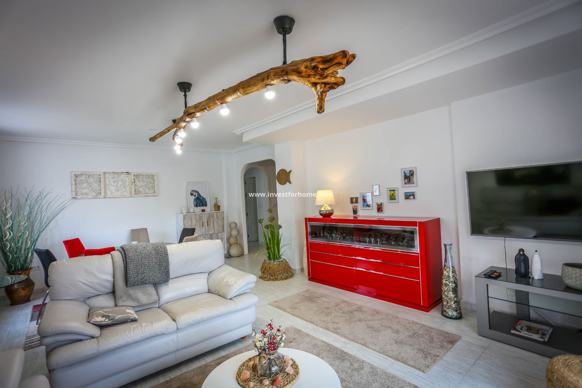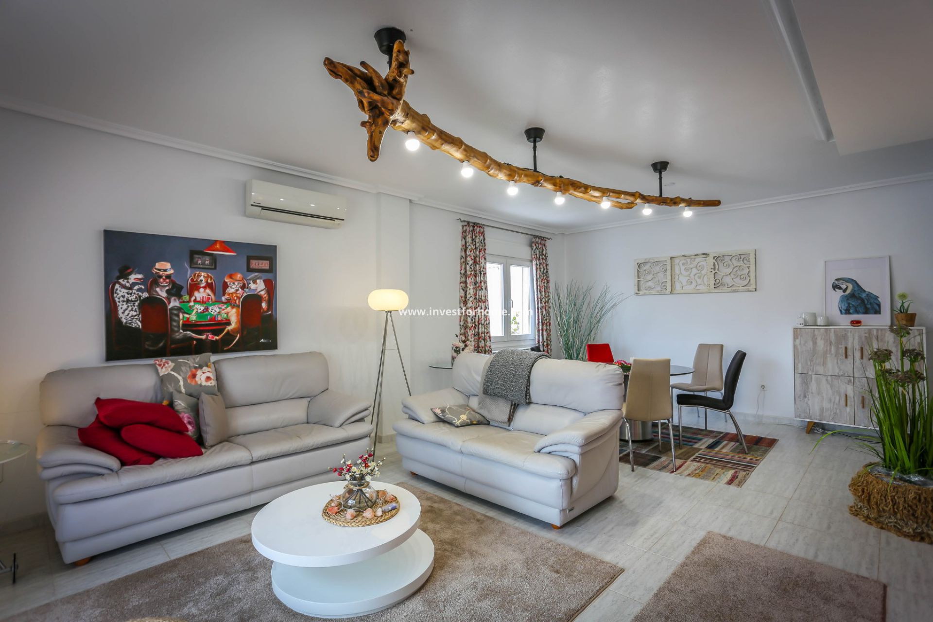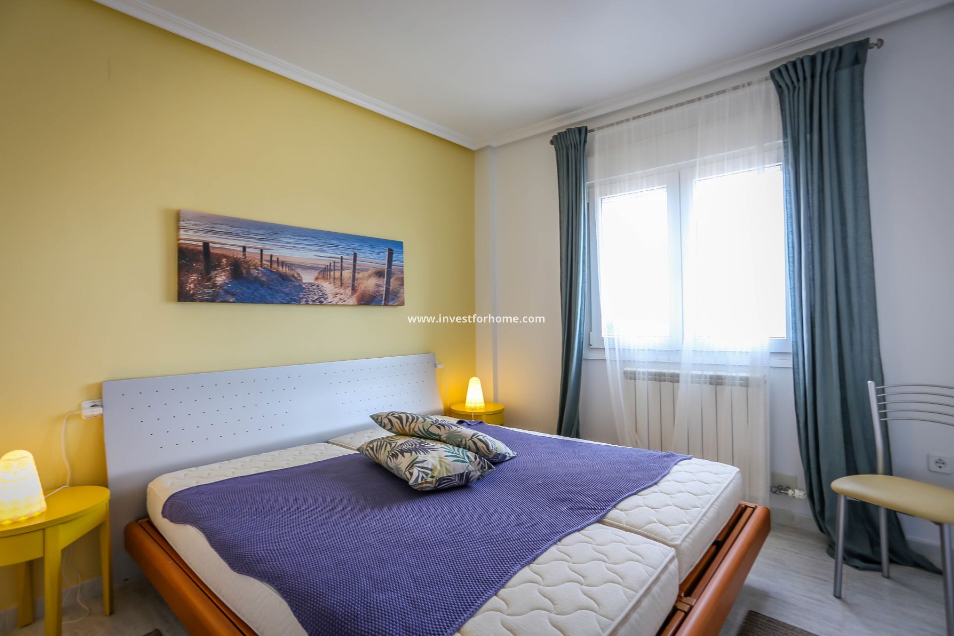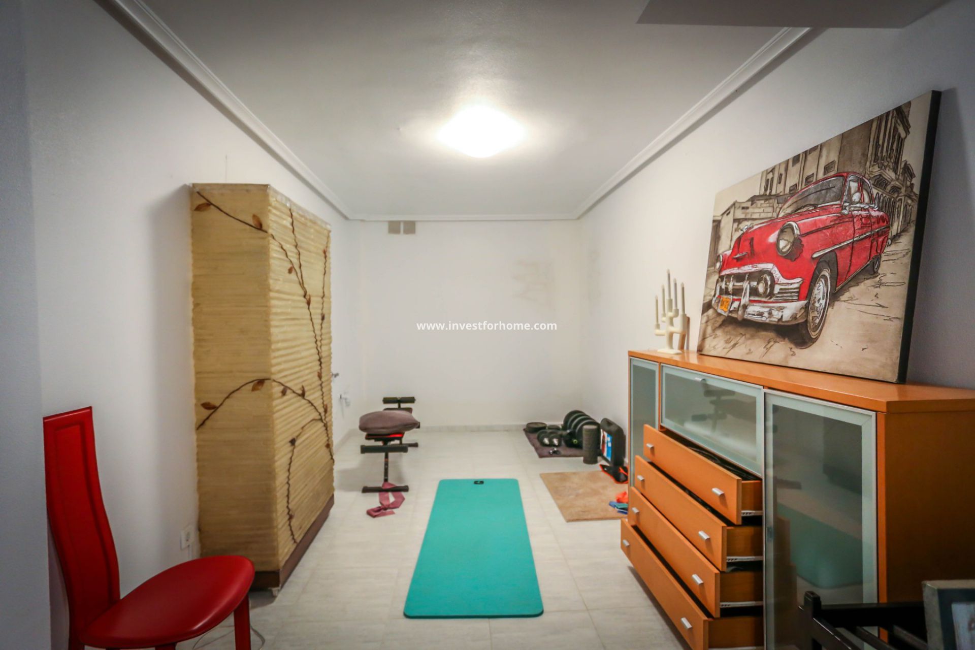 Magnifique villa familiale spacieuse dans le Golf de Lomas de Campoamor comprenant 5 chambres et 4 salles de bains. La villa a une surface habitable totale de 270 m² répartis sur trois étages. Le rez-de-chaussée se compose d'une entrée, de deux chambres doubles , salle de bain et W.C . En outre, une grande cuisine équipée et un salon avec un espace pour une salle à manger et un salon. Le premier étage est composé de 3 chambres et 2 salles de bains. Le sous-sol comprend un garage, une buanderie et une salle de bain. La villa est située sur un terrain de 550 m². Dans le jardin, il y a une grande piscine privée et beaucoup d'espace pour s'asseoir à l'extérieur et transats. La villa est située à seulement 4 km des belles plages de sable d'Orihuela Costa. Dans le quartier, vous trouverez toutes les commodités telles qu'un centre commercial, des boutiques, des restaurants, des bars et plusieurs terrains de golf. Cette belle villa est idéale pour les vacances ou toute l'année.