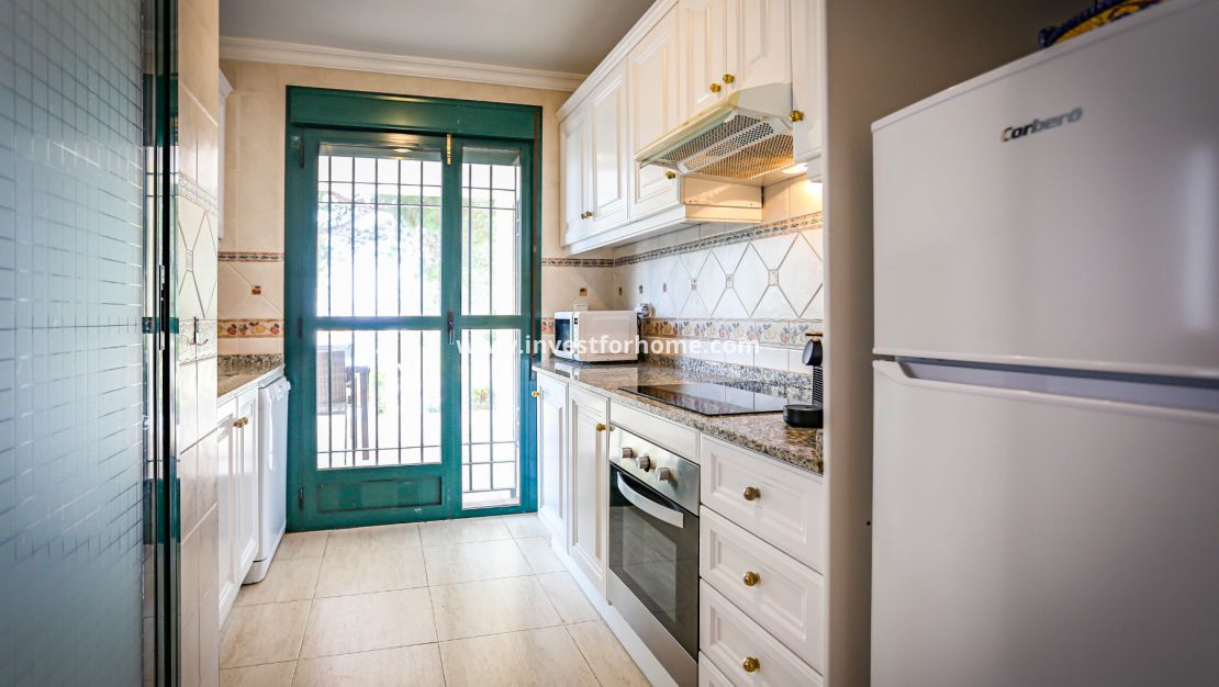 Il s'agit d'un appartement Majorque d'angle de 2 chambres au rez-de-chaussée dans la résidence Lomas de Campoamor Golf. Cet appartement spacieux a été récemment rénové et est en parfait état. Le grand hall d'entrée mène à la cuisine, à l'espace de vie principal, à la salle de bain familiale et aux deux chambres, dont une en suite. La cuisine est bien conçue et dispose de beaucoup d'espace de rangement et tous les produits blancs sont inclus. De la cuisine, une porte vitrée mène à la terrasse bien dimensionnée avec des rideaux de verre qui mène au jardin privé. Le salon est une pièce lumineuse et spacieuse avec air conditionné. Il y a aussi des portes vitrées menant à la terrasse. L'autre côté du couloir mène aux chambres et aux salles de bains de taille généreuse. C'est un bel appartement dans le quartier très populaire de Lomas de Campoamor et une bonne opportunité comme maison de vacances ou comme bien locatif. Les aéroports internationaux d'Alicante et de Murcie sont à moins de 40 minutes en voiture.