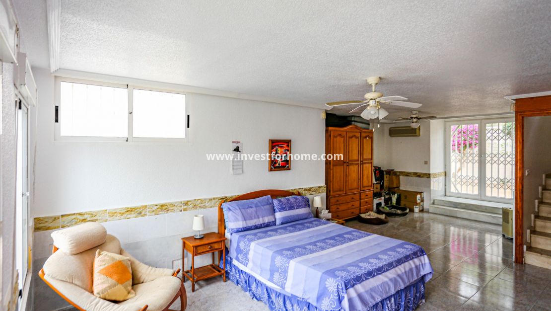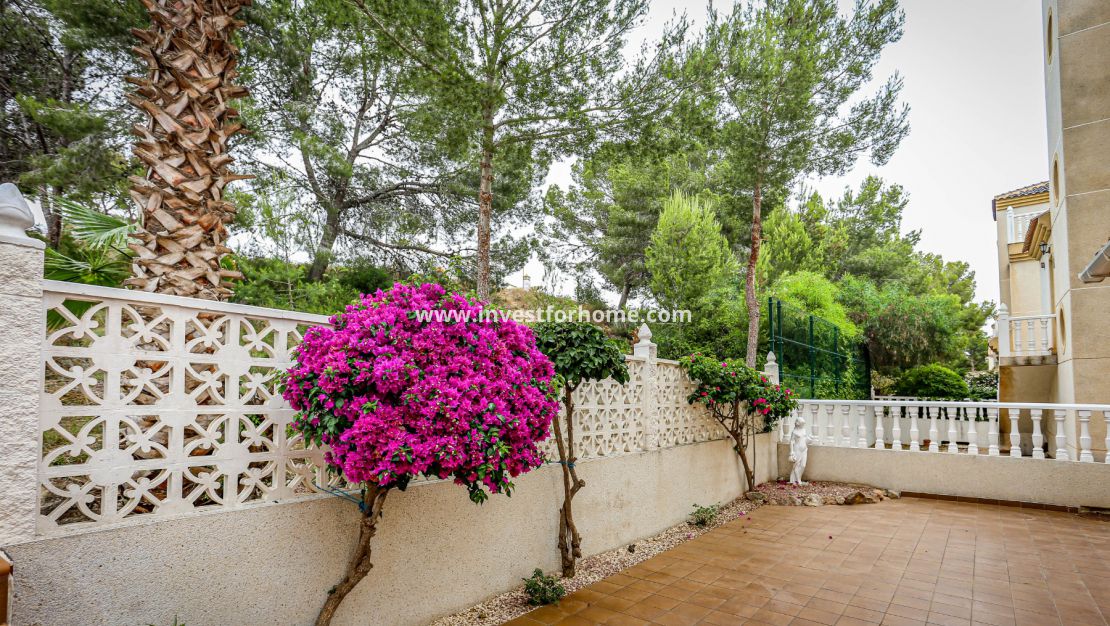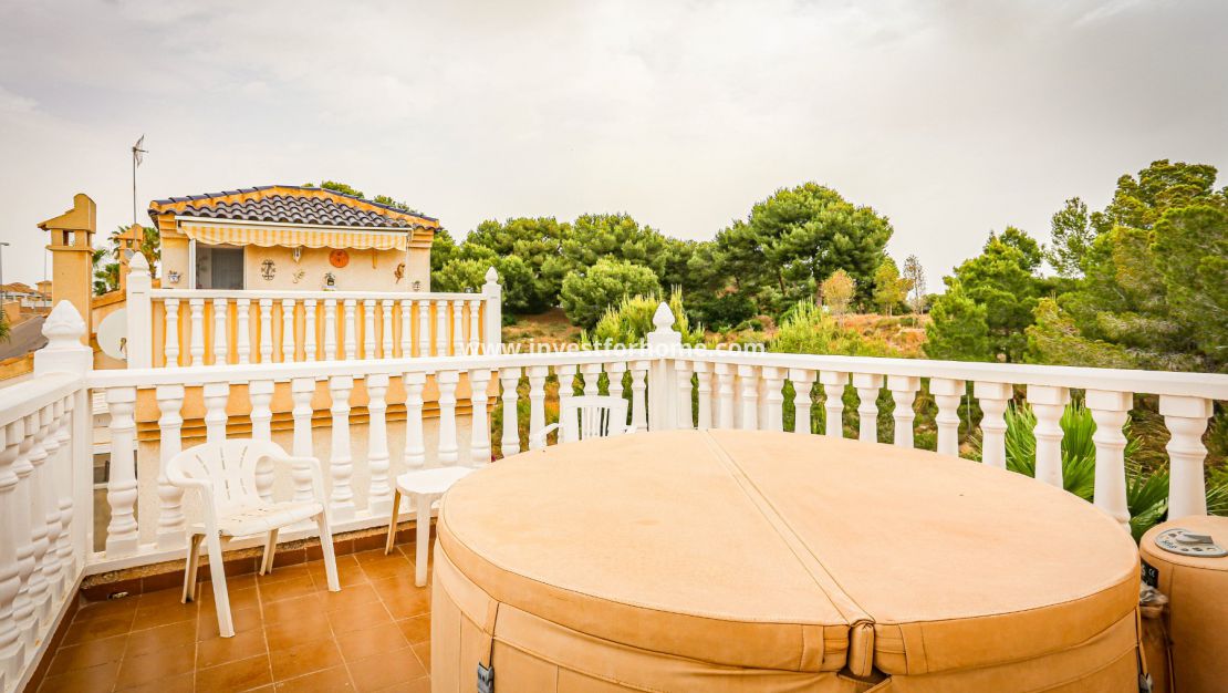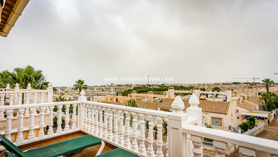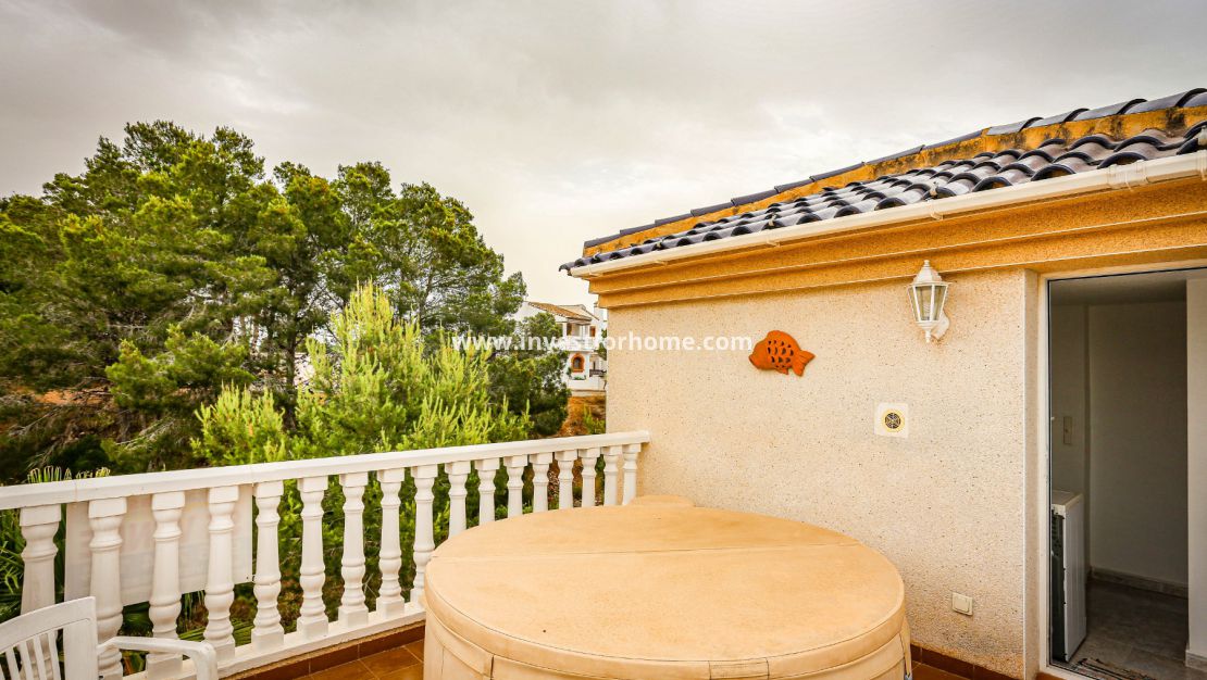 Magnifique villa de trois chambres située à Villamartin à côté du terrain de golf, avec vue et accès direct au parcours à travers la maison. De la terrasse des chambres et du solarium, vous avez une vue panoramique sur le golf et sur la mer Méditerranée.