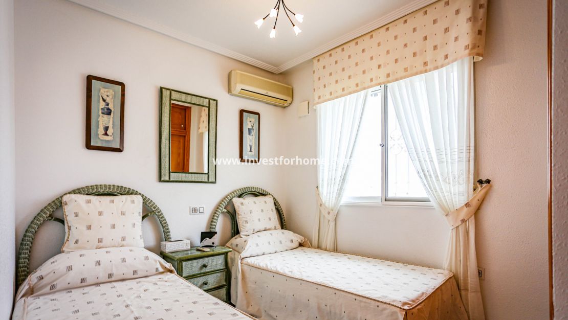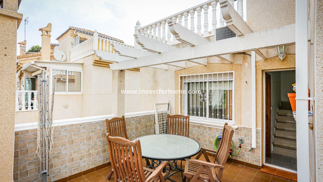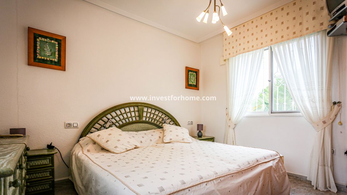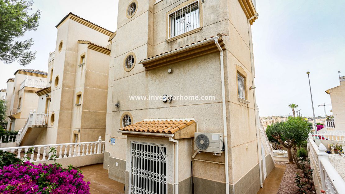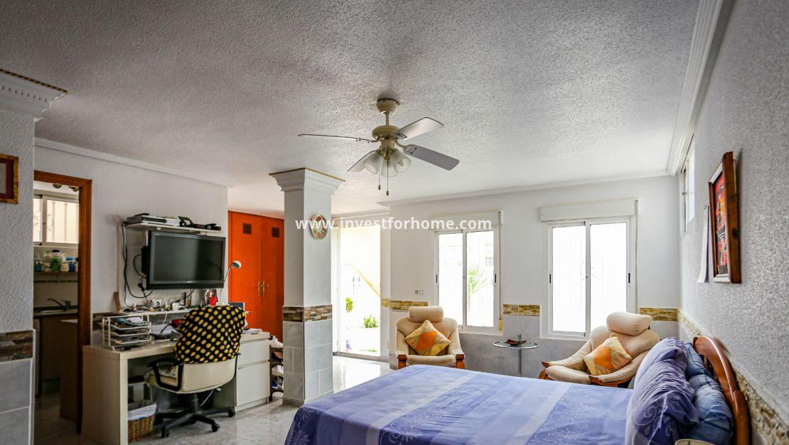 Magnifique villa de trois chambres située à Villamartin à côté du terrain de golf, avec vue et accès direct au parcours à travers la maison. De la terrasse des chambres et du solarium, vous avez une vue panoramique sur le golf et sur la mer Méditerranée.