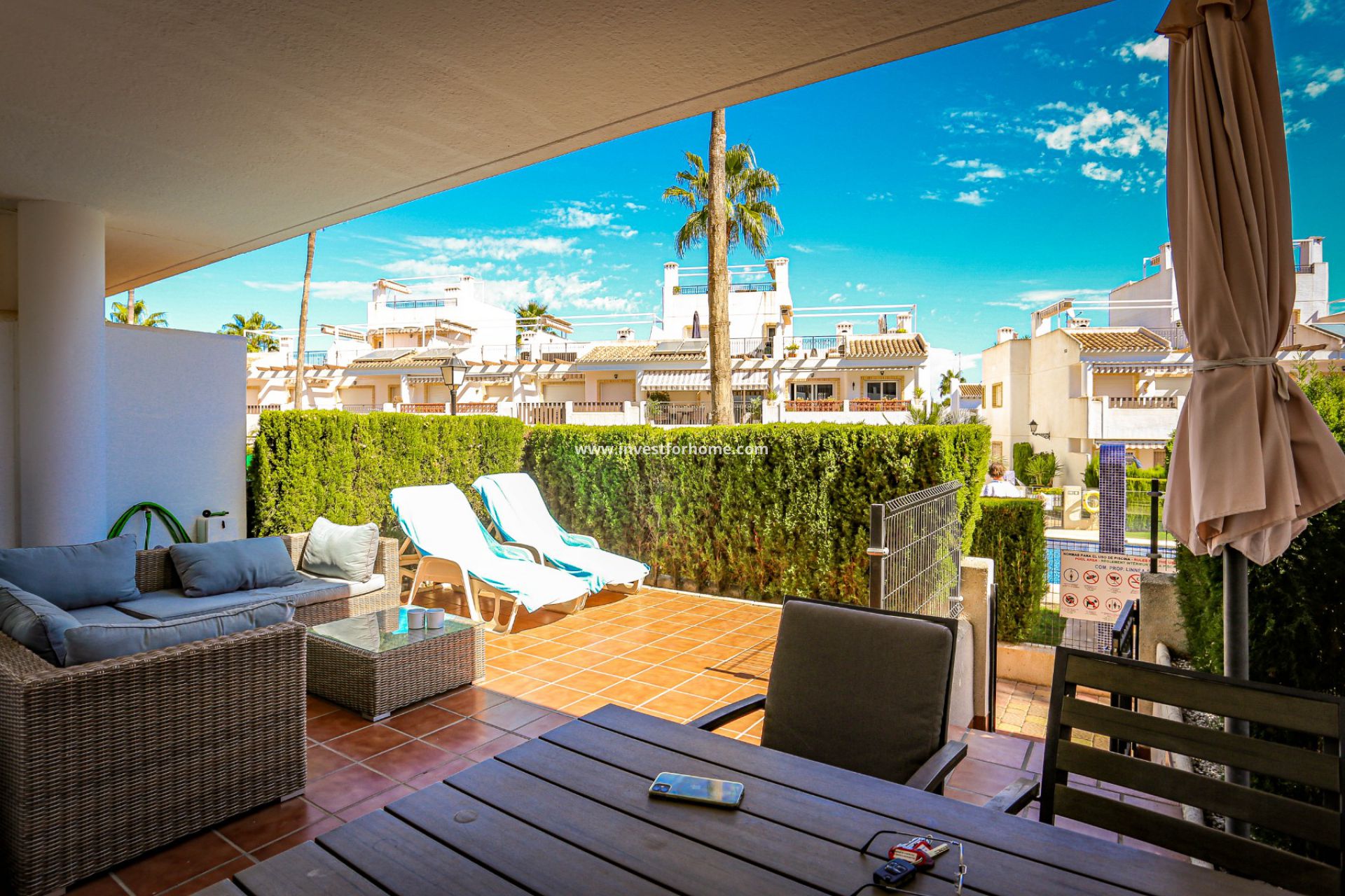 Bienvenue dans cet appartement exclusif au rez-de-chaussée avec une grande terrasse privée avec accès direct aux jardins et à la piscine situé dans l'urbanisation populaire de Linnea Sol, Villamartin. A l'entrée de l'appartement vous trouverez un hall où vous disposerez d'un placard pratique pour agrandir vos rangements, à gauche une belle cuisine ouverte entièrement équipée et une buanderie séparée. A côté de la cuisine, un salon / salle à manger spacieux et lumineux d'où vous avez accès à une spacieuse terrasse de 33 mètres carrés où vous pourrez profiter du soleil toute l'année.