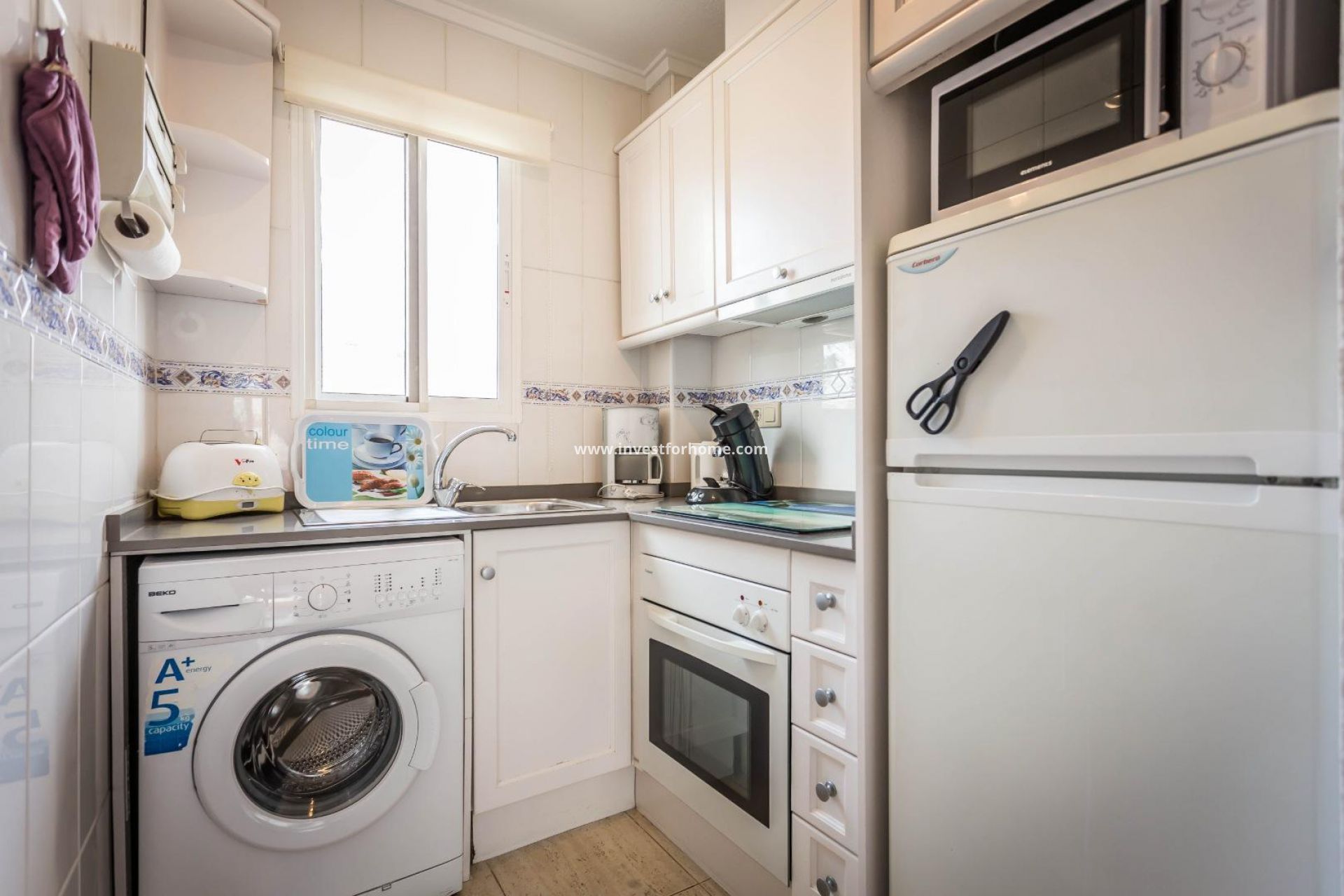 Superbe appartement avec 2 chambres et 1 salle de bain situé au dernier étage de la résidence de Las Margaritas, Torrevieja. La propriété est en bon état avec un joli balcon exposé sud. L'appartement est vendu meublé avec des meubles et des électroménagers. La résidence est fermée et se vante d'une grande piscine et d'un jardin. Proche des écoles, de la mer, des magasins, des cafés et des restaurants.