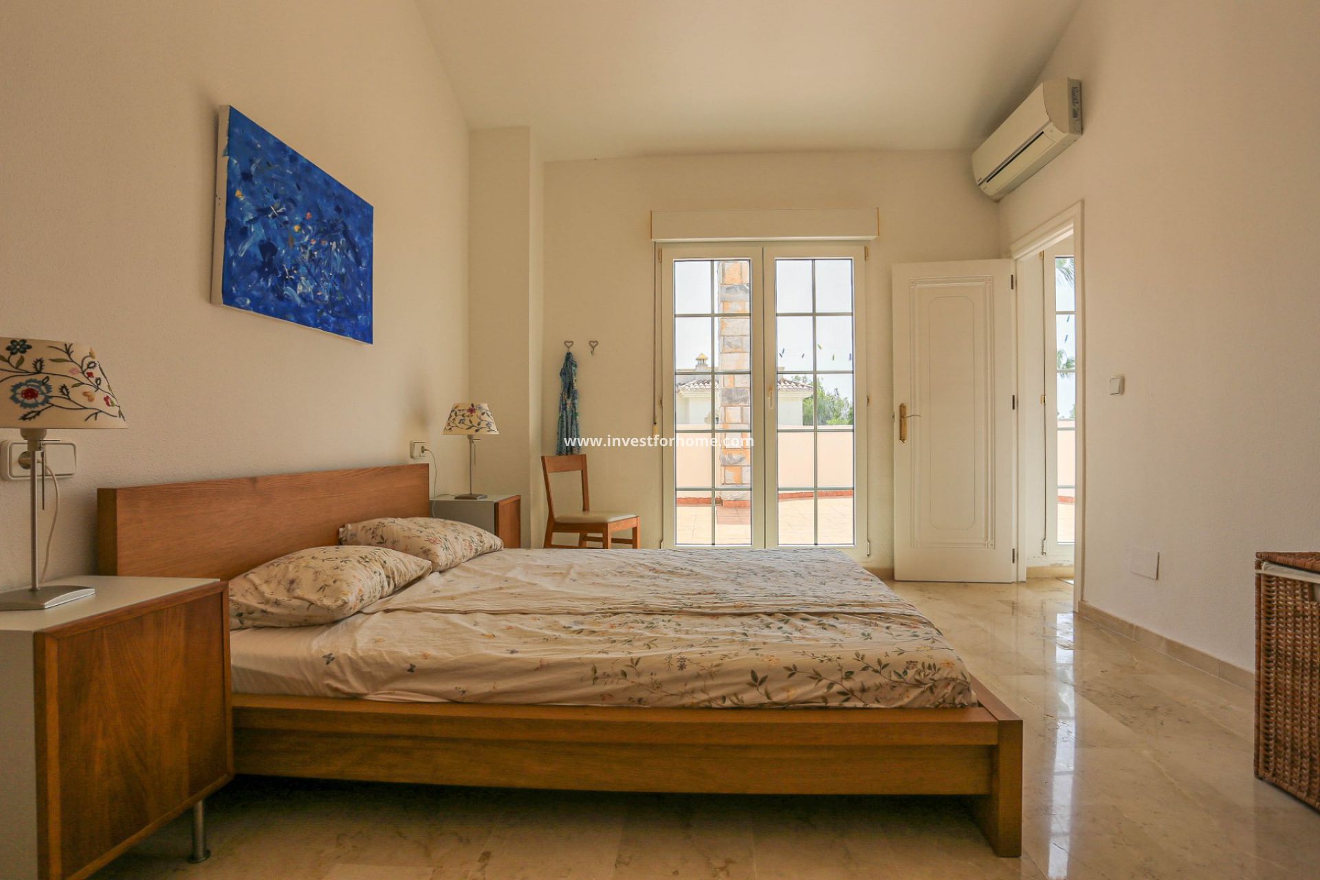 De villa heeft drie slaapkamers op de begane grond, waardoor bewoners en gasten privacy en gemak hebben. Een prachtige hoofdslaapkamer met een plafondhoogte van 3.55m en een aangrenzende badkamer met directe toegang tot een eigen terras vanuit de slaapkamer. Dit grote terras meet 32 vierkante meter.