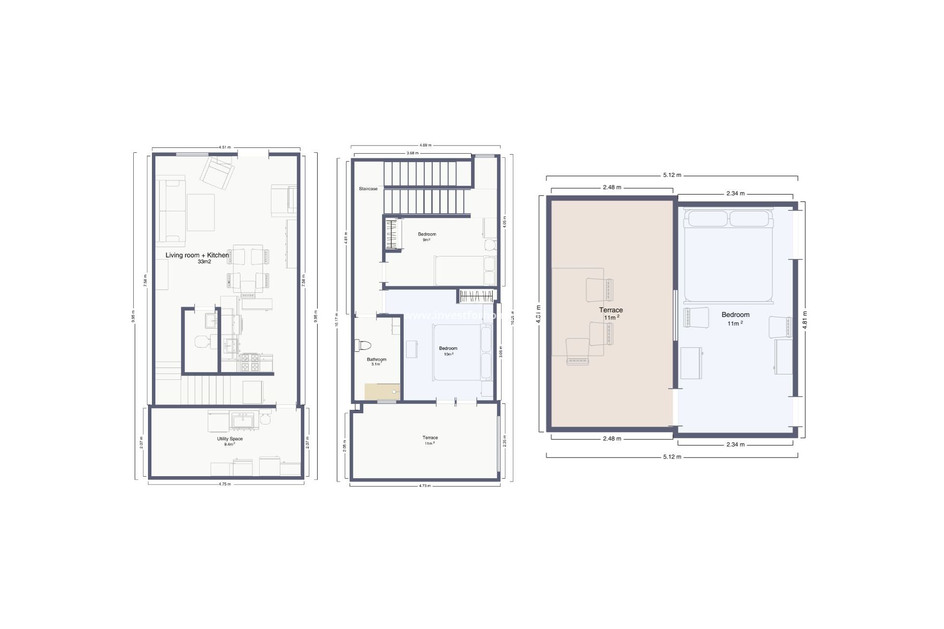 De stranden van Campoamor en Cabo Roig liggen op slechts 5-10 minuten rijden, evenals het beroemde winkelcentrum La Zenia Boulevard. Bovendien zijn de golfbanen van Villamartin, Las Ramblas en Campoamor slechts een paar minuten verwijderd, waardoor deze woning een ideale keuze is voor een eerste of tweede woning.