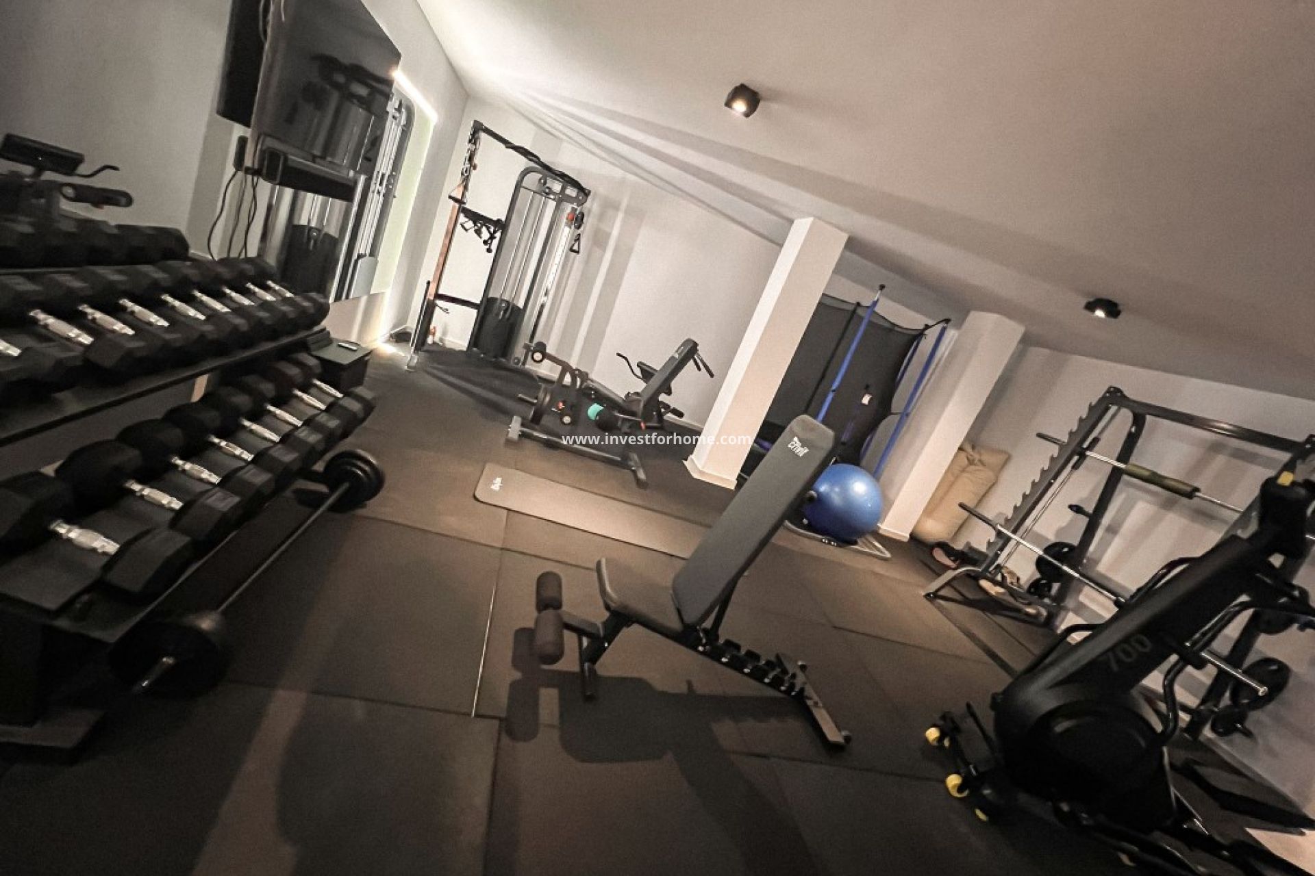 Deze luxe woning beschikt over maar liefst 4 slaapkamers en 3 badkamers. De woning is zuidoost georiënteerd en geniet van veel natuurlijk licht dankzij de open ruimtes en grote ramen. Op de begane grond heeft de villa een ruime open woon- en eetkamer met moderne keuken volledig uitgerust met hoogwaardige materialen en apparatuur, evenals een quooker. Er zijn 3 slaapkamers en één en-suite met een en-suite badkamer. De tweede badkamer bevindt zich op dezelfde verdieping met dezelfde hoogwaardige afwerking. Vloerverwarming is voorzien in de woonkamer, keuken en alle badkamers. De villa heeft allerlei extra's: een alarmsysteem, camera's, airconditioning, horren en elektrische rolluiken. Beneden is er één slaapkamer met en-suite badkamer, die ook de mogelijkheid biedt om nog 3 slaapkamers te maken. Deze kamers worden nu gebruikt als een gym met volledige professionele apparatuur. Een wasruimte met werkblad, een grote berging en een bureau. De tuin met zwembad heeft grote terrassen waar u tuinmeubilair kunt plaatsen om buiten te eten en een barbecueplek.Het grote solarium heeft een complete buitenkeuken met koud en warm water en een bar waar u met uw vrienden en familie kunt genieten van het fantastische uitzicht. De villa is uitgerust met nieuwe zonnepanelen, waardoor het een milieuvriendelijke en duurzame optie is voor kopers die geïnteresseerd zijn in hernieuwbare energie.Kortom, dit moderne pand in een van de meest exclusieve gebieden van de Costa Blanca is een unieke kans die u niet mag missen. Het biedt een geweldige levenskwaliteit en de mogelijkheid om te genieten van de beste voorzieningen, het klimaat en de natuurlijke schoonheid van dit deel van Spanje. Geïnteresseerde kopers moeten snel handelen om ervoor te zorgen dat ze deze kans niet missen.