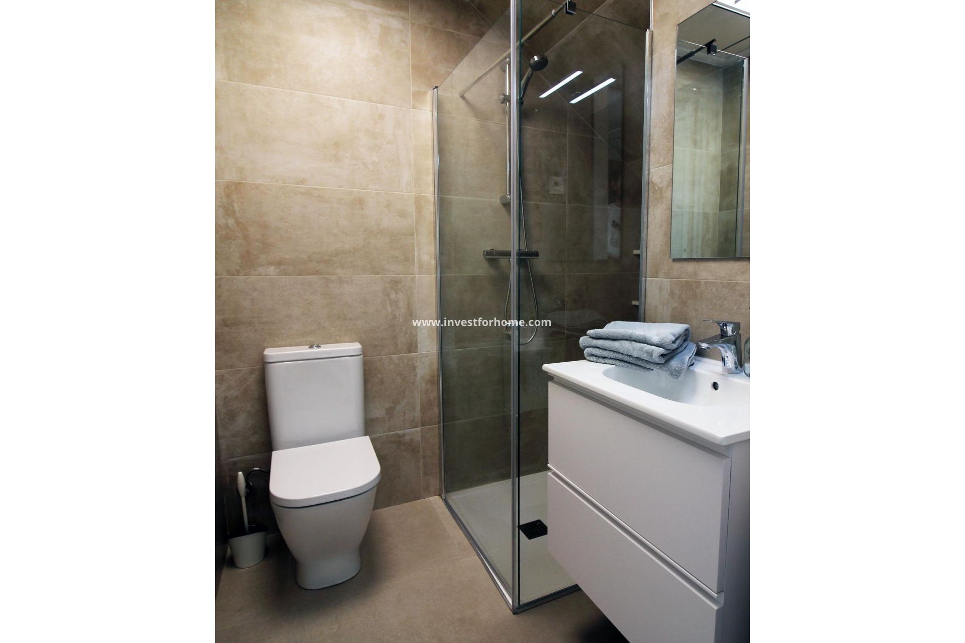 NIEUWBOUW HALFVRIJSTAAND HERENHUIS IN PILAR DE LA HORADADA Nieuwbouw moderne herenhuizen gebouwd in een rustig deel van Pilar de la Horadada met de nabijheid van alles wat je nodig hebt. Townhouses heeft 3 slaapkamers, 2 badkamers, open keuken, woonkamer met directe toegang tot het gezellige zwembad, terras aan de achterzijde met parkeerplaats , terras en groot dak solarium. Pilar de la Horadada is een typisch Spaans dorp in het meest zuidelijke deel van de Costa Blanca. De grote hoofdstraat heeft supermarkten, veel winkels, restaurants en bars en een aantal mooie pleinen. De prachtige stranden van Torre de la Horadada en Mil Palmeras met fijn zand en boulevard liggen op slechts 5 minuten afstand. De luchthavens van Corvera (Murcia) en Alicante liggen op respectievelijk 40 en 55 minuten afstand.
