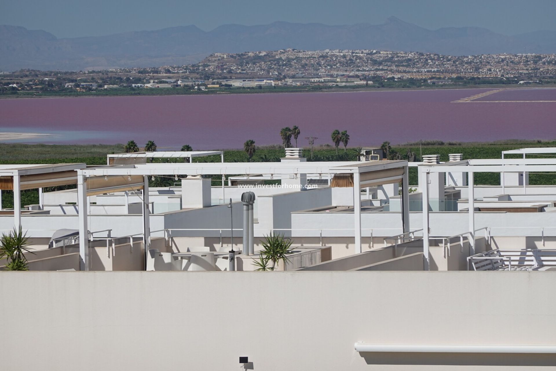 Bent u op zoek naar een moderne, instapklare woning met een uniek uitzicht?In de rustige woonwijk Los Balcones vindt u dit prachtige hoekappartement dat design, comfort en locatie perfect combineert.Vanuit het appartement geniet u van een adembenemend uitzicht op het beroemde zoutmeer van Torrevieja - elke dag voelt u zich alsof u op vakantie bent.Het hoekappartement heeft 3 slaapkamers en 2 badkamers, is instapklaar en biedt dankzij de terrassen aan de voor- en achterzijde 's ochtends en 's avonds zon.Het absolute juweeltje?Een indrukwekkend dakterras van 74 m² met een volledig uitgeruste buitenkeuken - de ideale plek om te ontspannen, vrienden te ontvangen of van de zonsondergang te genieten.Andere pluspunten zijn de schuifpui (5 meter) in de woonkamer, de parkeerplaats en de berging.De residentie is omgeven door groen en beschikt over een groot gemeenschappelijk zwembad. Hier kunt u volledig tot rust komen, omringd door het beste van de Spaanse zon.Op enkele minuten lopen vindt u winkels zoals Mercadona, Aldi en Carrefour Express, evenals gezellige restaurants.Het winkelcentrum La Zenia Boulevard ligt op een paar minuten rijden en de stranden van Torrevieja en Orihuela Costa zijn in minder dan een kwartier te bereiken.Dankzij de nabijheid van de snelweg (afrit Torrevieja Zuid) bent u ook zeer goed verbonden met de rest van de Costa Blanca.