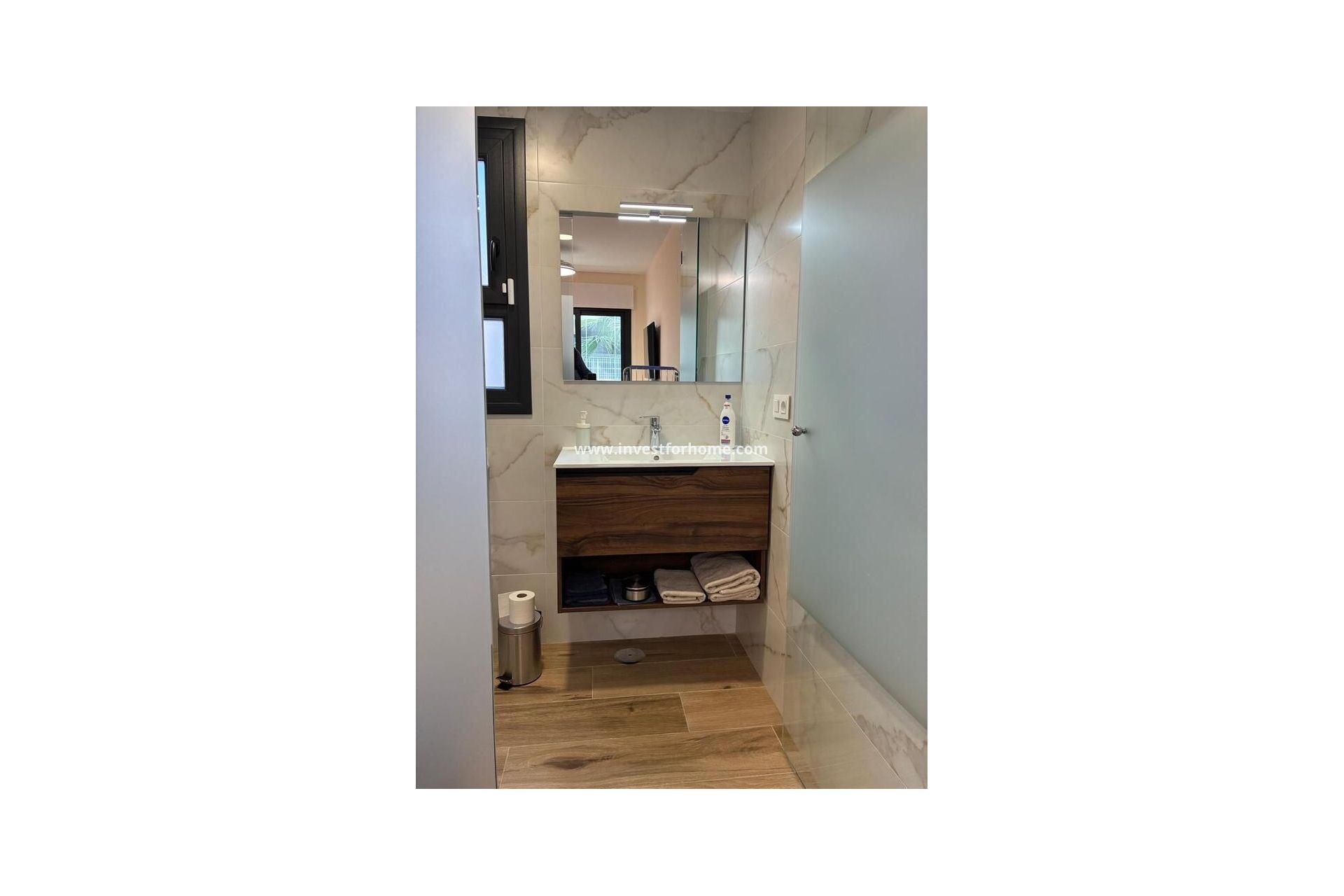 Exclusief gelijkvloers appartement in Valentino Golf III – VillamartínDit elegante, quasi nieuwe gelijkvloerse appartement, opgeleverd in 2023, bevindt zich in het prestigieuze Valentino Golf III-resort in Villamartín. De woning beschikt over een zuid-west georiënteerde privétuin met een stijlvol terras van 12 m², waar comfort en privacy centraal staan en waar u het hele jaar door in alle rust van het mediterrane buitenleven kunt genieten.Het interieur biedt twee ruime slaapkamers en twee verfijnde badkamers, waarvan één en-suite. De lichtrijke leefruimte sluit naadloos aan op een hoogwaardig afgewerkte, moderne keuken met eethoek. Het appartement is uitgerust met centrale airconditioning, elektrische rolluiken en wordt smaakvol gemeubeld verkocht. Bovendien werd het interieur professioneel geschilderd en aangevuld met exclusieve extra’s zoals een 7 kW aircosysteem, inductiekookplaat, 8 kg wasmachine, een geavanceerd alarmsysteem met camera’s en glazen terrasgordijnen, waardoor de tuin ook tijdens de wintermaanden een volwaardige leefruimte blijft.Een privé open parkeerplaats binnen het afgesloten domein is inbegrepen.Het veilig en verzorgd resort biedt uitzonderlijke faciliteiten, waaronder een stijlvol gemeenschappelijk zwembad en kinderbad, prachtig aangelegde tuinen met palmbomen, chill-out zones, een petanquebaan, fitnessruimte en een speeltuin voor de allerkleinsten.De ligging is uitstekend: op wandelafstand van Villamartín Plaza, nabij alle voorzieningen, op slechts 3 km van de stranden van Orihuela Costa en 2 km van het exclusieve winkelcentrum Zenia Boulevard.