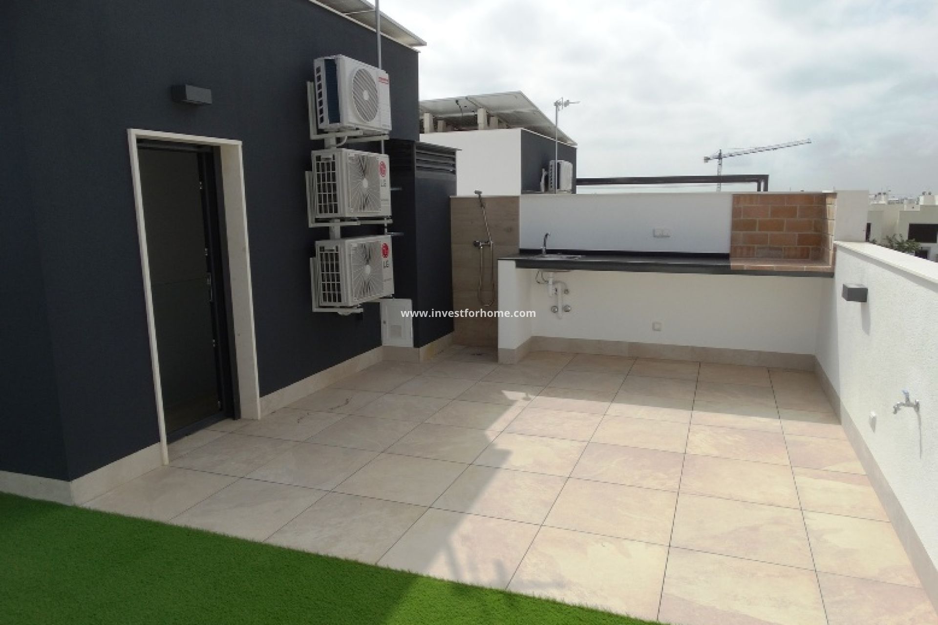 Het interieur van deze geschakelde woningen is ontworpen met comfort en stijl in gedachten. Met drie slaapkamers en drie badkamers biedt elke woning een ruime en functionele ruimte voor het hele gezin. Ingebouwde kasten zorgen voor efficiënte opslag, waardoor orde en organisatie in huis behouden blijven. De keuken is uitgerust met moderne apparatuur, wat de dagelijkse taken vergemakkelijkt. Bovendien zorgt het airconditioningsysteem, samen met de extra pre-installatie, voor een aangename omgeving gedurende het hele jaar. De hoogwaardige afwerkingen en het eigentijdse ontwerp creëren een gezellige en elegante sfeer.
