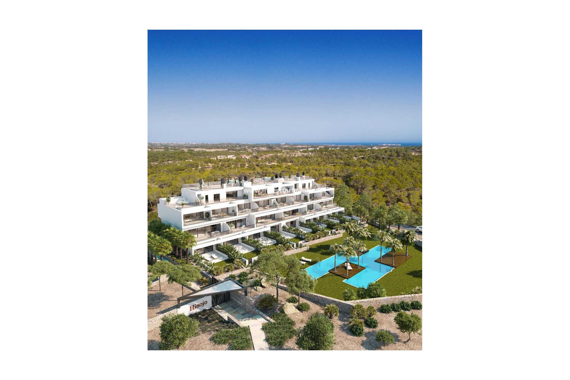 De appartementen in de Hinojo Community zijn ruim en ontworpen om te genieten van het leven met de perfecte combinatie van design en functionaliteit. De gemeenschappelijke ruimtes van de Hinojo gemeenschap bestaan uit tuinen, met een zwembad en ruimtes om te ontspannen, omringd door palmbomen en natuurlijke groene gebieden.