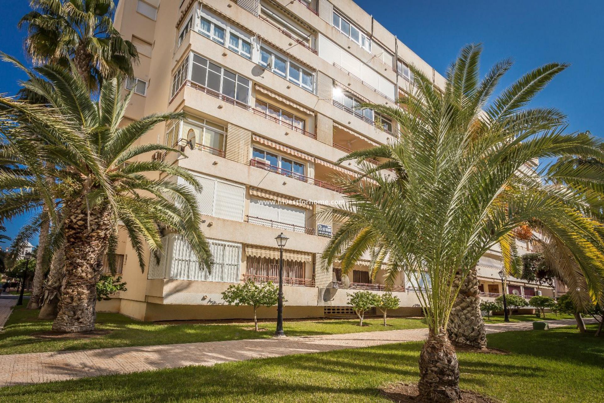 Mooi appartement in de luxe woonwijk El Palmeral aan het strand van Los Locos, Torrevieja. Het huis heeft een woonkamer met toegang tot een groot terras op het zuidwesten met vrij uitzicht op de prachtige tuinen en het gemeenschappelijke zwembad, een grote semi-open ingerichte keuken, 2 badkamers waarvan één een-suite, drie slaapkamers met allemaal vrij uitzicht. Het appartement wordt gemeubileerd verkocht. Deze afgesloten residentie ligt aan het strand, met een grote gemeenschappelijke tuin van 15.000 m2 met 500 palmbomen, zwembaden, tennisbanen en speeltuinen en een restaurant-bar, allemaal exclusief voor de eigenaren. Een van de meest gewilde woningen in Torrevieja.