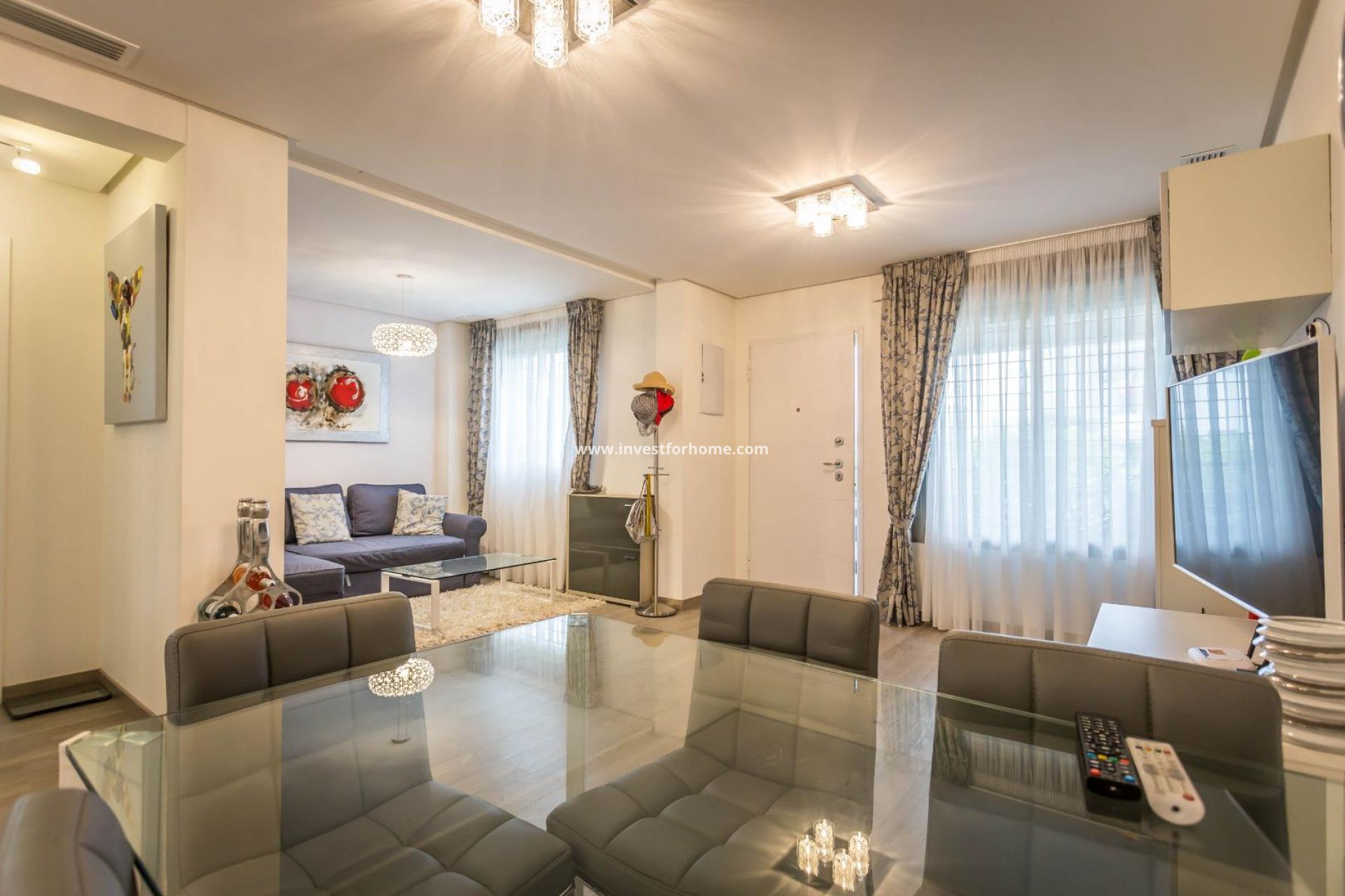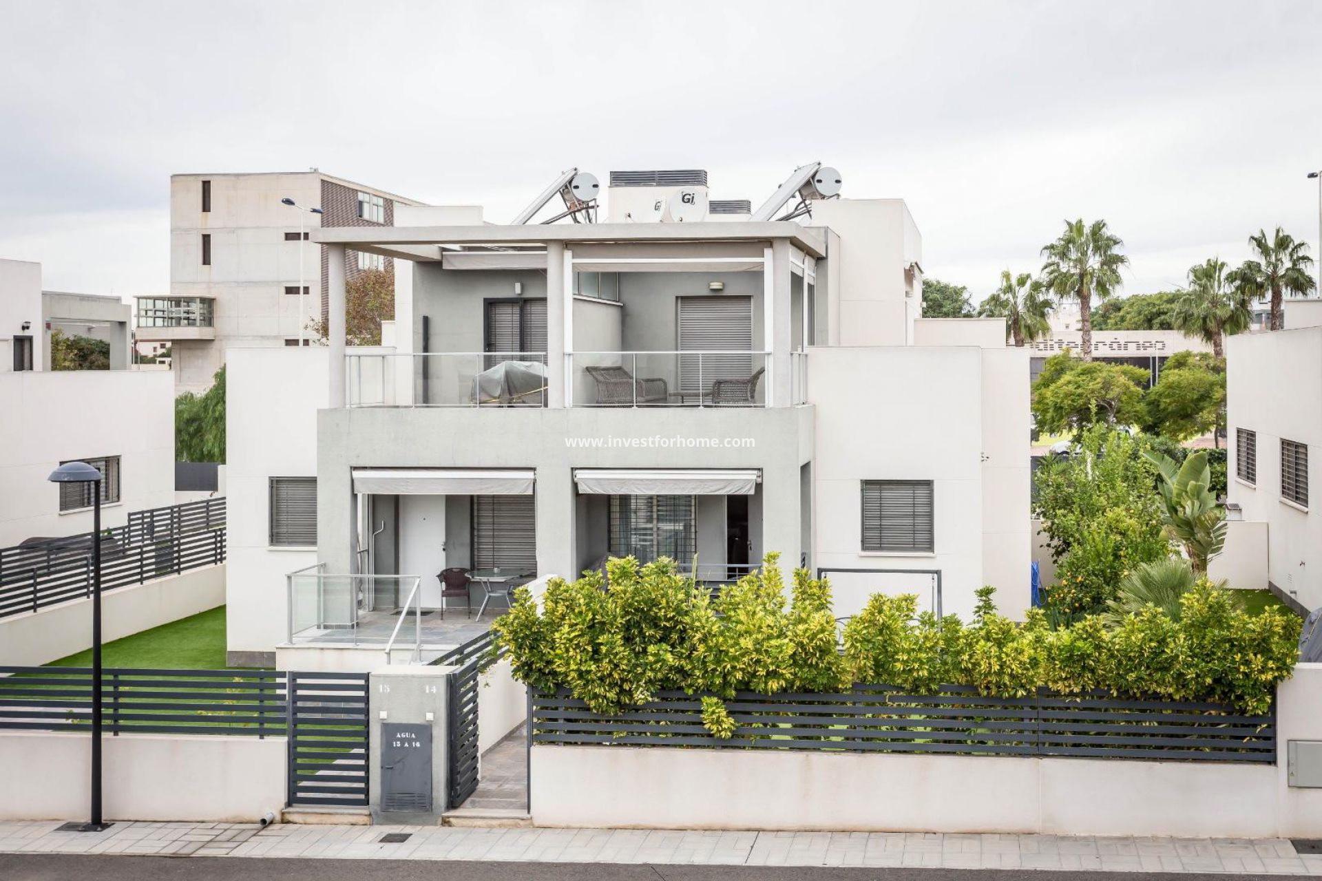 Mooi modern herenhuis in Aguas Nuevas, Torrevieja. Het huis is verdeeld over 2 verdiepingen en bestaat uit 2 slaapkamers, 2 badkamers, een terras, een solarium en een eigen tuin. Een zeer exclusieve residentie, met gemeenschappelijk zwembad met jacuzzi en een grote tuin. De woning ligt een paar minuten van het centrum van Torrevieja. Dicht bij alle voorzieningen, zoals restaurants, supermarkten en winkelcentra, zoals Habaneras en La Zenia Boulevard. Omringd door baaien en stranden met blauwe vlag (goede kwaliteit zeewater) zoals Playa de La Mata, Torrevieja en Orihuela Costa. Moet gezien worden.
