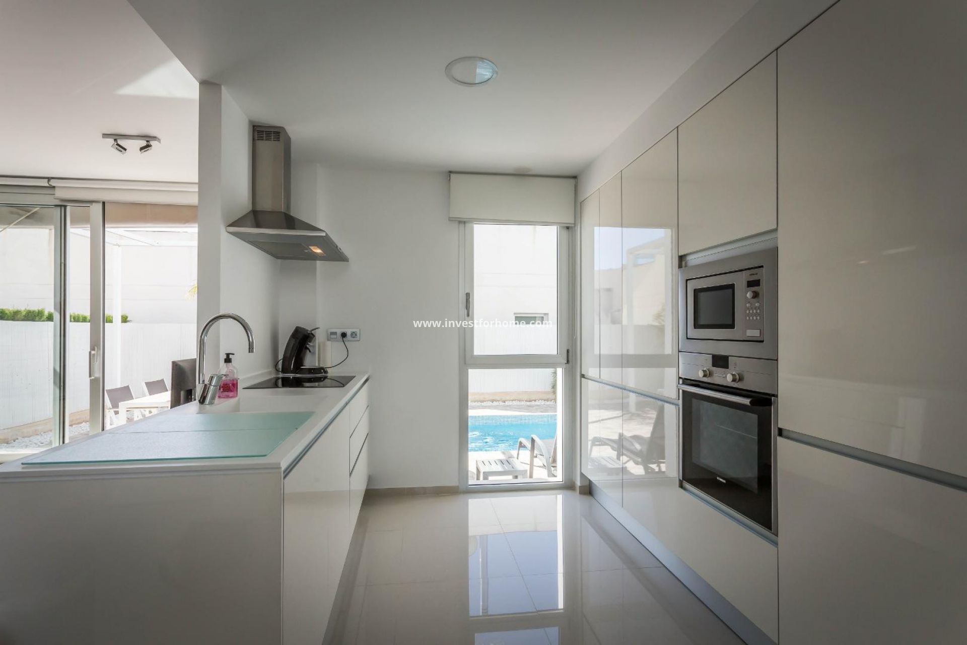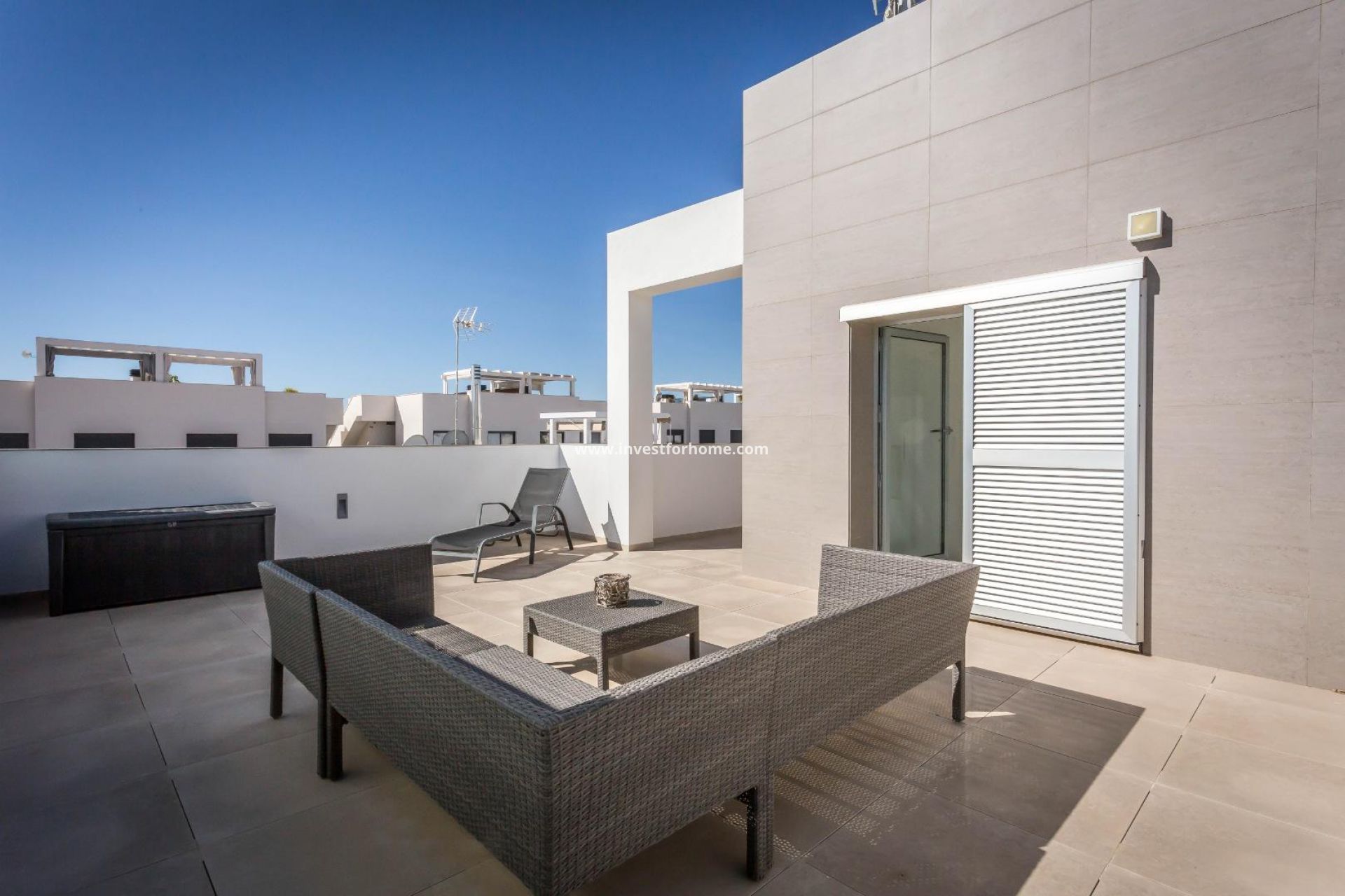 Mooie moderne villa gebouwd in 2014 te koop. De villa bestaat uit 2 slaapkamers, familie badkamer, ruime woonkamer en open keuken op de begane grond en 1 slaapkamer en suite op de eerste verdieping met een groot solarium. De villa beschikt over een groot terras met privé zwembad en een eigen parkeerplaats op het perceel. De woning wordt volledig gemeubileerd verkocht, met uitzondering van alle slaapkamermeubels.