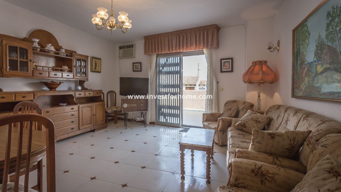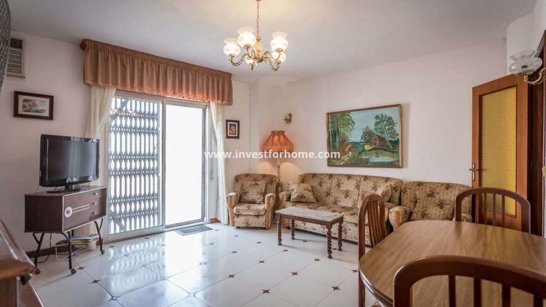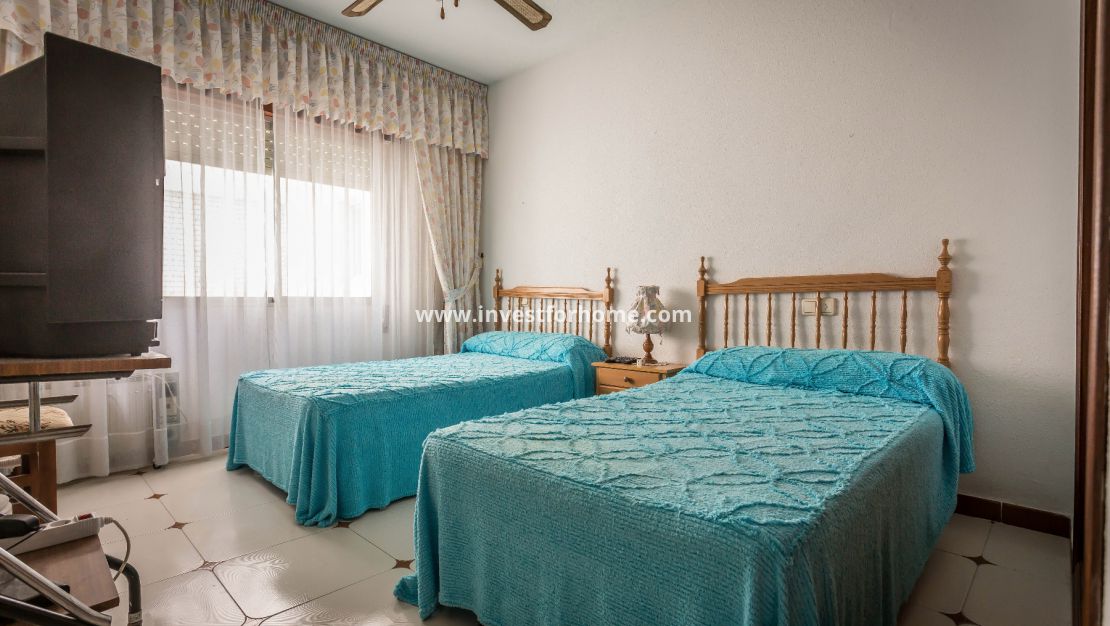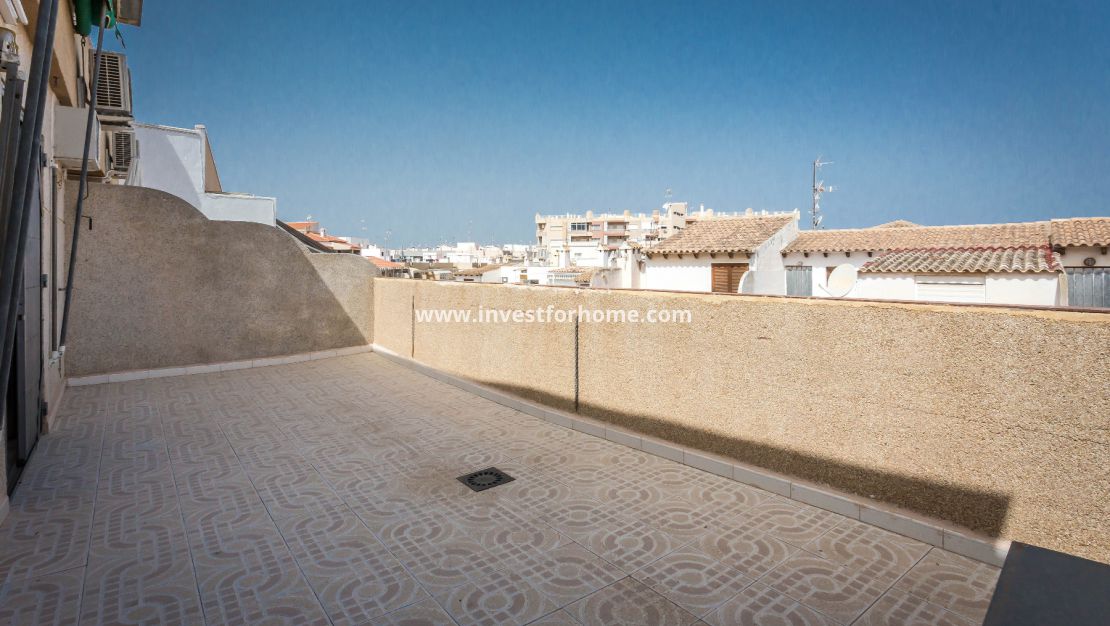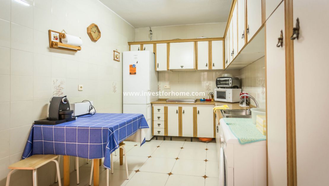Appartement op de bovenste verdieping te koop in het gebied van Torrevieja Playa de los Locos, 102 M2 woonruimte en een fantastisch terras van 22m2, 100 m. van het strand, 3 slaapkamers, een badkamer, toilet, aparte ingerichte keuken, op het westen. Extra's: airconditioning, kasten, lift, beveiligde deur. Alle voorzieningen op loopafstand