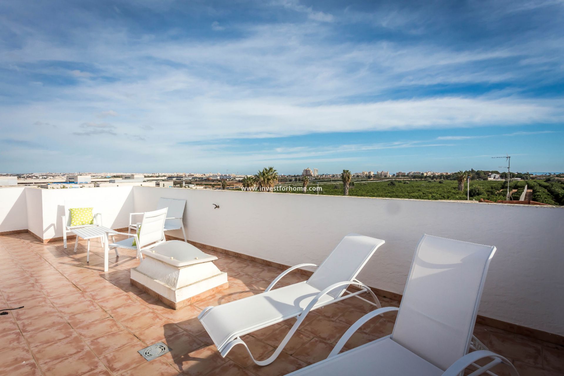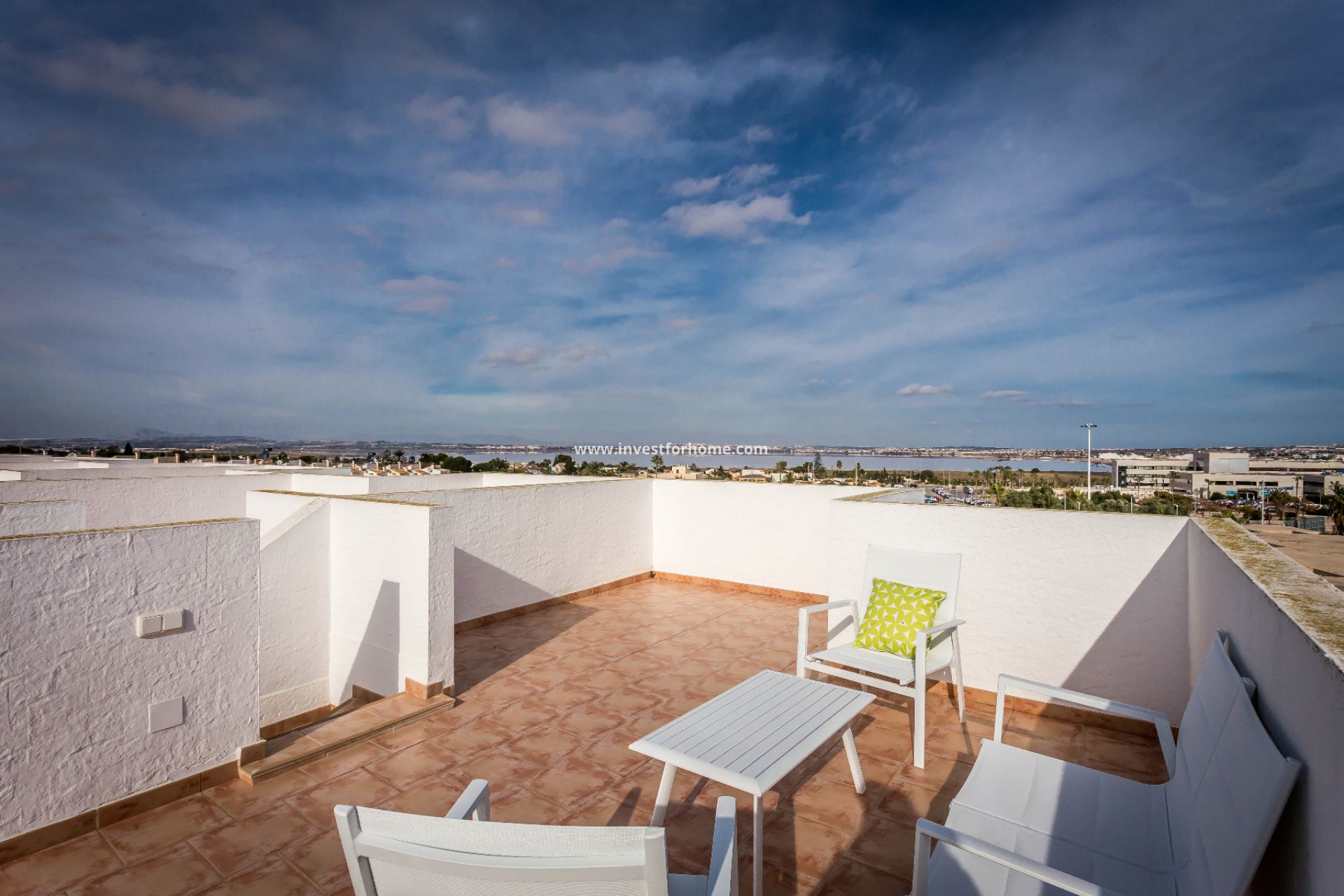 The Residentie ligt in Los Balcones, een gebied met residentiële villa's en parken, op 5 minuten lopen van het Universitair Ziekenhuis van Torrevieja, Hotel Doña Monse, Parque de los Balcones, cafetaria, apotheken en een supermarkt. De woning bestaat uit 72 duplex, 17 met 3 slaapkamers, 2 badkamers en 55 met 3 slaapkamers en 3 badkamers, beide met 2 kleine terrassen, patio, keuken, solarium en garage. Gemeenschappelijke ruimtes hebben aangelegde gebieden en een zwembad van 193 m2 met een roestvrijstalen waterval en palmbomen. Nu klaar 17 Type A duplexwoningen (klaar) hebben een panoramisch uitzicht op de zee, de zoutvlakten en de lagune van Torrevieja Rosa vanuit hun solarium. Huizen in klassieke stijl. De eerste verkopen hebben het ALL INCLUSIVE-pakket (meubels, apparaten, armatuur en 1 airconditioner)