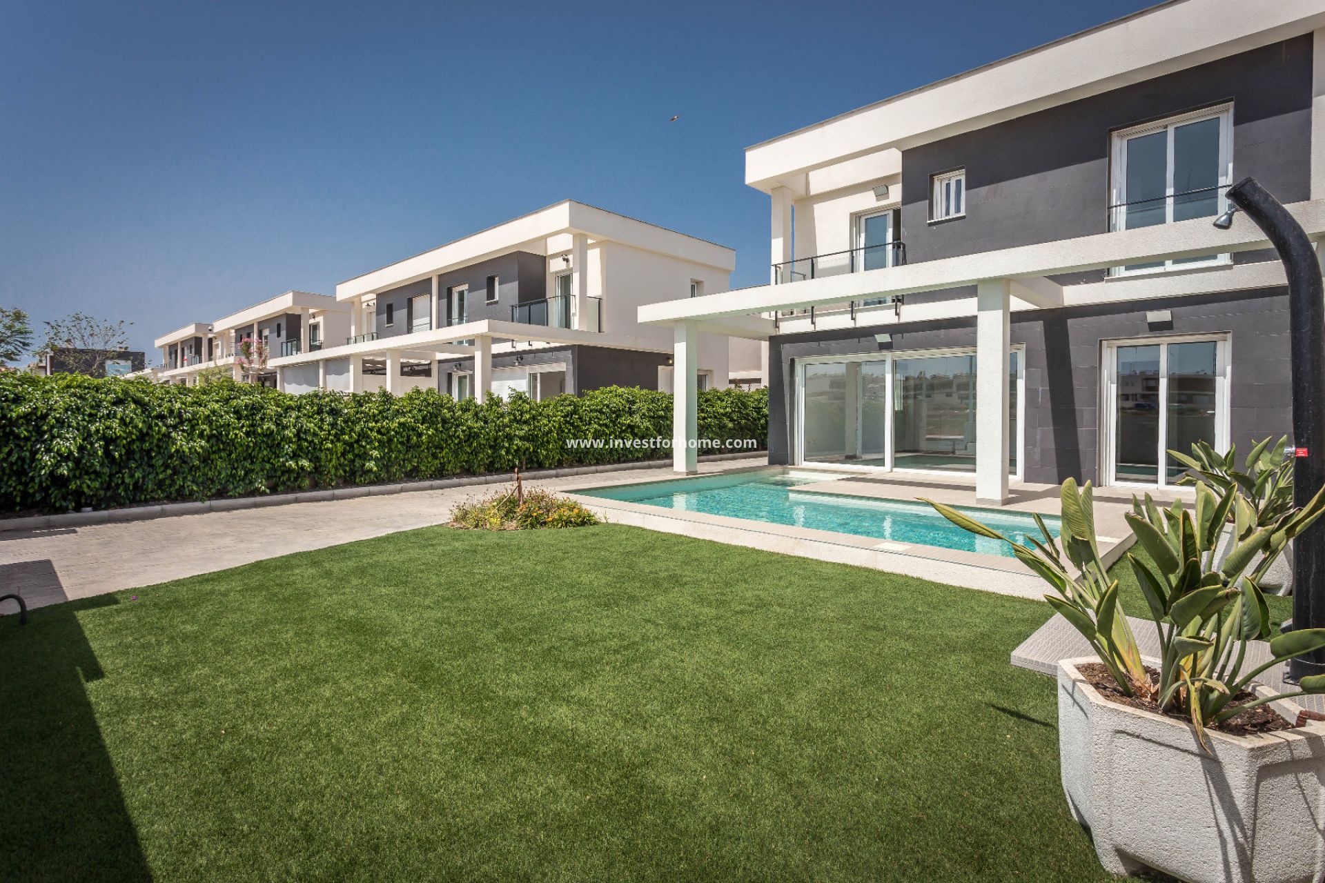 Het is een twee onder een kap woning met mogelijkheid tot 4 slaapkamers. De keuken kan onafhankelijk zijn of in de woonkamer. Het huis heeft een privé zwembad en een groot perceel met 225m2, terras en veranda. Het biedt de mogelijkheid om, zonder extra kosten, de verdeling van het huis te kiezen. Het kan 2, 3 of 4 slaapkamers hebben. Het huis beschikt over een verwijderbaar energiesysteem met aerodynamische verwarming. De woning heeft een directe verbinding met de snelwegen N-332 en A-7, goed gelegen met de stadscentra van Elche en Alicante. Slechts 5 minuten van de stranden van Arenales del Sol en Carabassí.