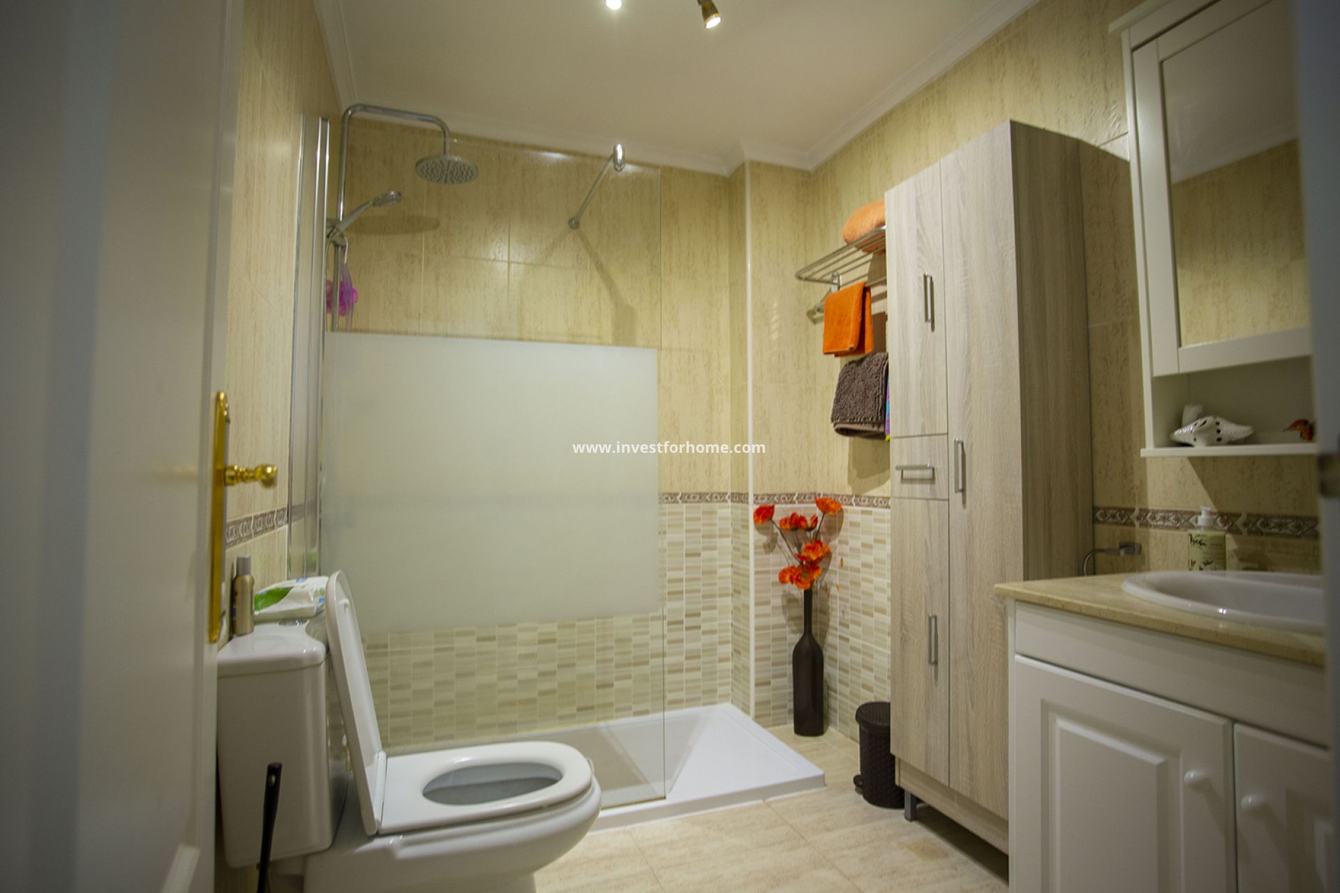 Dit mooie appartement is gelegen in het prestigieuze gebied van Lomas de Campoamor naast de golfbaan met het hele jaar door privébeveiliging. Dit appartement op de eerste verdieping bestaat uit 2 slaapkamers met grote inbouwkasten, 2 badkamers met wit gelakt meubilair en marmeren aanrecht , volledig ingerichte moderne keuken uitgerust met apparatuur, doorgeefluik en een aparte bijkeuken. Een ruime woonkamer met airconditioning en gasverwarmingsradiatoren. Vanuit de woonkamer heeft u directe toegang tot een groot terras op het zuidwesten. In de residentie is er een gemeenschappelijk zwembad en op 5 minuten lopen het commerciële centrum van La Fuente, waar u allerlei diensten vindt, zoals restaurants, cafés en een supermarkt. Het appartement wordt volledig gemeubileerd verkocht.