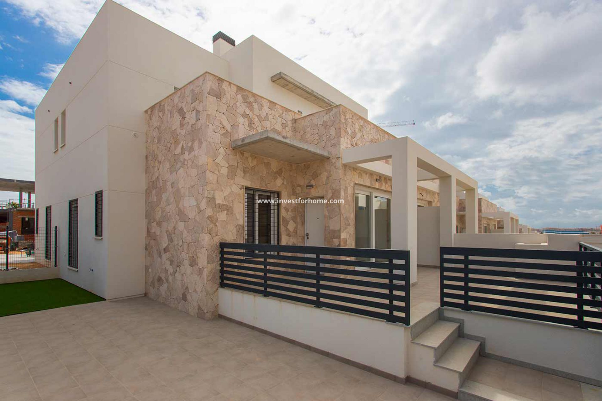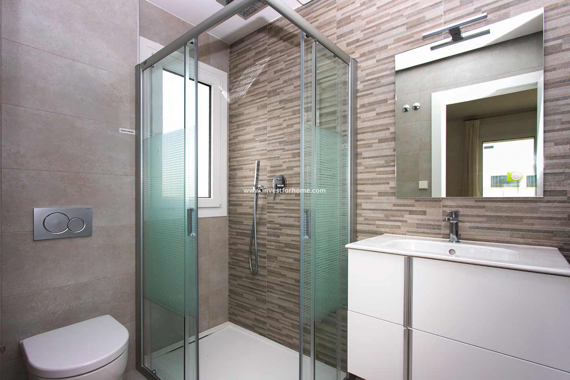 Welkom in dit prachtige quadroom met 3 slaapkamers en 3 badkamers. Het biedt op de begane grond een ruime woonkamer, keuken, slaapkamer met tweepersoonsbed en familiebadkamer. Op de eerste verdieping 2 slaapkamers met tweepersoonsbed en 2 badkamers en toegang tot een dakterras De badkamers hebben vloerverwarming standaard. Elke woning heeft een eigen parkeerplaats en een gemeenschappelijk zwembad met verwarmde jacuzzi. Hier hebt u op loopafstand van een breed scala aan restaurants, een grote supermarkt met een kapsalon en apotheken en bars. Naar de vrijdagmarkt heb je op loopafstand en slechts 3 minuten met de auto naar het prachtige strand van La Mata.