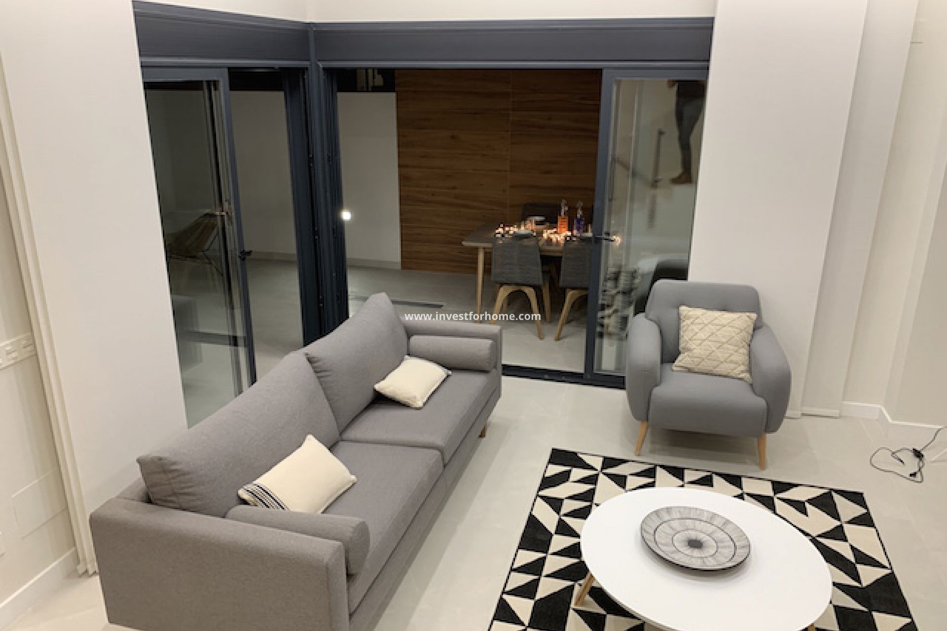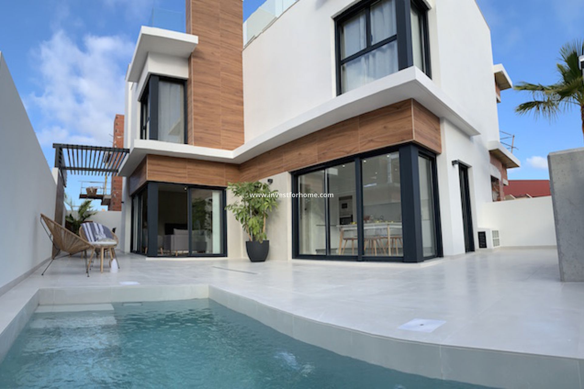 Mooie halfvrijstaande nieuwbouwvilla's in Santiago de la Ribera. Deze luxe woningen bieden 3 slaapkamers, 3 badkamers, woon / eetkamer, keuken. De eigenschappen krijgen een solarium op het dak, een privétuin met parkeerplaats en een privézwembad. * Nog maar 12 accommodaties beschikbaar, prijzen vanaf 310.000 € Santiago de la Ribera is een mooie stad aan de oevers van de Mar Menor. Het is het kustgebied van de stad San Javier en begon het leven als een eenvoudig vissersdorp. Het is nu een populaire vakantiebestemming geworden en trekt niet alleen Spaans, maar ook toeristen uit heel Europa. Santiago heeft een moderne sfeer, hoewel het nog steeds de sfeer van "vissersdorp" behoudt. Het heeft een prachtige promenade met majestueuze palmbomen en 2 km prachtige zandstranden. Vanaf hier kunt u een boottocht maken over de kalme wateren van de Mar Menor naar de La Manga Strip aan de overkant. Het belangrijkste winkelgebied ligt echt in de stad San Javier