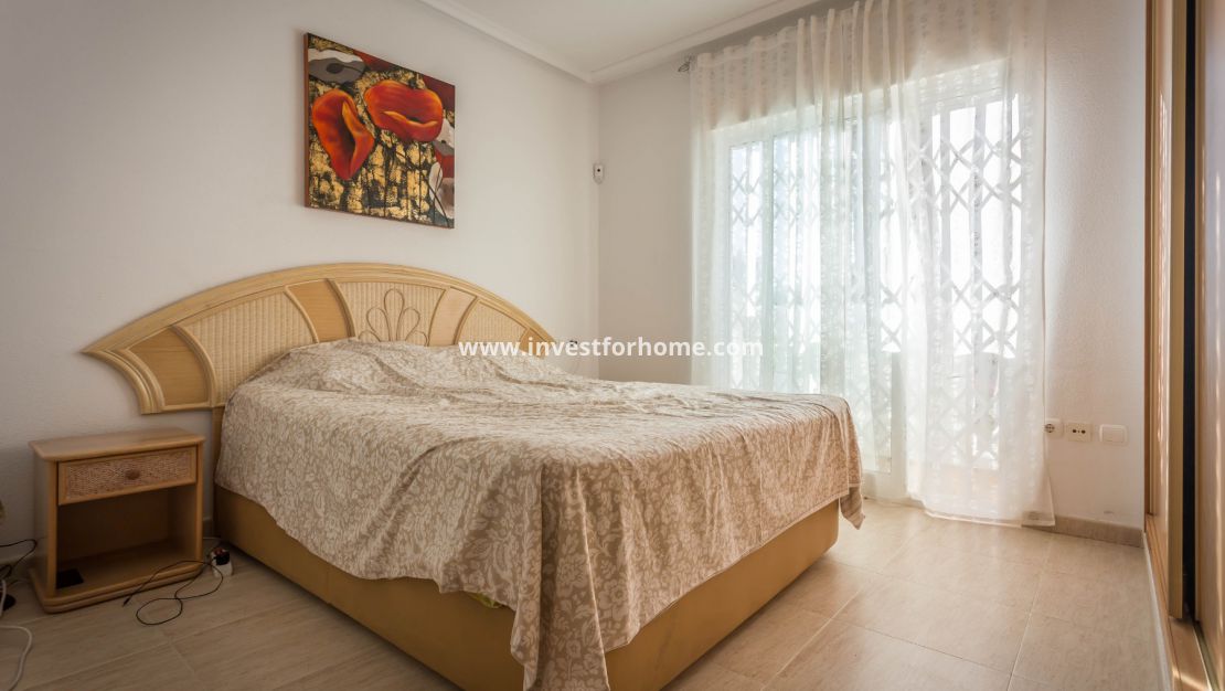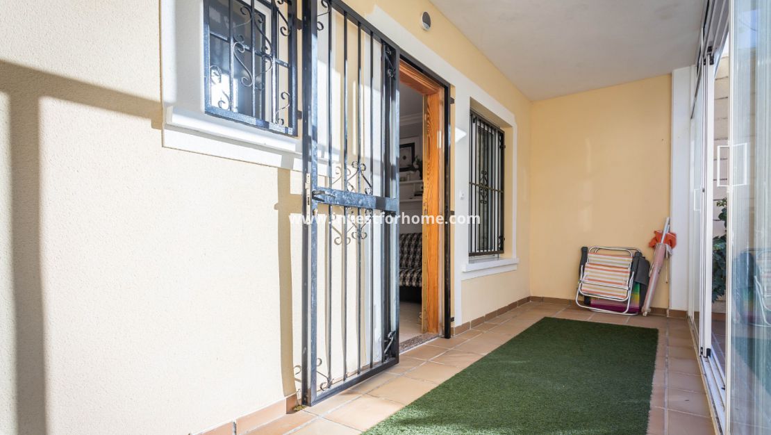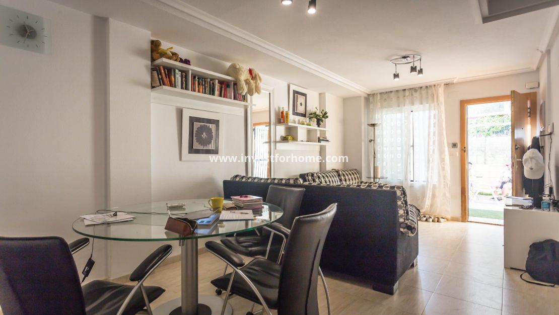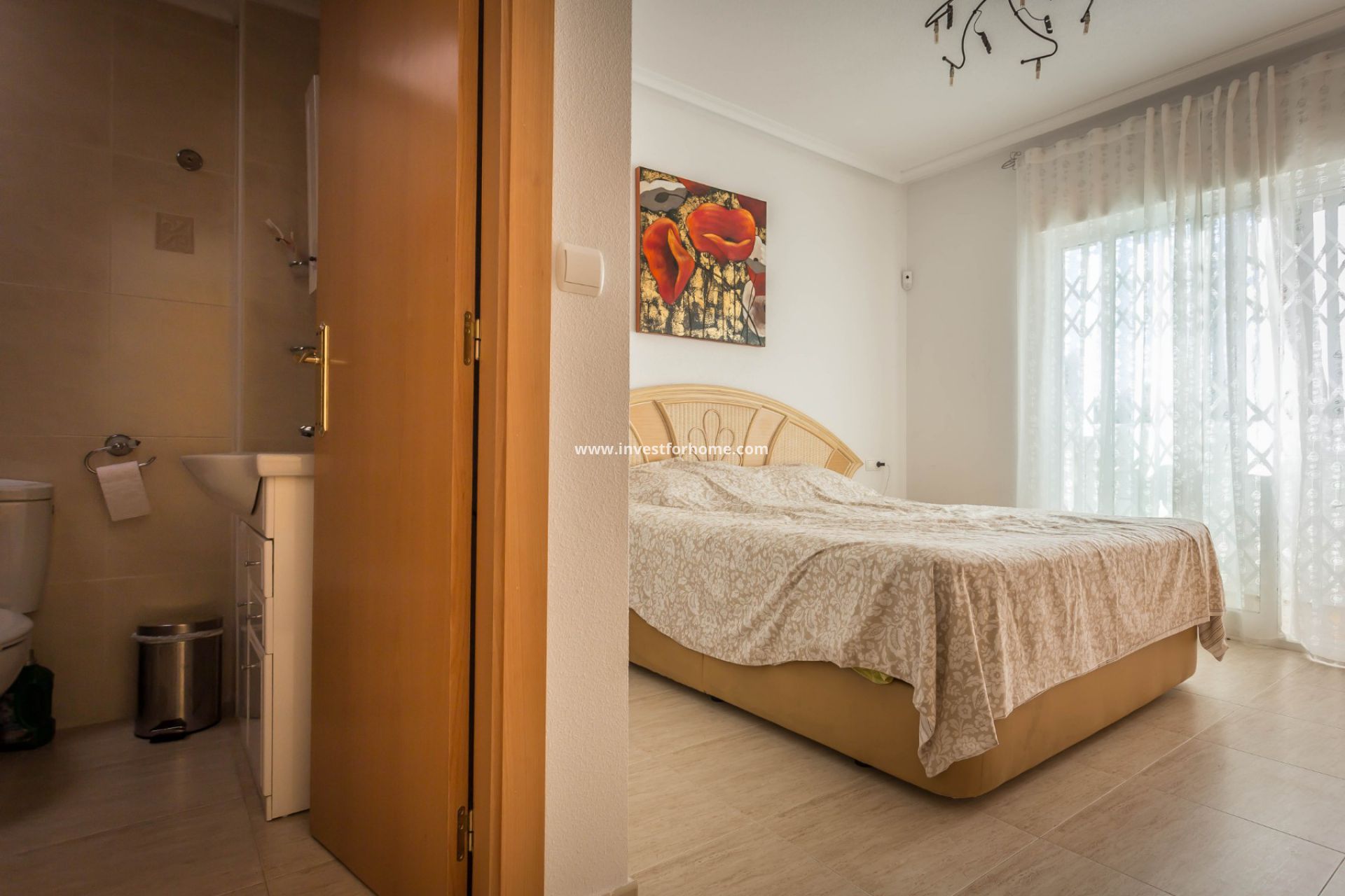 Mooi herenhuis op 3 verdiepingen in Aguas nuevas, het heeft een groot terras voor, woonkamer, keuken, 3 slaapkamers waarvan 1 op de begane grond, 3 badkamers, een glazen achterterras en een groot solarium. Alle kamers zijn voorzien van airconditioning, het gebouw bevindt zich in een omheind beveiligd complex, heeft een eigen parkeerplaats en een gemeenschappelijk zwembad op slechts een steenworp afstand van het winkelcentrum en op slechts 700 meter van het strand van La Mata.