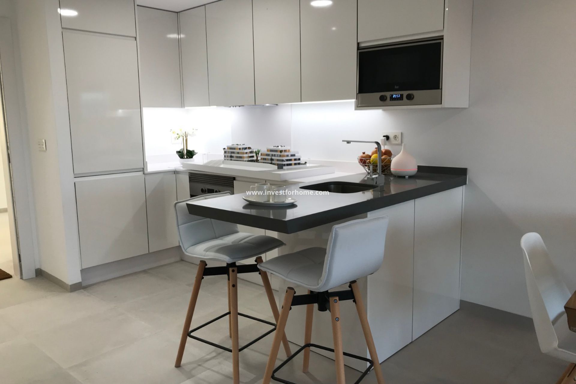 Een veilig modern complex met lift op alle niveaus, privétuinen voor huizen op de begane grond en terrassen voor woningen op de eerste en tweede verdieping.