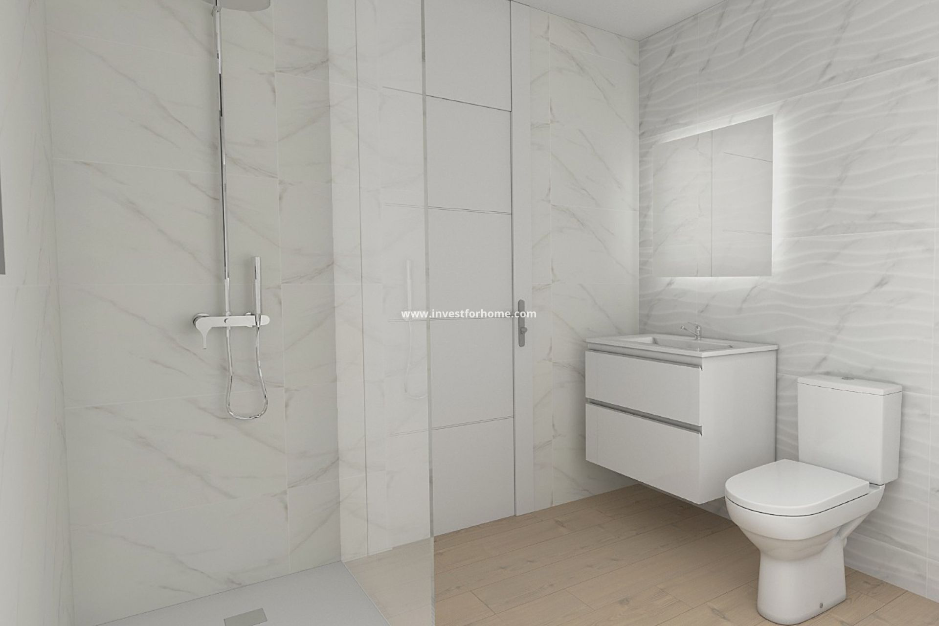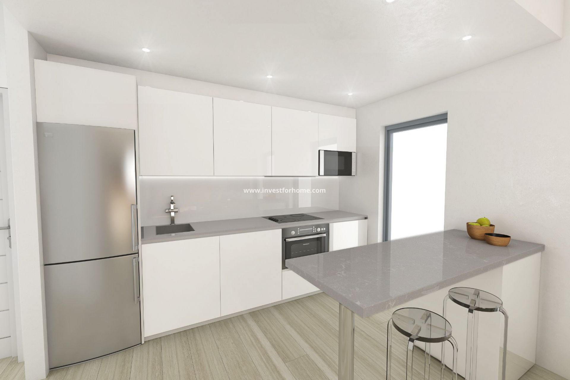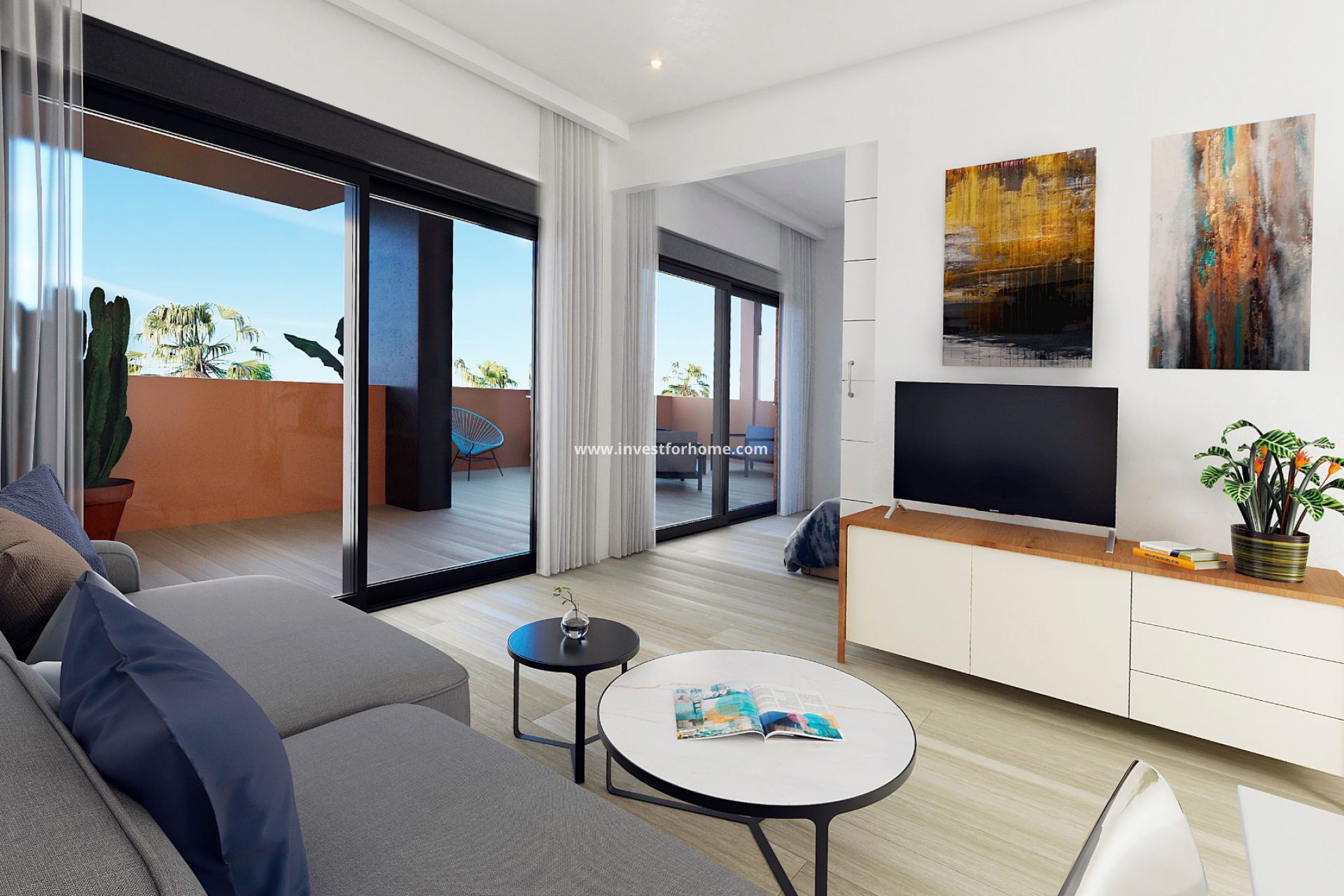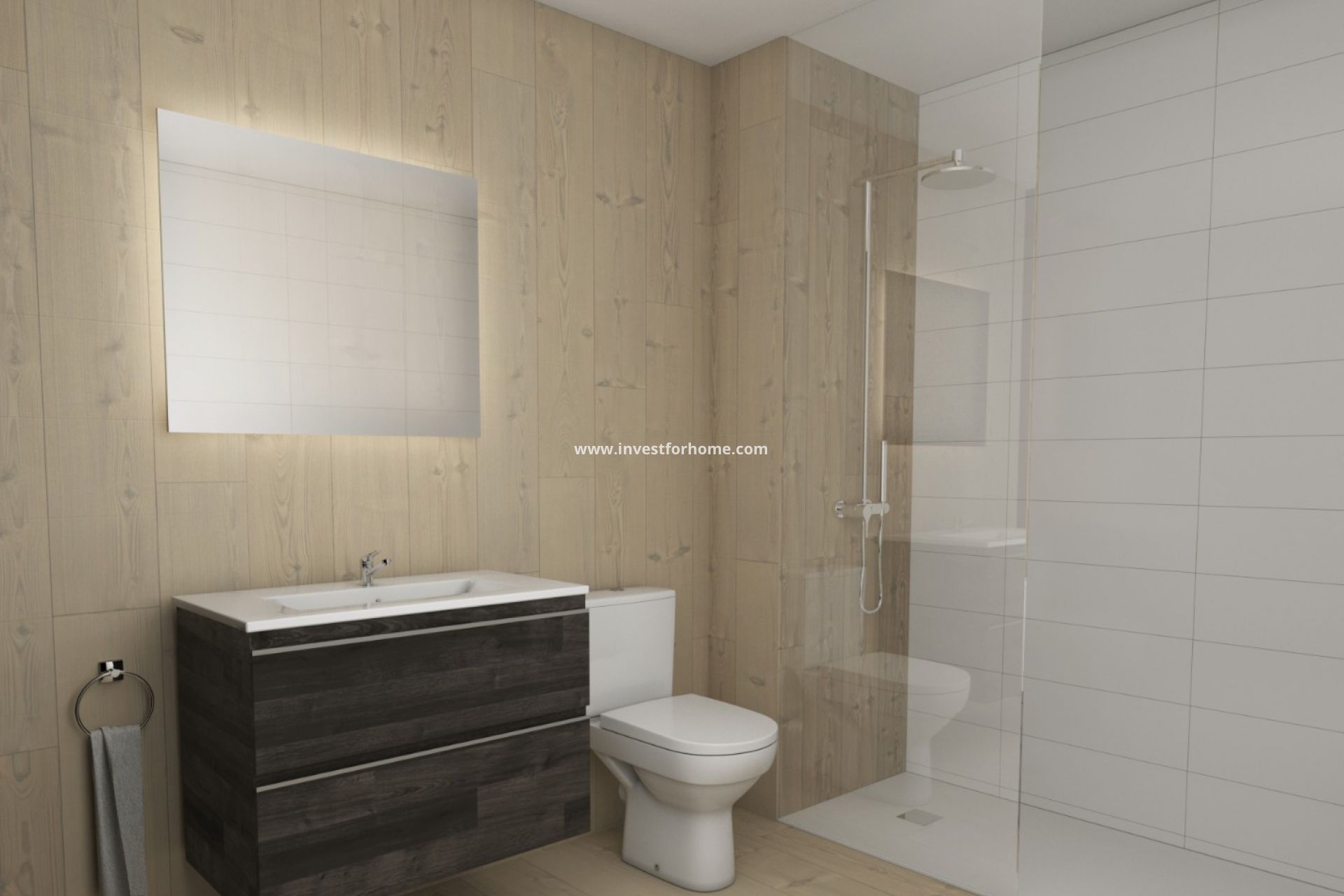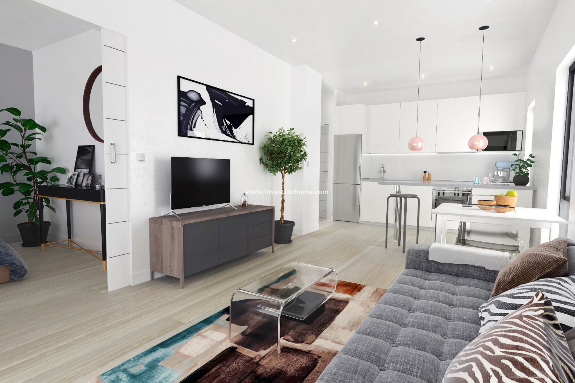 Dit is een nieuw appartementencomplex in het Villamartin-gebied van Orihuela Costa. Deze appartementen bestaan uit twee tweepersoonsslaapkamers (de hoofdslaapkamer met een schuifwand naar de woonkamer, waardoor een veelzijdig ruimtegebruik ontstaat), twee badkamers, een moderne keuken met een ontbijtbar en een open woon / eetkamer die leidt naar de privétuin (voor de appartementen op de begane grond), een groot terras (appartementen op de eerste / tweede verdieping) of een dakterras (appartementen op de bovenste verdieping). Elke woning wordt verkocht, inclusief een parkeerplaats. De ontwikkeling profiteert van verschillende gedeelde groene ruimtes en een gemeenschappelijk zwembad gereserveerd voor bewoners. Gelegen naast de golfbaan en is omgeven door mijlen van prachtige kustlijn. In de buurt vindt u de beste stranden, het fantastische winkelcentrum La Zenia Boulevard, een ruime keuze aan restaurants en entertainment en het Villamartin-plein. De luchthaven van Alicante ligt op slechts 30 minuten met de auto