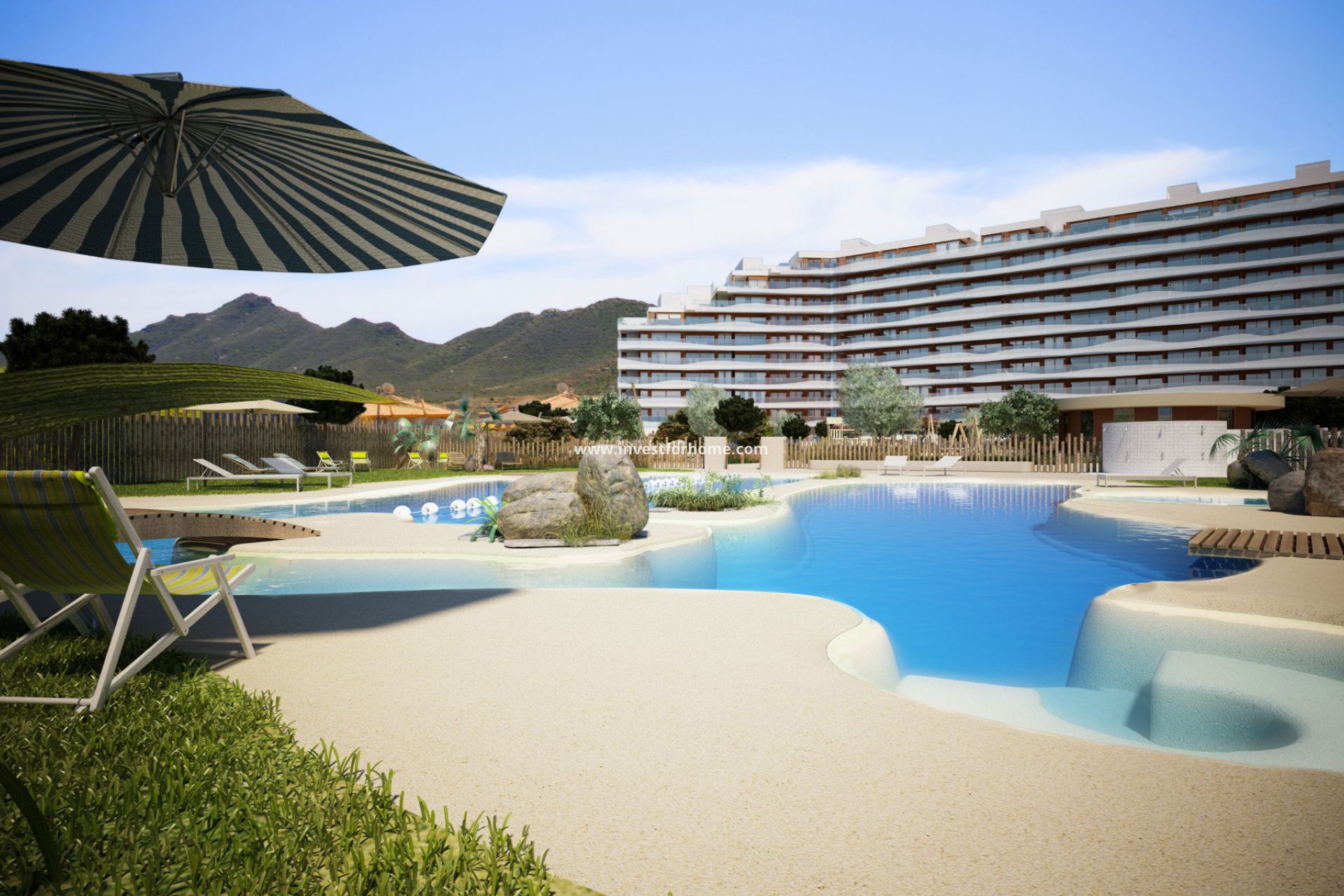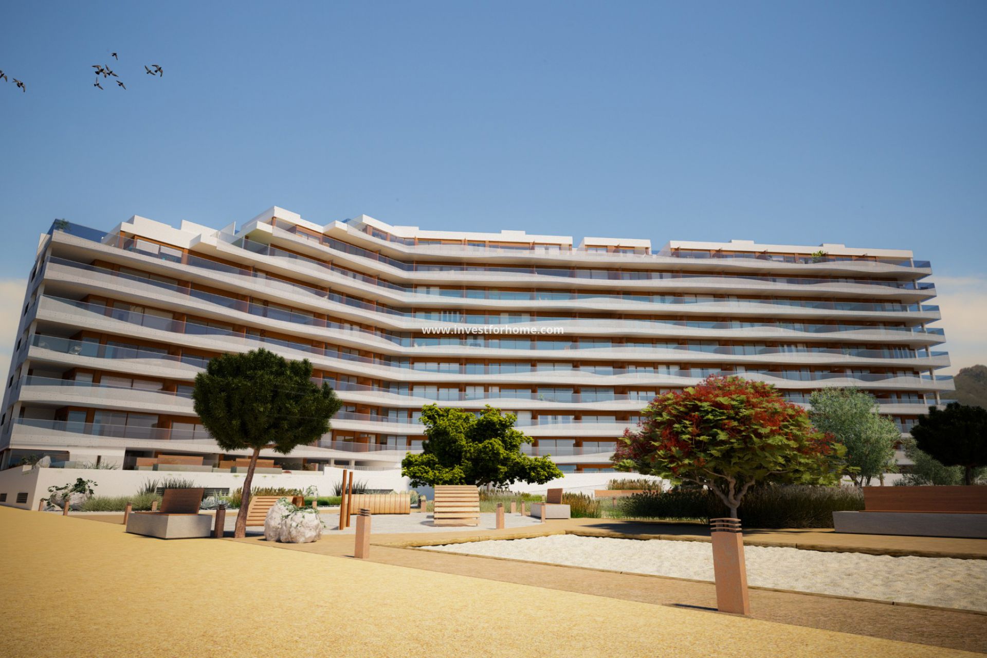 Appartementen met 2 en 3 slaapkamers en 2 badkamers, met panoramische terrassen met spectaculair uitzicht, ondergrondse parkeergarage en benijdenswaardige gemeenschappelijke ruimtes, voor het plezier van het hele gezin en met uitstekende communicatie met andere steden en activiteiten aangeboden door het goede weer.