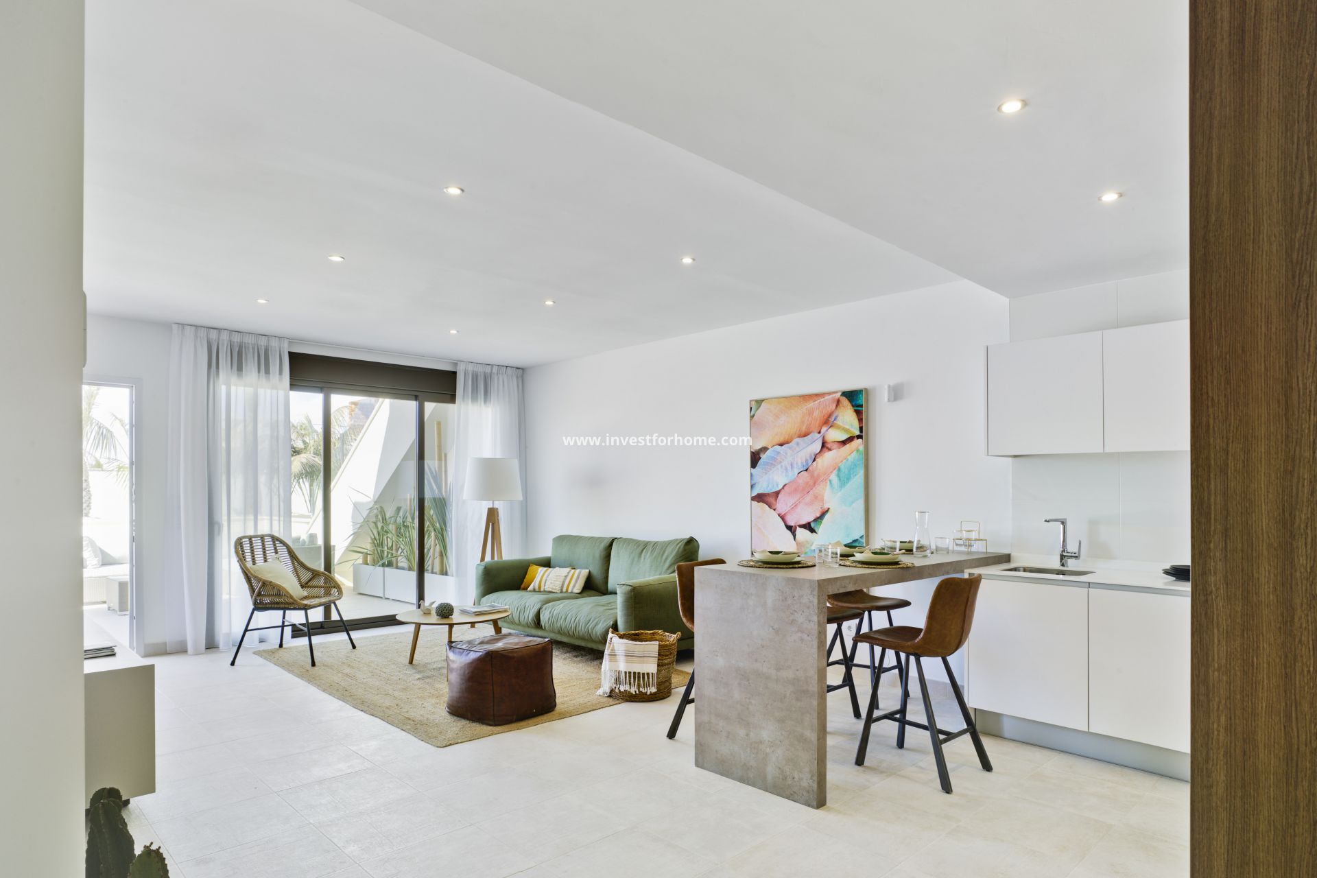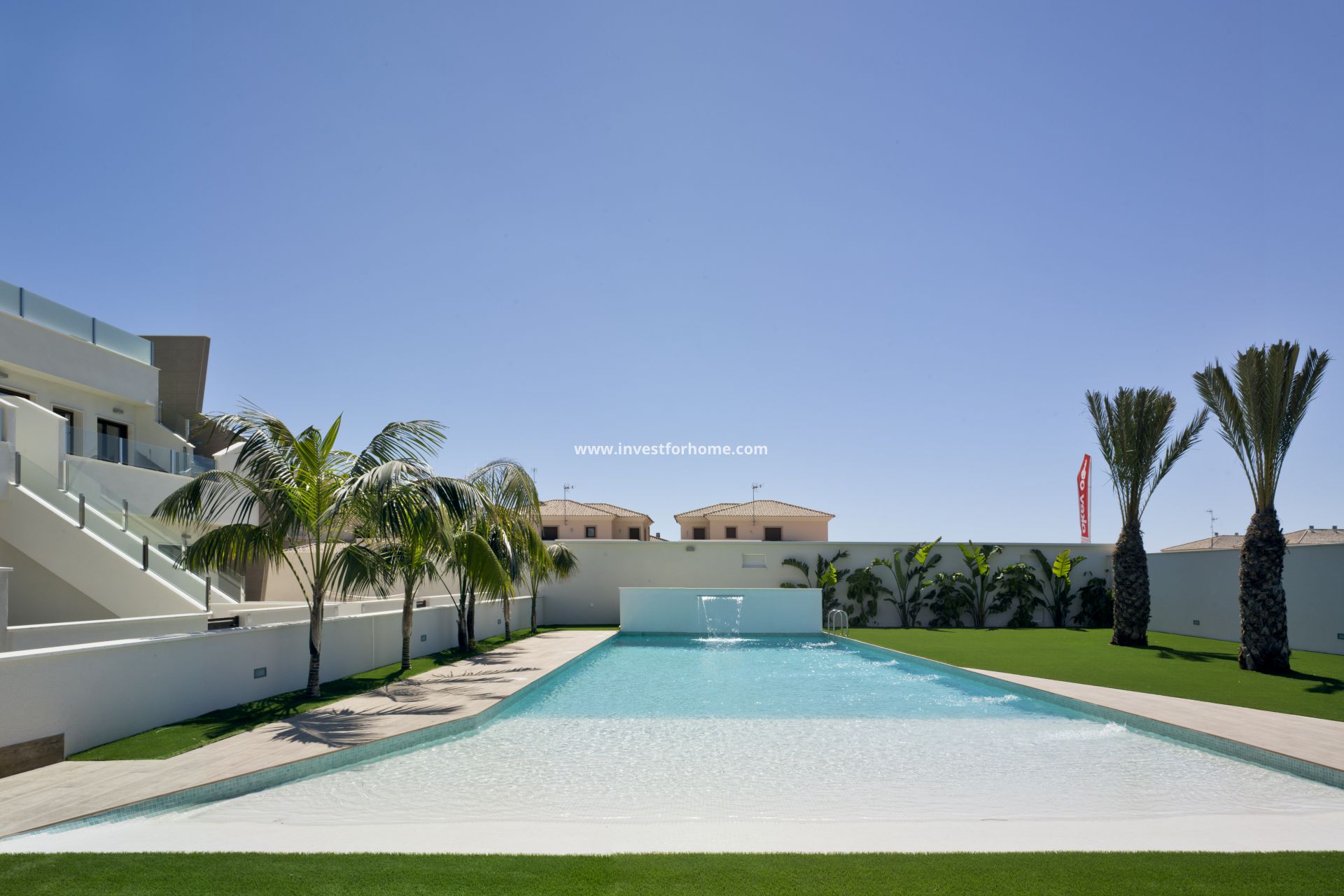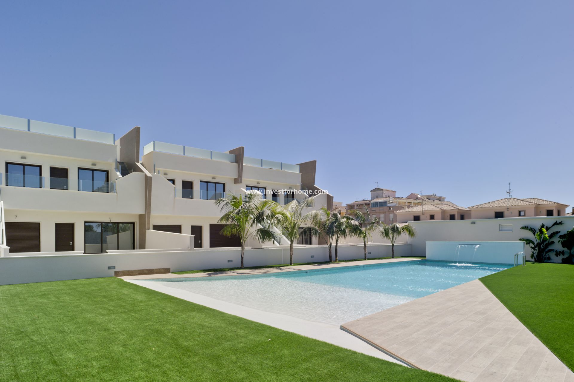 Dit is een residentie van 26 moderne appartementen met materialen van topkwaliteit. 3 slaapkamers op de begane grond met groot terras en 2 slaapkamers op de bovenste verdieping met solarium. Beide keuzes hebben ruime terrassen en privéparkeergelegenheid. Als nieuwigheid heeft ook een eigen berging om fietsen te stallen. Dit wooncomplex biedt ook een aangelegde gemeenschappelijke ruimte met zwembad, waar u het hele jaar door van de zon kunt genieten. Gelegen in Pilar de la Horadada, een bevoorrechte omgeving, op slechts 15 minuten fietsen van de stranden van Torre de la Horadada en de stranden van San Pedro del Pinatar en op een steenworp afstand van het stadscentrum en winkelcentra