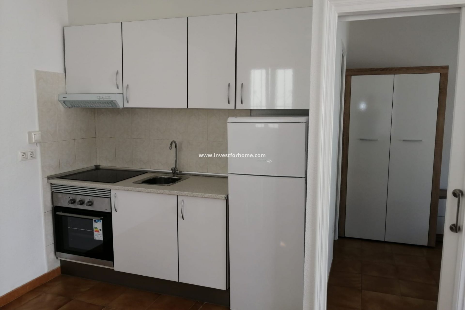 Deze bungalow op de begane grond met één slaapkamer ligt op slechts 100 meter van Playa del Acequion in Torrevieja. Het bestaat uit een eigen slaapkamer met één slaapkamer, een woonkamer met open keuken en een terras van 26 m2 met een bijkeuken. vernieuwd en alle meubels en elektrische apparaten zijn gloednieuw. De ramen zijn ook nieuw. koopje voor wie op zoek is naar een klein vakantieverblijf in de zon vlakbij het strand en alle benodigde voorzieningen.