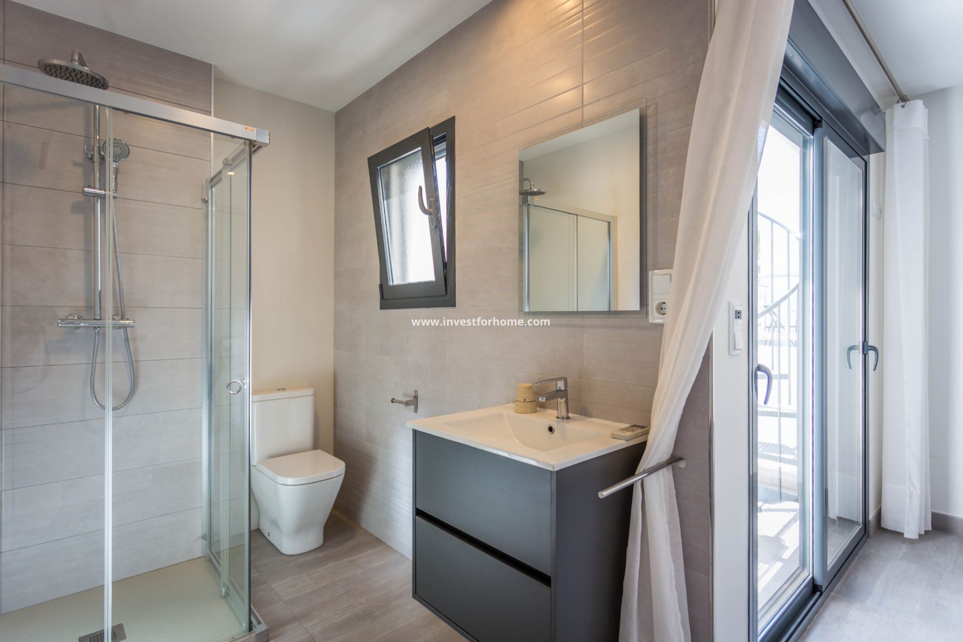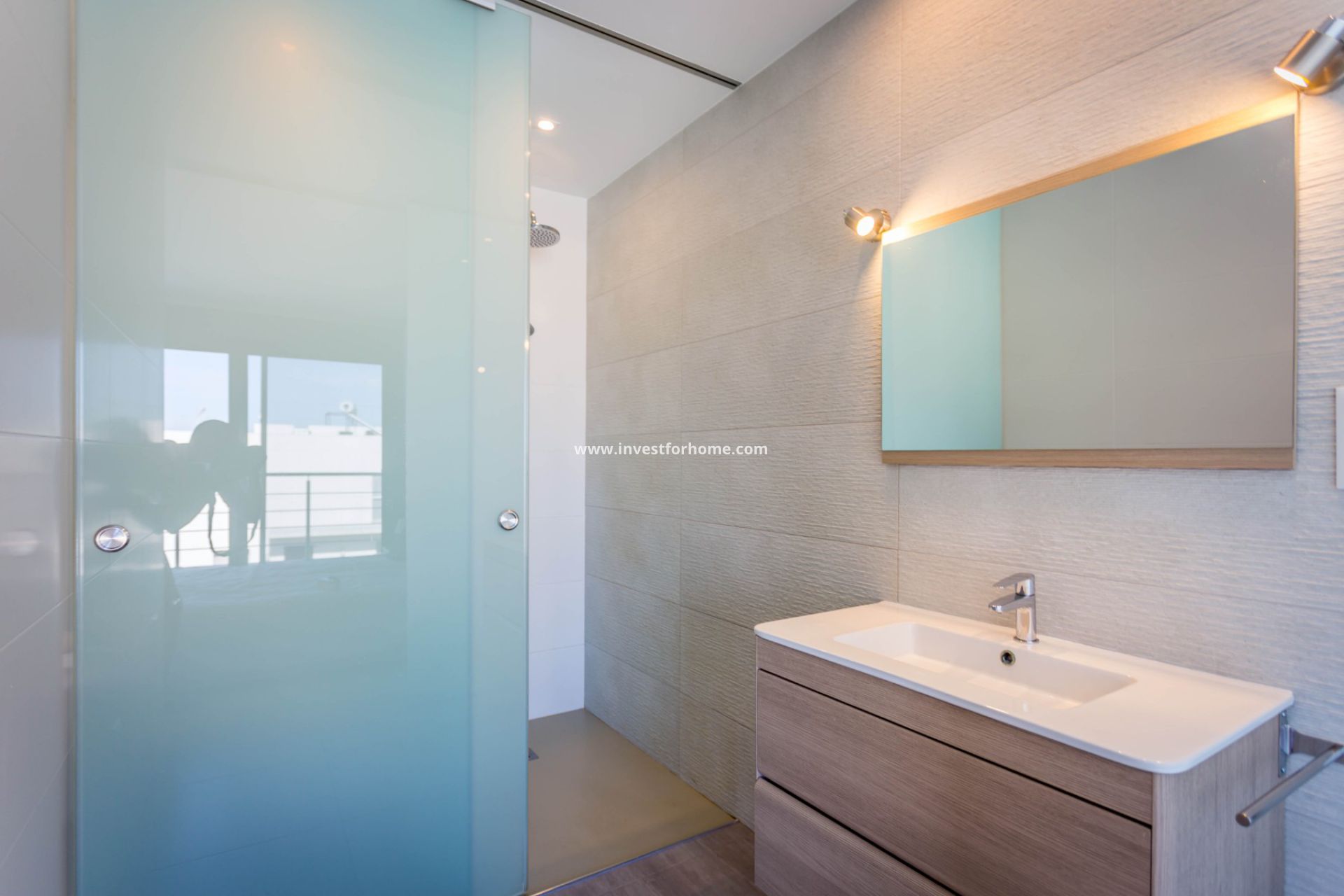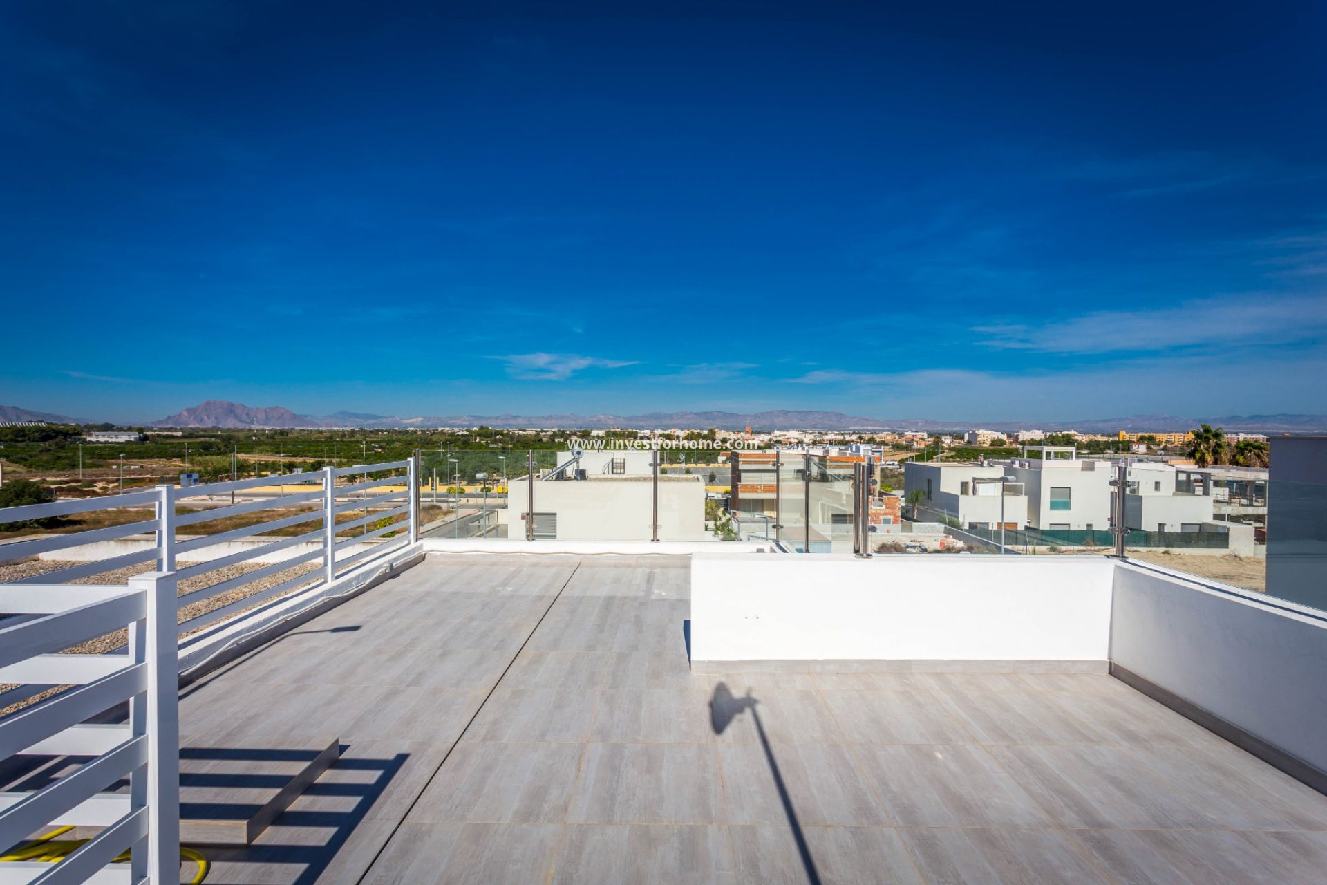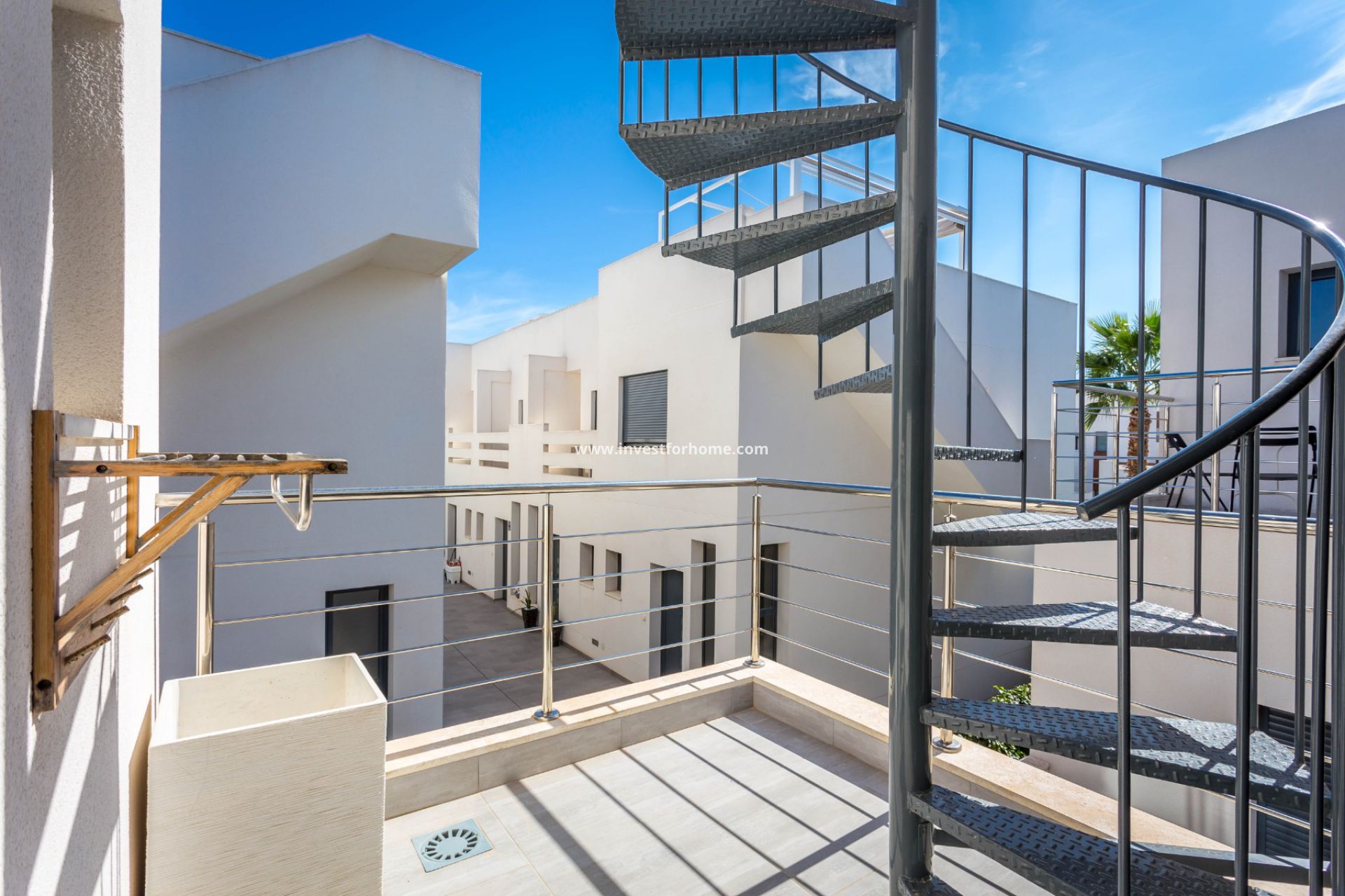 Op de bovenste verdieping een privé solarium van 40 m² met douche