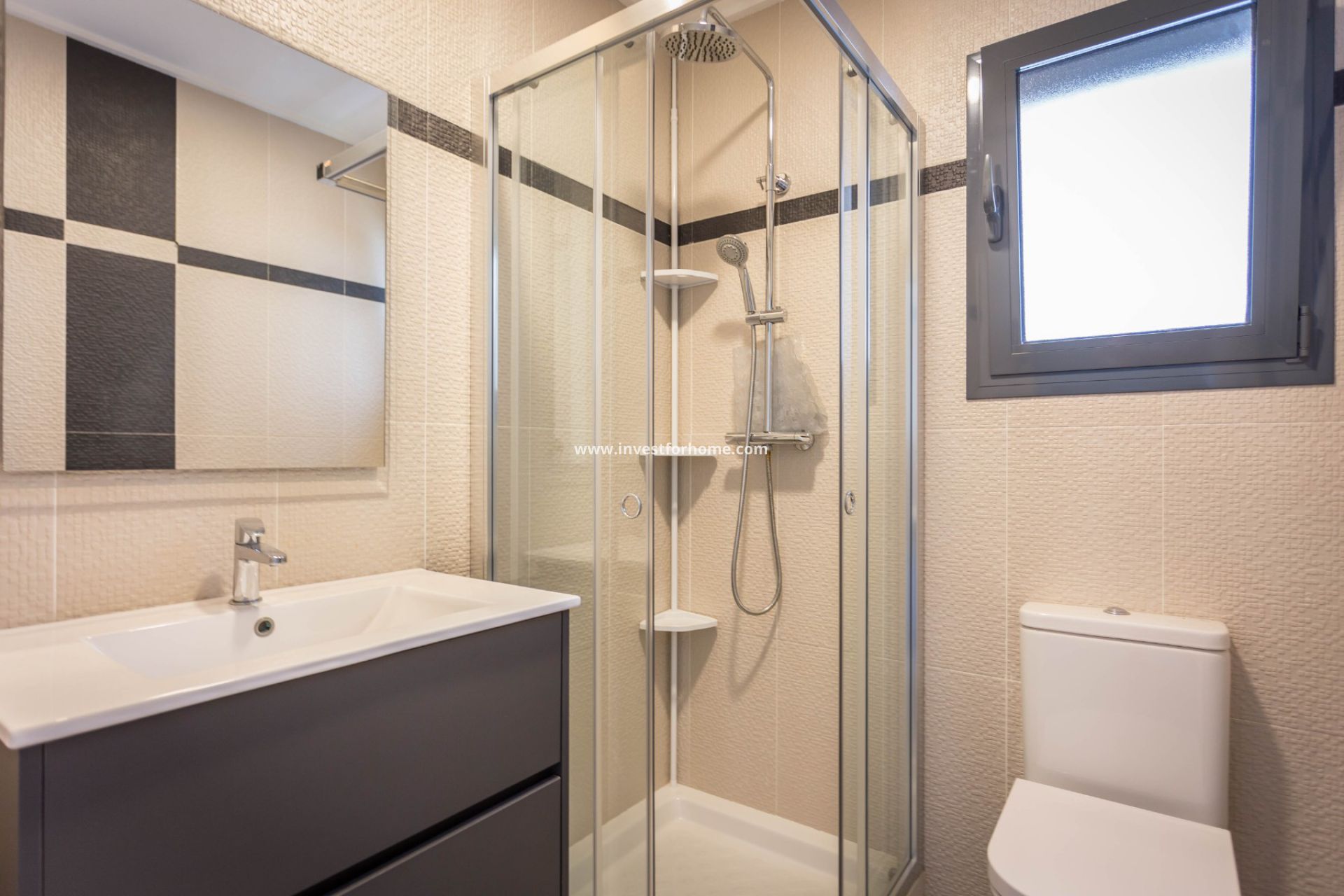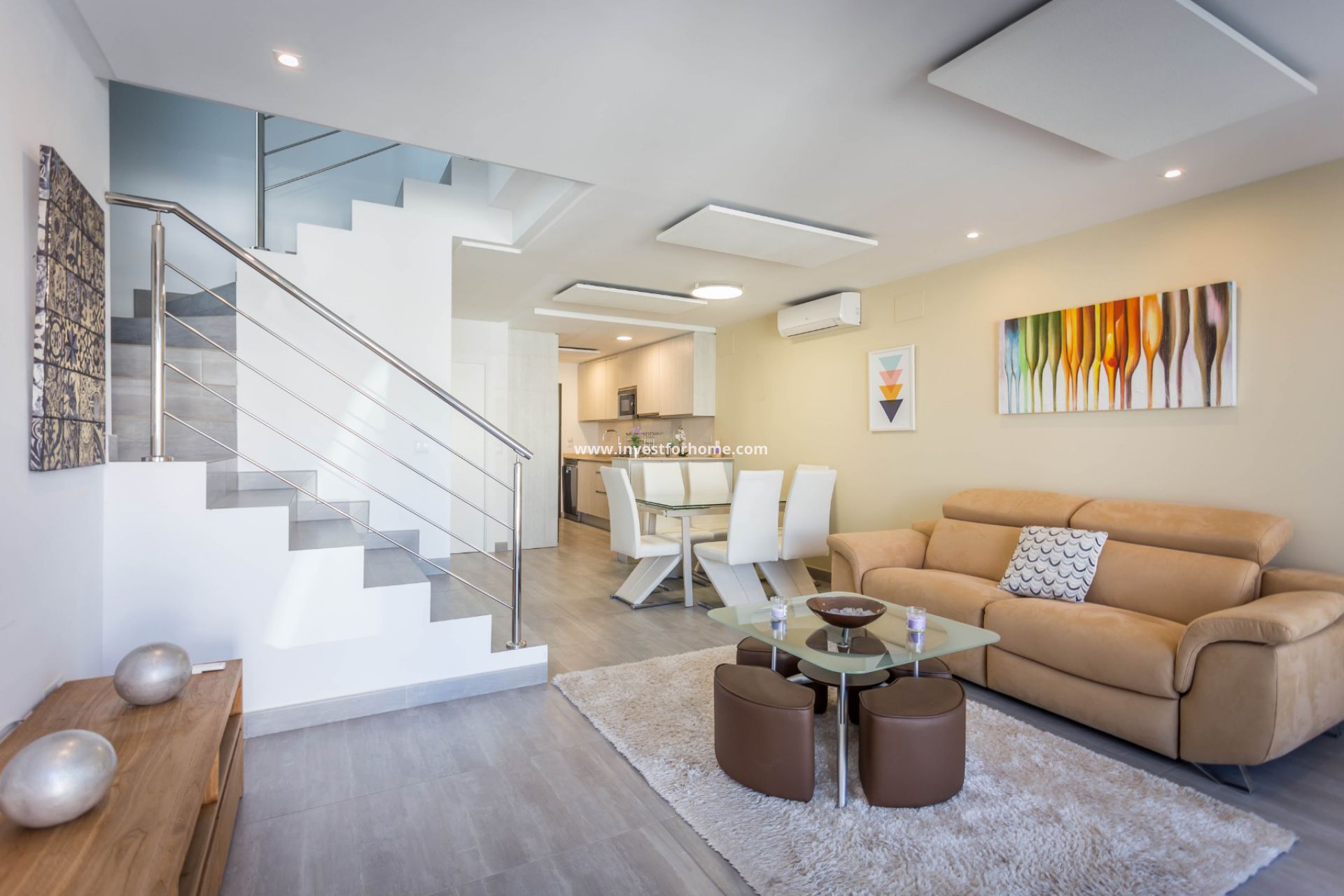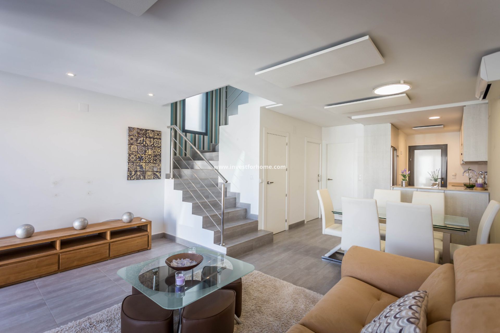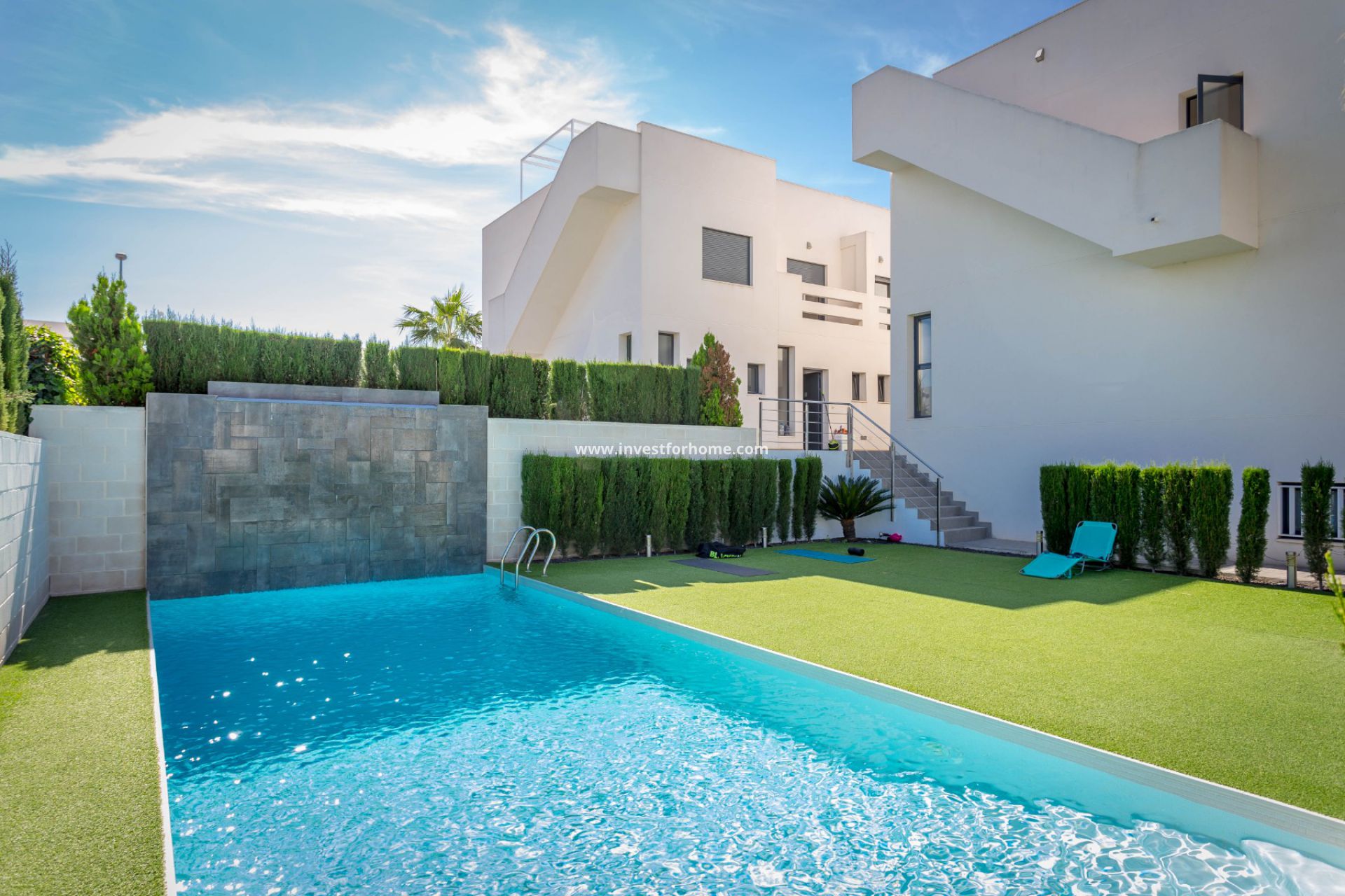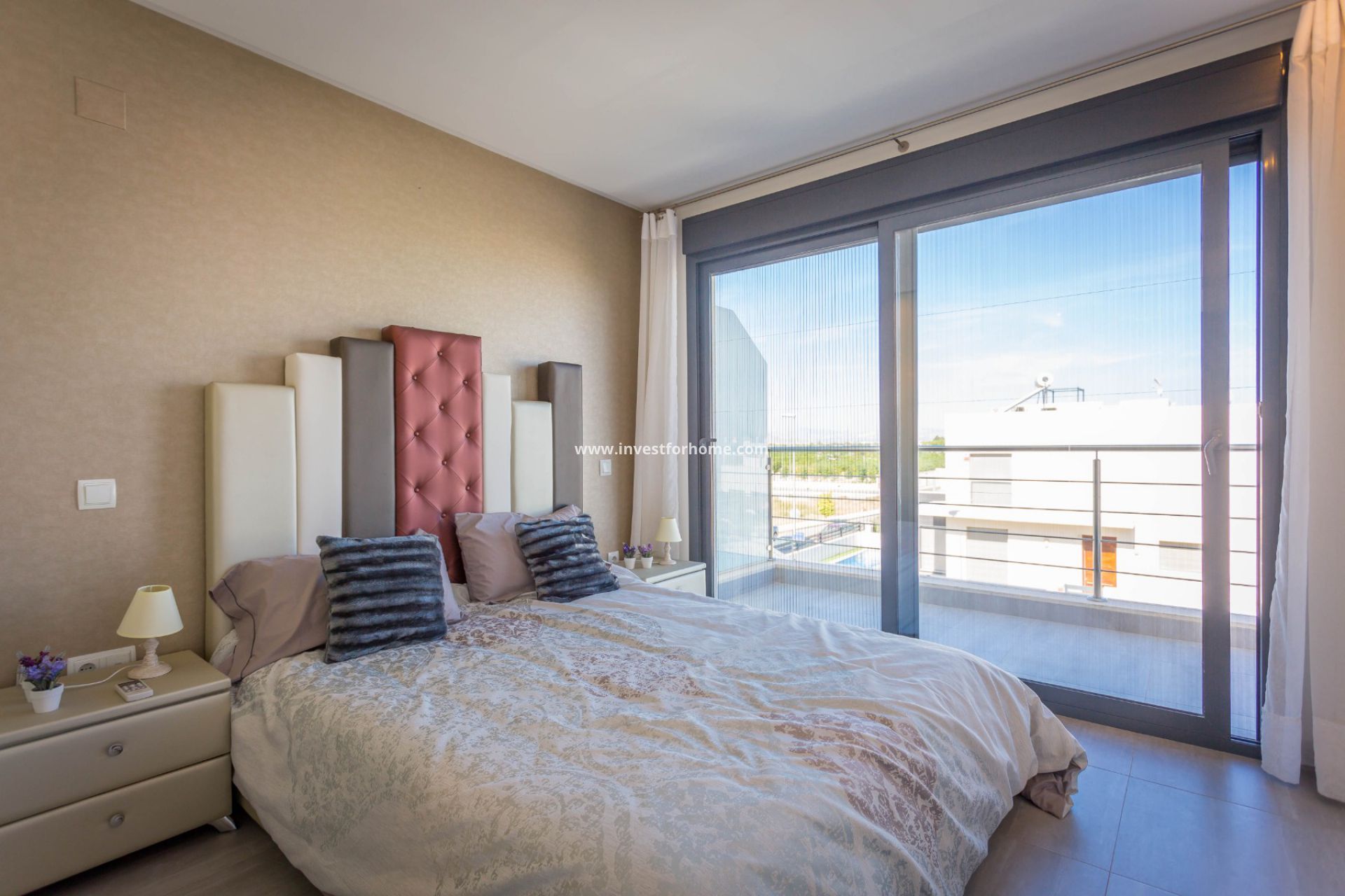 De woning beschikt over airconditioning in alle kamers, een garage en 86m² buitenruimte met automatische bewatering.