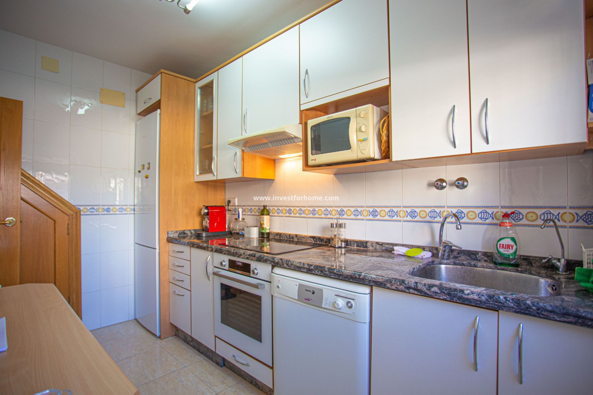 Het wordt gemeubileerd verkocht, met toestellen.