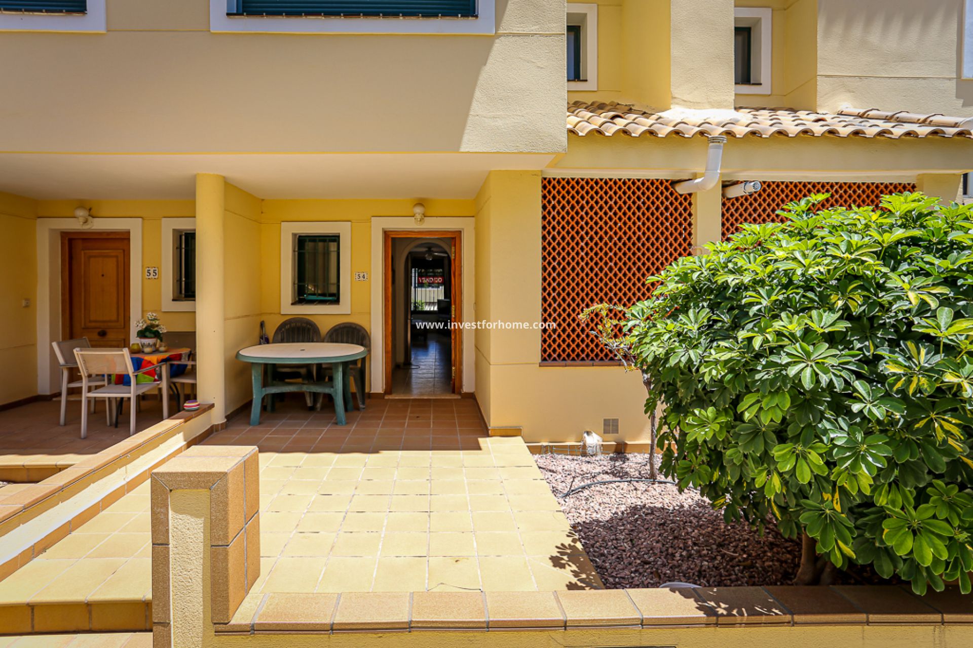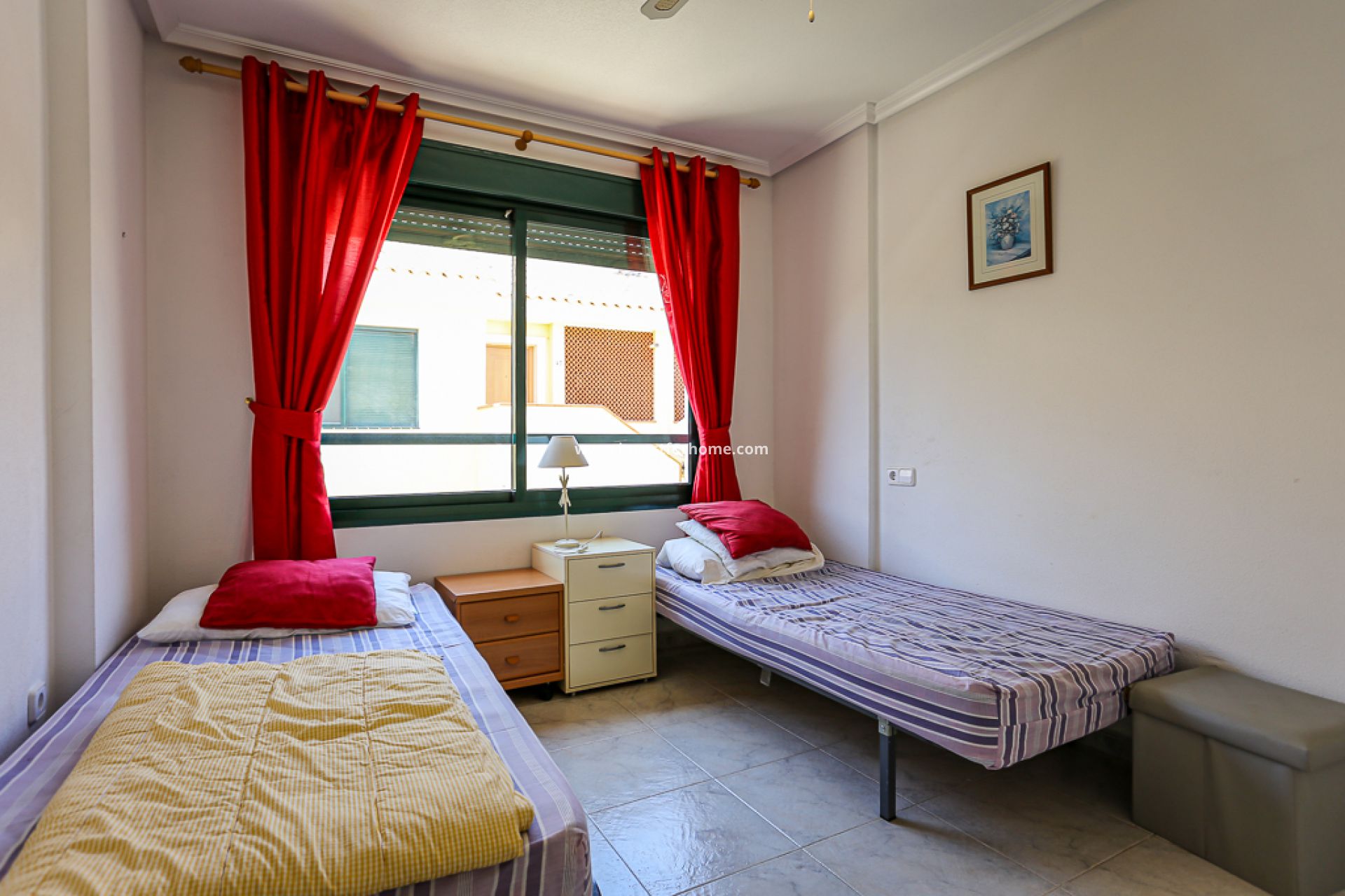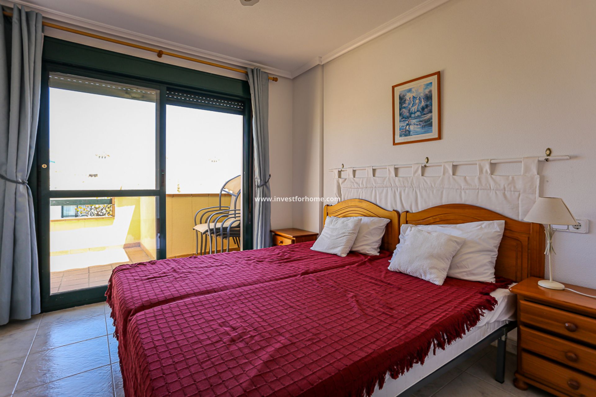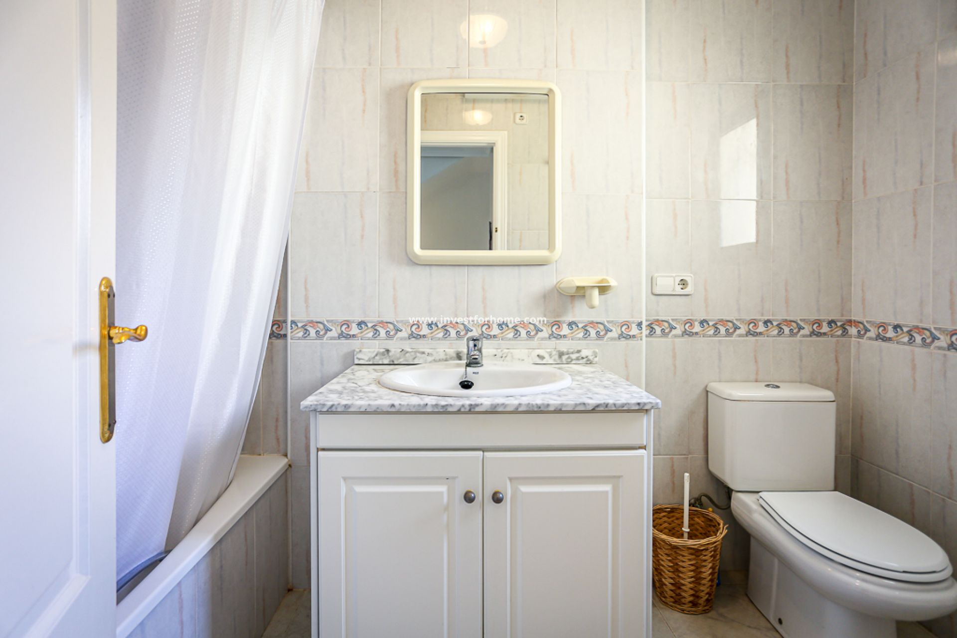 Mooi herenhuis Granada te koop in Lomas de Campoamor (Orihuela Costa) Op een steenworp afstand van de Golf de Campoamor, dit mooie huis met 2 verdiepingen heeft 2 slaapkamers, een met balkon en toegang tot het dakterras, grote woonkamer van 30m² en een ingerichte onafhankelijke keuken.