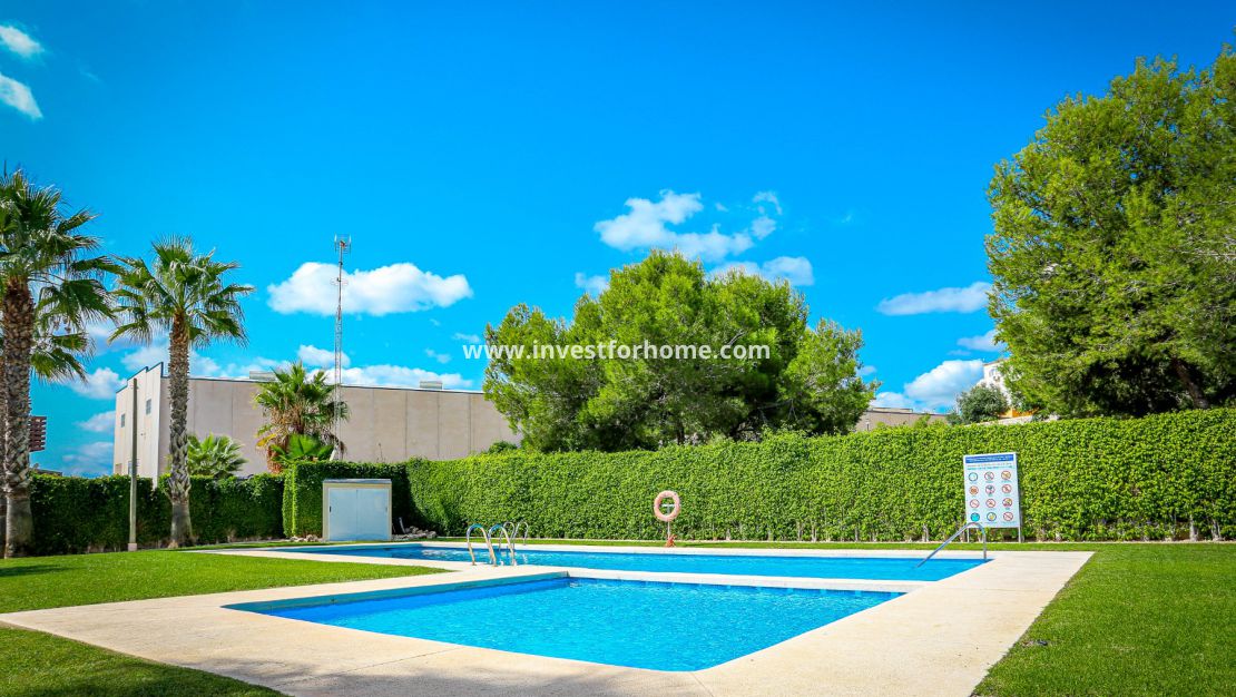 Fantastisch appartement in uitstekende staat, als nieuw, gebouwd in 2010. Het bestaat uit 2 slaapkamers, 2 badkamers, open keuken naar de woonkamer en dubbel terras. Het appartement is gelegen in een gated community met gemeenschappelijk zwembad en parkeerplaats. Op loopafstand vindt u het winkelcentrum La Fuente met alle voorzieningen zoals: Bar, Restaurant, Apotheek, Bakkerij, supermarkt etc... Dichtbij de golfbanen van Villamartin, Campoamor, Las Ramblas en Las Colinas. Slechts 5 km van de fijne zandstranden van Orihuela Costa: La Zenia, Dehesa de Campoamor, Playa Flamenca, Cabo Roig en Mil Palmeras. Ideale locatie voor het hele jaar door wonen, vakantie of huurinvestering.
