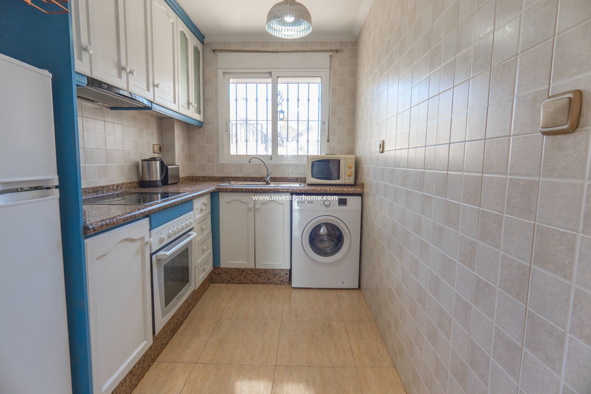 Deze gedeeltelijk gemeubileerde woning ligt op een fantastische locatie, naast Playa Flamenca en op korte loopafstand van de plaatselijke school.