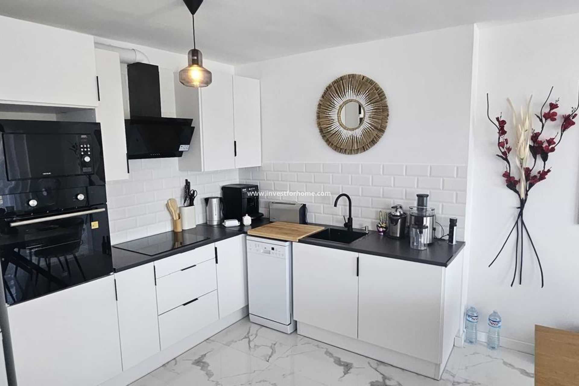 We are happy to present to you this fantastic fully renovated apartment, located just 300 meters from the amazing Punta Prima beaches. The property consists of 2 double bedrooms, 2 bathrooms, an American-style kitchen fully furnished and equipped with brand new appliances, and recently installed furniture, along with two charming terraces with sea views. The apartment is located in a gated community, next to a natural area, on an elevated ground floor. The community offers us a large shared pool with a lifeguard. A parking space is included in the price. Shall we schedule your visit? Contact us for more information.