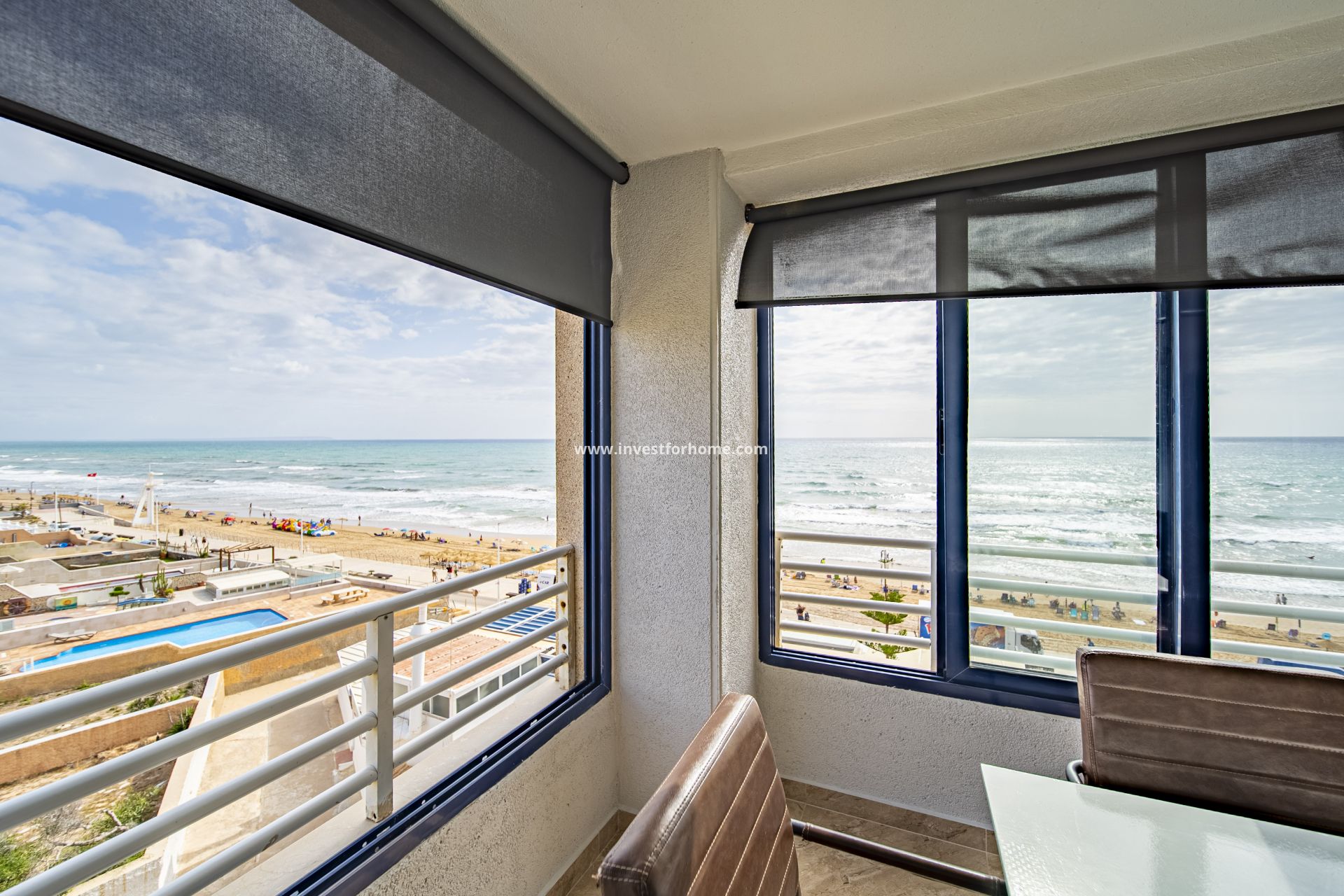 Renovated beachfront apartment in La Mata. Fifth-floor apartment with spectacular front sea views. Fully renovated with high-quality materials, open-plan kitchen equipped (valued at €20,000), living room with A/C, 2 bedrooms and 1 bathroom. Residential complex with pool, sports courts, sea-view solarium and 24h concierge. Key features: 2 bedrooms and 1 bathroom Open-plan kitchen with high-end appliances Front sea views Living room with air conditioning Triple glazing and premium doors Security door and new tiling Furnished (excluding personal items) Parking Storage room 5th floor, building with lift Year of construction: 1990 Community amenities: Communal pool, tennis and football courts Fish pond Sea-view communal solarium 24h concierge, meeting room, communal storage Annual costs: Community fee: €700 IBI: €150