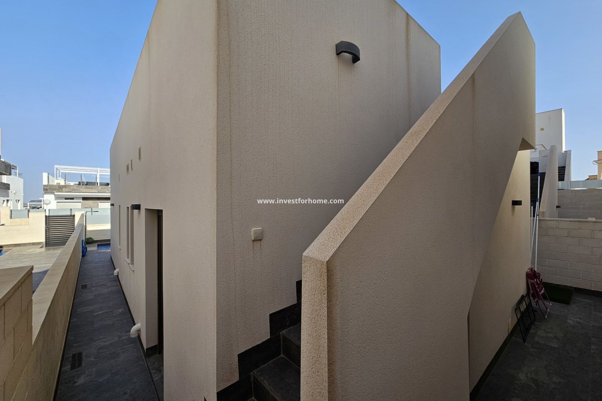 Immaculate modern detached villa for sale located in Residential Pink Paradise, an exclusive residential complex in Villamartin, just minutes from the well known Villamartin Plaza and the huge variety of international restaurants, supermarkets and convenience stores. This Villa has been built to a high standard and offers the perfect blend of comfort and luxury. This property has three spacious bedrooms with built-in wardrobes, two modern bathrooms (of which 1 is en-suite), and a living room with an open plan fully equipped kitchen and breakfast bar. The highlight of this villa is the private swimming pool along with the beautiful solarium offering breathtaking views of the pink salt lake and pine forest making it an ideal spot for enjoying the sunsets or stargazing. The villa is sold fully furnished minus the current owner's personal items with many extras including ducted air-conditioning throughout and electric shutters. This property is the epitome of single-story Mediterranean living, combining elegance and relaxation in one exquisite package. The area is known for its beautiful hiking trails, several 18-hole golf courses, as well as Villamartin Plaza, which is the center of Villamartin - here it is bustling with life with the many restaurants and bars to be found. Otherwise, it is 6-7 minutes to drive to the many beautiful sandy beaches.
