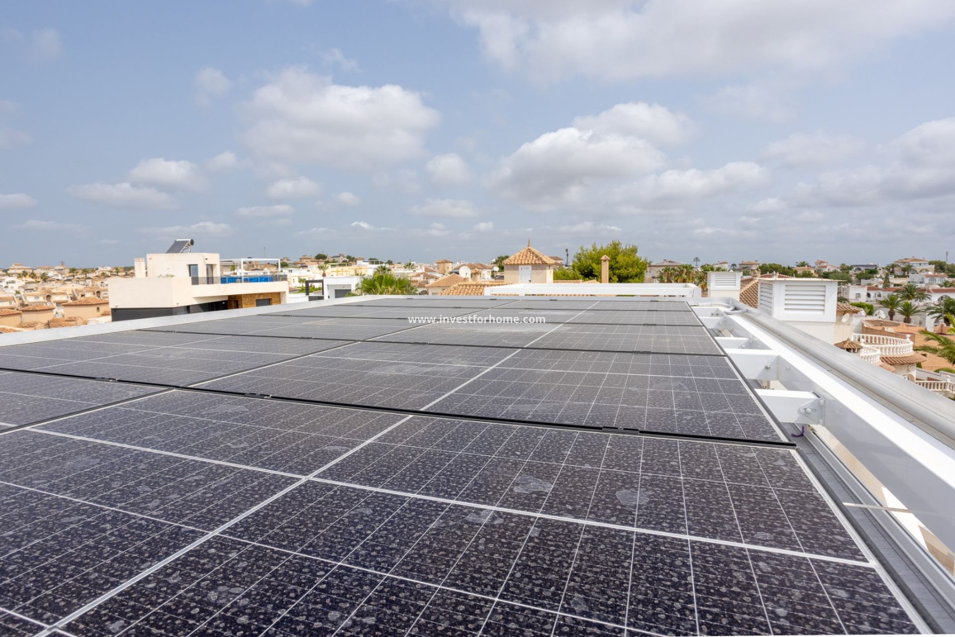 This excellent 2 bedroom, 2 bathroom apartment in San Miguel de Salinas - Blue Lagoon offers a comfortable living space of 80m2. The penthouse is located on the 1st floor and has a very nice communal swimming pool and a private underground parking space with a large lockable storage room. The apartment has an open kitchen, which is perfect for receiving your guests and is fully equipped with household appliances. The property has a beautiful solarium, from which you can also see the sea and has a beautiful, large and complete outdoor kitchen, which even has extra storage space! Naturally, the property has air conditioning, but an alarm and a reinforced door also provide extra security. The balcony, which is accessible from the living area, offers a wonderful place to enjoy the panoramic view. Conveniently located just 15 minutes from the beach, 45 minutes from the airport and 5 minutes from both amenities and golf courses, this apartment is ideal for those looking for a peaceful lifestyle with good connections. The communal pool, garage and intercom system add to the convenience and comfort of this property. With the added features of an awning, mosquito nets and an outdoor kitchen/BBQ area, this apartment offers a wonderful living experience. Don't miss the opportunity to view this beautiful property!