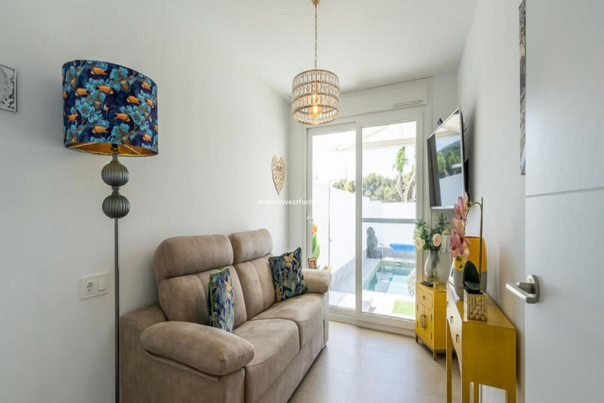 Welcome to this exquisite villa that offers a perfect blend of comfort, luxury, and convenience. Nestled in a prime location, this property presents an array of remarkable features that will exceed your expectations. From the moment you enter, you'll be greeted by a secure entry system and electric front gates, guiding you towards a spacious terrace that beckons you to embrace the outdoors. This inviting space provides ample room for outdoor dining, sunbathing, and relaxation, ensuring that you can fully indulge in the tranquility and beauty of your surroundings.As you step onto the front terrace, you'll be captivated by your own private swimming pool, a refreshing oasis that can be heated to your desired temperature. The expansive terrace, designed with entertaining in mind, offers a delightful venue for hosting family gatherings and creating cherished memories with friends. Additionally, this remarkable villa encompasses side and rear terraces, allowing you to fully appreciate every aspect of outdoor living.Upon entering the villa through the side entrance, you'll find yourself in the inviting living room, seamlessly connected to the open-plan kitchen. The living room boasts captivating views of the pool and features large patio doors that can be opened during warm weather, providing a seamless transition between the interior and exterior spaces. The kitchen, with its modern design and integrated appliances, offers a culinary haven with ample storage space to fulfill all your culinary needs.The villa graciously accommodates its guests with a variety of bedrooms. A bedroom located off the living room boasts fitted wardrobes and patio doors that open out to the inviting pool area, offering a private sanctuary. Adjacent to this bedroom, a full-size shower room showcases contemporary furniture and fixtures.Beyond the kitchen area lies a remarkable space unique to this villa—a large storage room specifically designed for storing bicycles, golf clubs, and other recreational equipment. The current owners have ingeniously transformed this space into a practical haven, complete with a wine fridge, ice cream freezer, and laundry appliances, further enhancing the functionality and appeal of this exceptional villa.Ascending to the first floor, you'll discover two generously sized bedrooms, both adorned with fitted wardrobes for your convenience. These bedrooms provide access to a charming terrace area, from which you can marvel at the garden and pool views, creating yet another enchanting outdoor space. To add to the allure, one of the bedrooms offers a walk-in wardrobe, elevating the level of luxury and comfort. This floor also hosts another full-size shower room, elegantly designed to meet your needs.Venturing to the second floor, you'll be greeted by the master suite—an expansive bedroom that exudes elegance and sophistication. This suite boasts an en suite shower room, wall-to-wall wardrobe space, and a private terrace featuring an outdoor day bed and furniture. This idyllic space offers a serene setting to unwind on summer evenings or savor your morning coffee, allowing you to fully embrace the charm of the villa's surroundings. Furthermore, mosquito fly screens are thoughtfully installed throughout the entire villa, ensuring a peaceful and comfortable environment. Each terrace is equipped with awnings, providing shade as desired.The villa's prime location adds to its allure, offering convenient access to both the Mediterranean and Mar Menor beaches, allowing you to bask in the sun and enjoy the crystal-clear waters of the region. A short stroll away lies the picturesque town square of San Pedro del Pinatar, where you can immerse yourself in the local culture and embrace the vibrant atmosphere. Numerous supermarkets, bars, and restaurants are also within close proximity, providing an array of options to cater to your desires.For travelers, the villa's accessibility is unparalleled. Murcia airport is a mere 30-minute drive away, while Alicante airport can be reached within approximately an hour. Golf enthusiasts will find themselves in paradise, with several world-class golf courses located justDetached Villa, San Pedro del Pinatar, Costa Calida.4 Bedrooms, 3 Bathrooms, Built 144 m², Terrace 38 m².Setting : Commercial Area, Close To Golf, Close To Port, Close To Shops, Close To Sea, Close To Schools, Close To Marina.Orientation : South.Condition : Excellent.Pool : Private.Climate Control : Air Conditioning, Hot A/C, Cold A/C.Views : Pool.Features : Fitted Wardrobes, Near Transport, Private Terrace, Solarium, WiFi, Utility Room, Ensuite Bathroom, Marble Flooring, Double Glazing, Near Church.Furniture : Fully Furnished.Kitchen : Fully Fitted.Garden : Private.Parking : Street.
