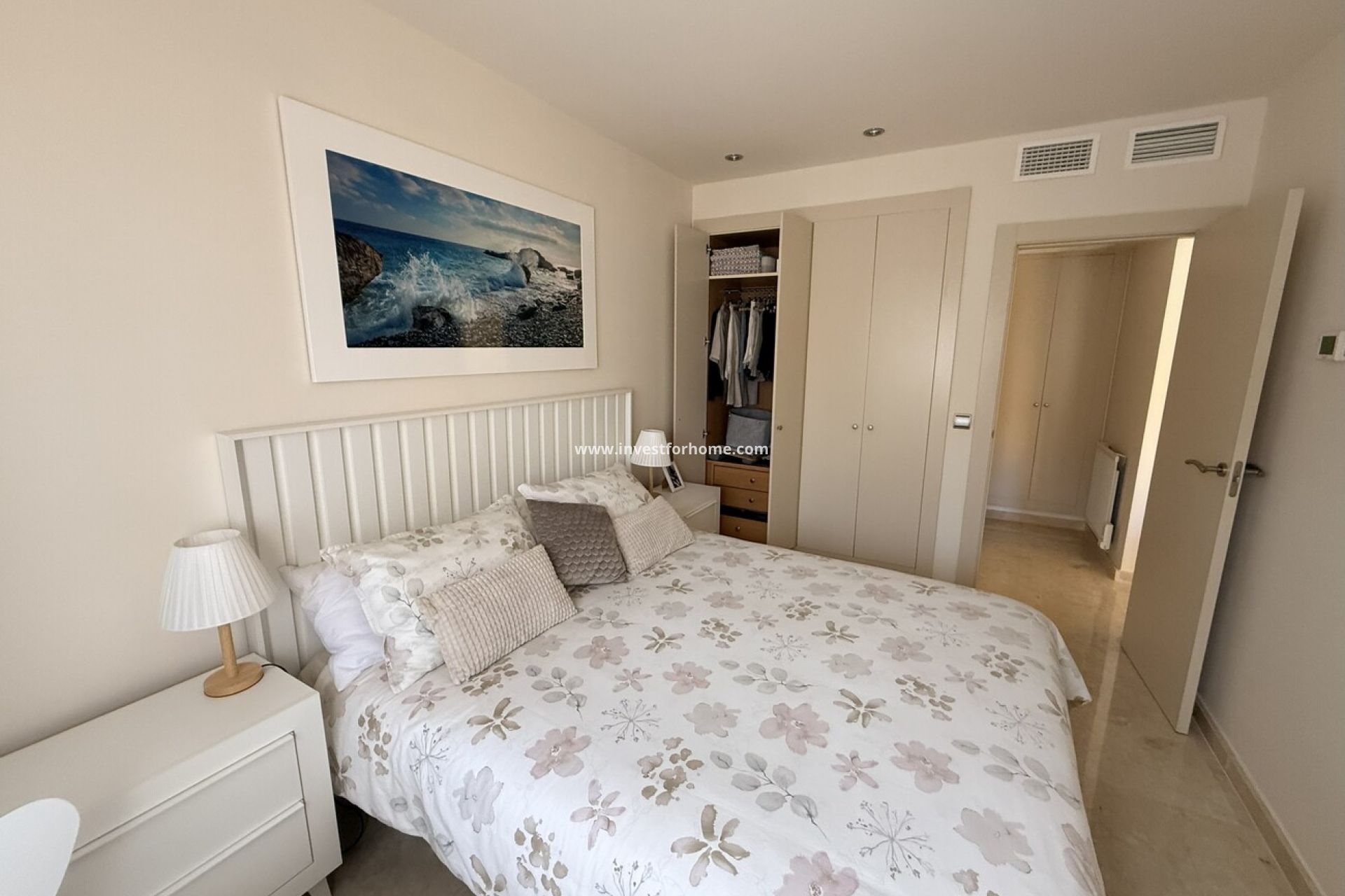 Cozy apartment in the prestigious Nueva Ribera district of Los Alcazares, located just 150 meters from the sea. The property is spread over two floors and offers a functional layout with two bedrooms, two bathrooms, and a bright, open-plan living room with a modern kitchen. Large windows provide excellent lighting and create a cozy atmosphere. A unique feature of this property are two terraces (one on each level) offering views of the sea and the surrounding greenery. The apartment also includes a private parking space in the garage and a storage unit.