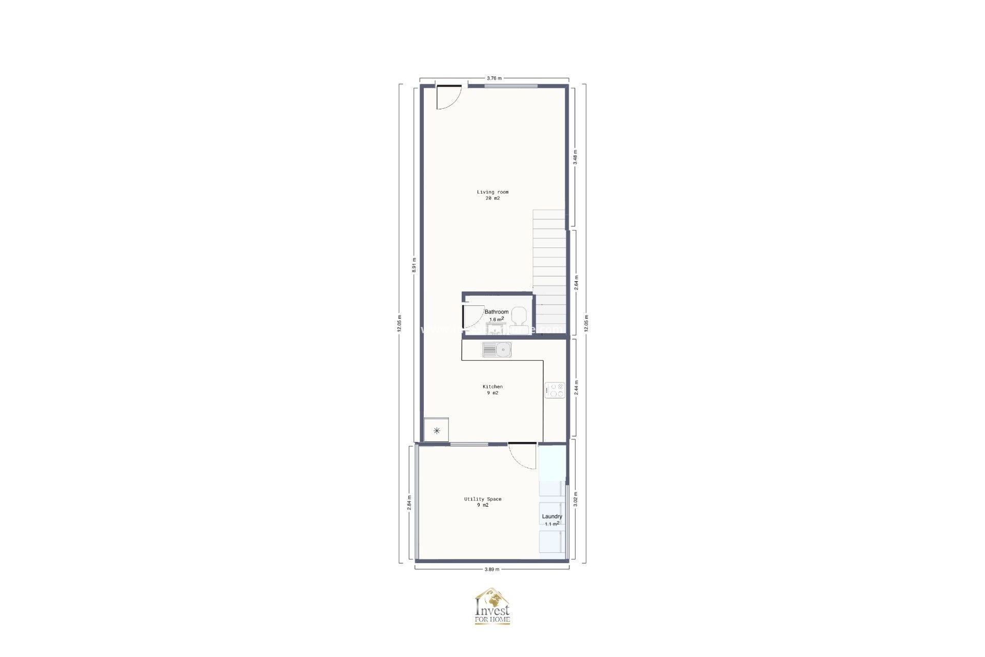 Covered rear terrace, ideal as a laundry area or storage room