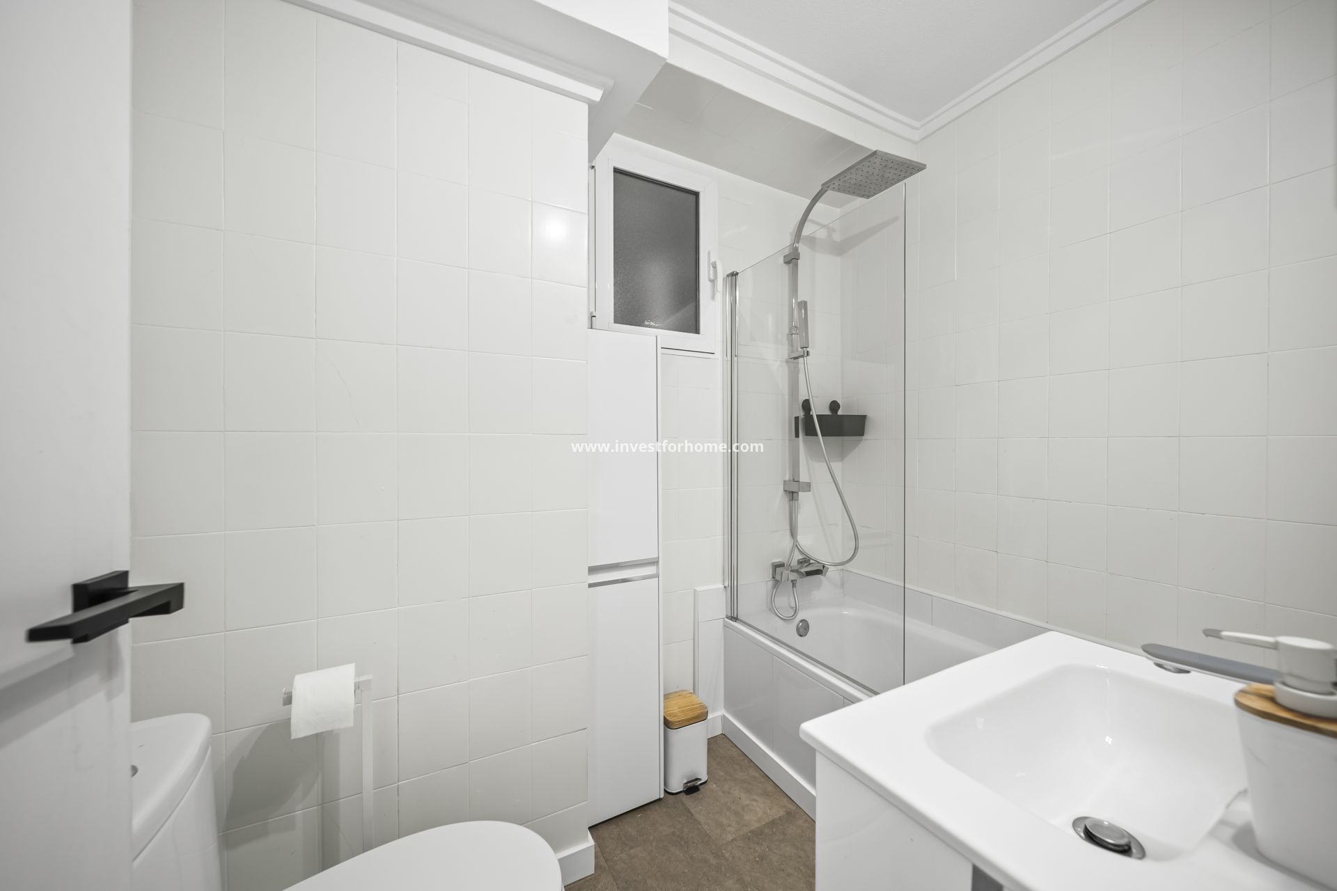 Renovated Apartment Next to the Port of Torrevieja. Apartment fully refurbished in 2023. Located on the second floor without a lift, it features 2 spacious bedrooms, 1 bathroom, an independent kitchen, laundry area, and an 8 m² south-facing terrace. It offers 98 m² built and air conditioning in the living room and main bedroom. Key Features 2 spacious bedrooms 1 bathroom 98 m² built 8 m² terrace Independent kitchen Laundry area Air conditioning in living room and bedroom Second floor (no lift) South-facing Year of construction: 1966 Renovated in 2023 (including electricity and plumbing) Annual Expenses Community fees: €440 IBI (property tax): €234 Additional Information Option to purchase a parking space in the new leisure area of the Port of Torrevieja. The new port leisure area will offer restaurants, shops, bowling, cinema, and a fully renovated promenade leading to the lighthouse. Location 50 m from bars and restaurants 100 m from shops and supermarkets 200 m from the new port leisure centre 200 m from Torrevieja Marina