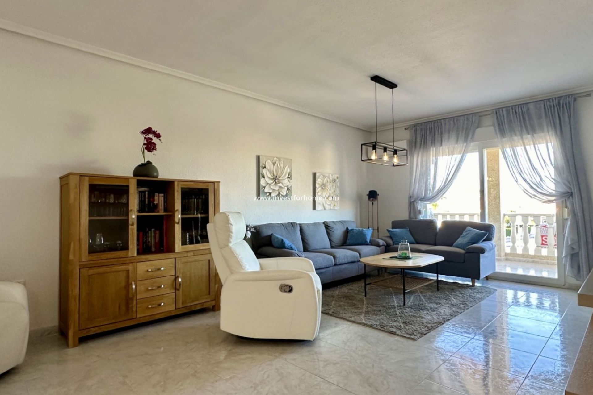 Introducing a charming apartment located on Calle Nicolás de Bussi, Playa Flamenca — an ideal home for holidays, rental investment, or full-time living on the Costa Blanca. This well-maintained property offers 2 spacious bedrooms with double built-in wardrobes, a large bathroom with shower/WC, and a separate laundry/storage room providing excellent extra space.The kitchen features modern appliances from 2021, and the home is equipped with air conditioning in the living room and both bedrooms, plus ceiling fan/light in the kitchen and dining area. The large terrace offers plenty of outdoor space.Located on the 3rd floor (no lift), the apartment enjoys a central position within walking distance to supermarkets, restaurants, shops, go-karting, a water park and La Zenia Boulevard (6 minutes). The beaches of Playa Flamenca are just 13 minutes away, and Alicante Airport is 40 minutes by car. A private garage space is included in the price.The residential complex also offers a community pool.