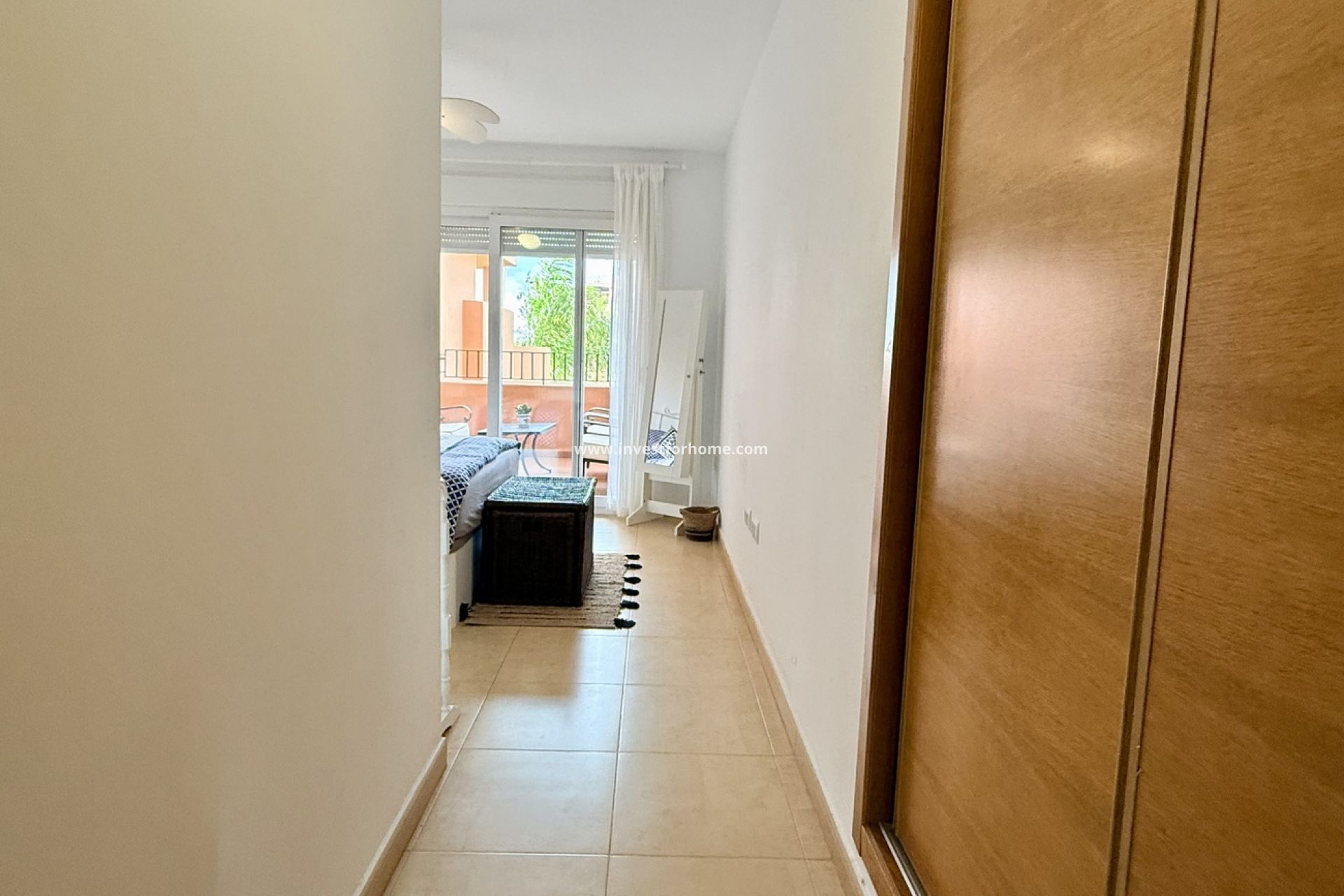 Spacious 2-bedroom, 2-bathroom apartment in the heart of the Mar Menor Golf Resort, overlooking the communal pool and the 16th hole of the golf course. This charming first-floor apartment features two large bedrooms and two full bathrooms. The master bedroom has an en-suite bathroom and access to the main terrace. The second bedroom has its own terrace and shares the second bathroom. Fitted wardrobes in both bedrooms offer excellent storage space. The kitchen is fully furnished and equipped with appliances, including a ceramic hob, oven, dishwasher, washing machine, fridge/freezer, and extractor hood. The bright and inviting living-dining room offers direct access to a terrace where you can relax and enjoy the Mediterranean climate. The property is sold furnished and is in immaculate condition. Parking is included in the price, which also includes a private parking space in the underground garage. This apartment is a unique opportunity you won't want to miss. Come and see it and fall in love with your new home!The mar menor golf resort is one of the leading golf resort in the area. With is amenities all on walking distance and its 24u security, its easy and very safe and secure to enjoy the mediterean climate. Only 6km from the calm waters of the Mar Menor, you also can enjoy the beach and sea.