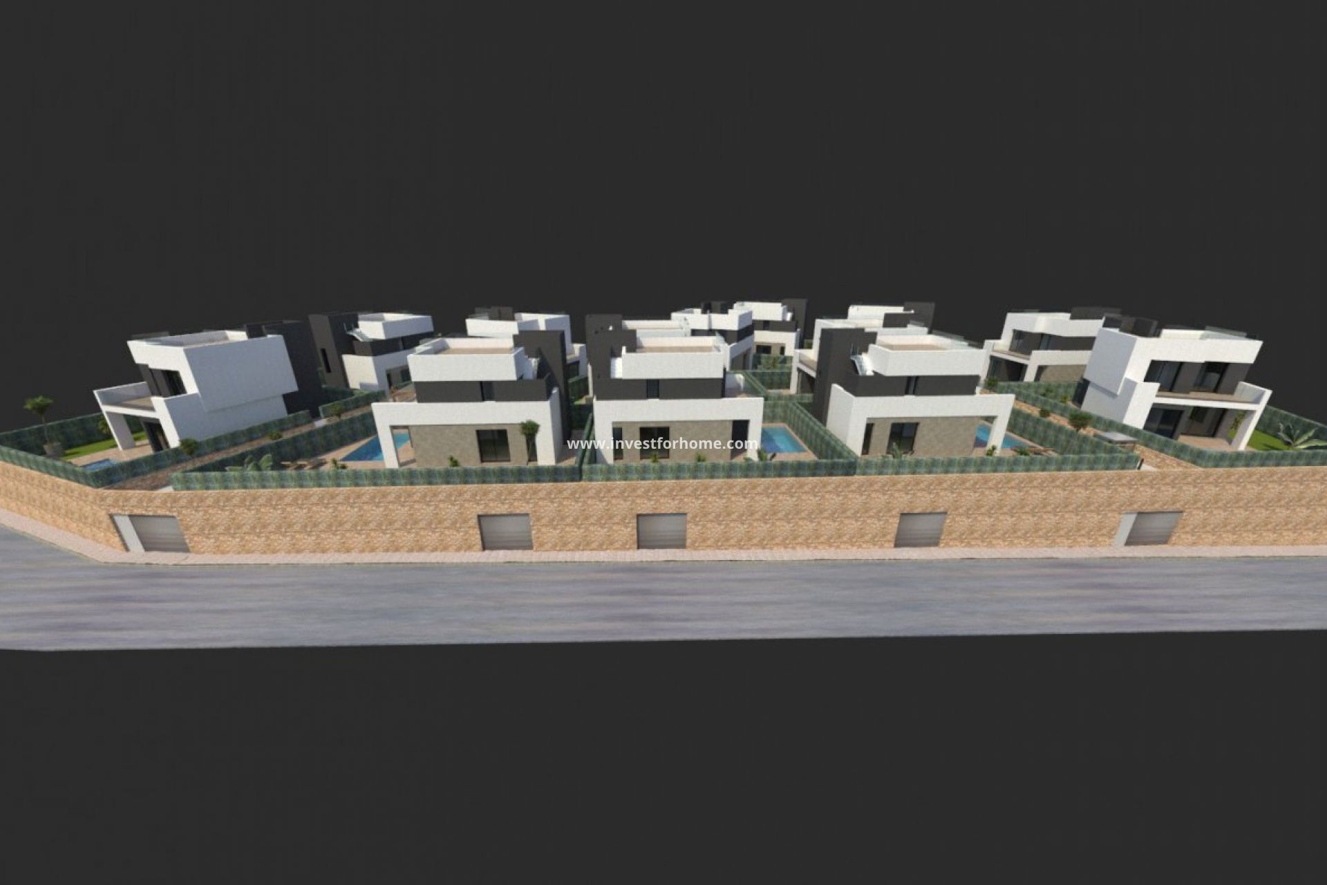 NEW BUILD VILLAS IN LA NUCIA New Build Residential of comfortable and luxurious villas with private pools in La Nucia. Villas consist of 3 large double rooms with fitted and lined wardrobes.One room is on the ground floor and the other two on the first floor. It consists of 4 completely finished bathrooms with glass screens, porcelain toilets and thermostatic taps in showers, one on the first floor, another in the garage and the other 2 en suite in the rooms on the first floor. Bright living room with large windows that give access to the private plot with pool and artificial grass where you can enjoy and relax. Fully equipped American kitchen with wall and base units, high-end appliances and an island with base units, SILESTONE countertop with built-in stainless steel sink and designer stainless steel extractor hood. Installation of Air Conditioning and Heating through AEROTHERMAL ducts with 2 independent machines (dual zone). Comfort and design PORCELANOSA provide exclusive finishes, such as floating floors, natural stone floors and top quality stoneware.The entire Villa has interior and exterior LED lighting and electric shutters. Residential located in an exclusive area of great quality and with all the comforts; terrace, solarium, private garage for 2 vehicles, garden areas, urbanization, pool and everything you can imagine. Residential committed to the enviroment , equipped with solar panels for the production of domestic hot water, LED lighting and THERMAL-ACOUSTIC insulation. La Nucía is a municipality in the comarca of Marina Baixa, Alicante. It borders the municipalities of Altea, Callosa d'En Sarrià, Benidorm, Polop and L'Alfàs del Pi. La Nucia is located in a fruit valley between Benidorm and Callosa d'En Sarrià, 3 km from the coast of Altea. The urban center is on a promontory overlooking the Mediterranean Sea, 51 km north of Alicante and 8 km north of Benidorm. DISTANCES: - Access from highway A. - 5 minutes from Terra Mitica. - 5 minutes from the ELIANS School. - 5 minutes from supermarkets, cafes and all kinds of services. - 10 minutes from Benidorm Beach. - 15 minutes from Playa del Albir. - 20 minutes from Guadalest Castle. - 40Km from Alicante-Elche Airport.