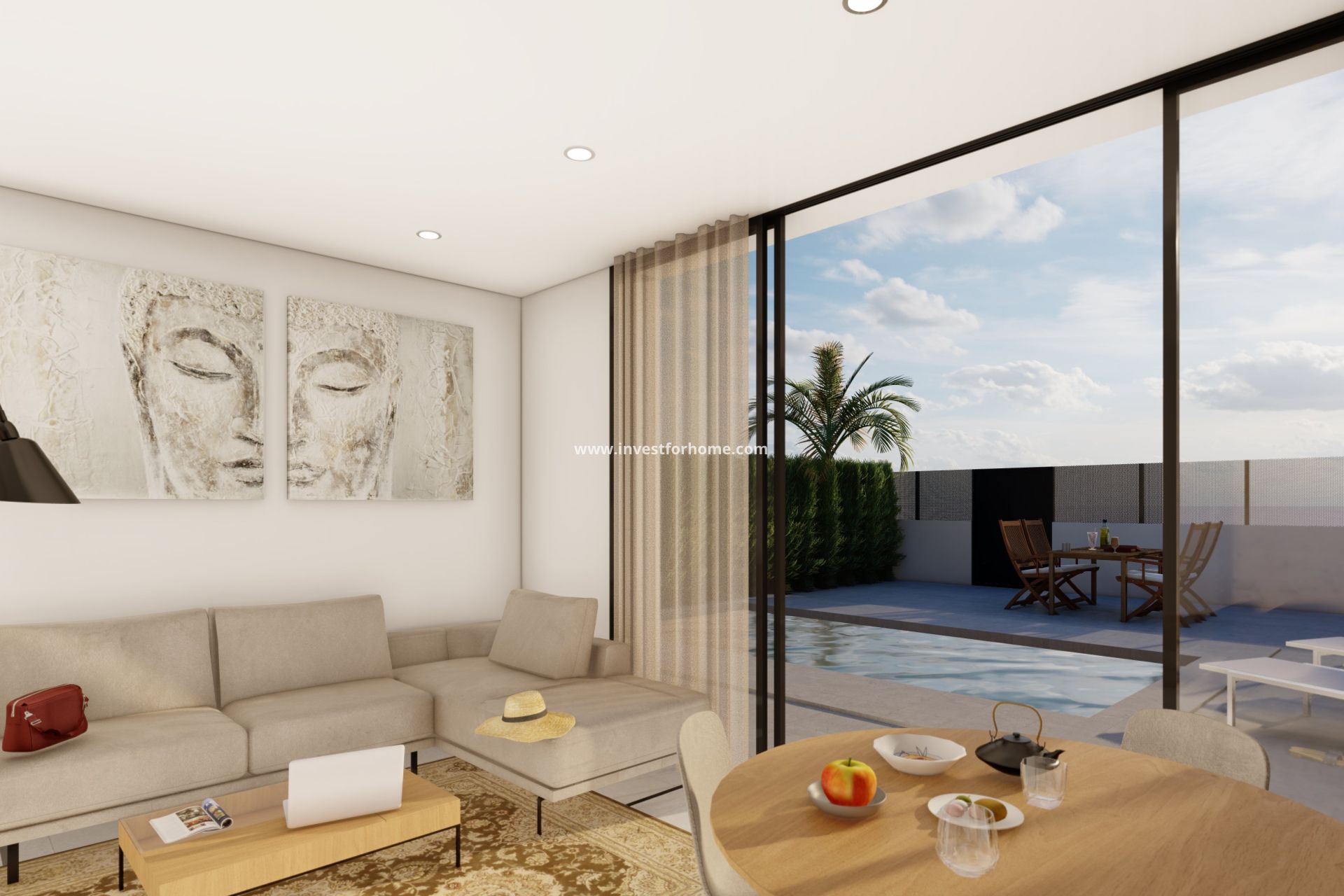 Located in the beautiful region of Murcia, this exclusive collection of 11 independent homes offers a unique lifestyle just one kilometer from the sea. These properties stand out for their modern and functional design, adapting to the needs of every family. With options of 2 to 3 bedrooms and 1 to 3 bathrooms, each home is designed to maximize the comfort and privacy of its residents. Proximity to the sea allows for enjoyment of a privileged natural environment, ideal for those seeking a balance between tranquility and access to urban services. OUTDOOR AREAS The exteriors of these independent homes in Murcia are designed to offer a space for relaxation and outdoor enjoyment. Each property features a private garden, perfect for family activities or simply enjoying the Mediterranean climate. Additionally, the terraces provide extra space for leisure, allowing you to enjoy the views and natural surroundings. The inclusion of a private pool in each home adds a touch of luxury and exclusivity, turning the home into a personal oasis. INDOOR AREAS The interior of these independent homes in Murcia is carefully designed to offer maximum comfort and functionality. Ceramic floors add a modern touch and are easy to maintain. The homes come fully furnished, making moving in easy and allowing you to enjoy your new home from day one. Electric blinds and included appliances add convenience and efficiency to daily life. Built-in wardrobes offer ample storage space, while pre-installed air conditioning ensures a pleasant environment year-round. FUENTE ÁLAMO DE MURCIA Fuente Álamo de Murcia, in the region of Murcia, is distinguished by its tranquillity and its link with nature. Although it is not a mass tourist centre, its charm lies in its rural atmosphere and its proximity to places of interest. Tourism in Fuente Álamo focuses on its rural environment and its relationship with nature, conducive to hiking and outdoor activities. In addition, its proximity to the beaches of the Costa Cálida adds to the attraction of the area. The lifestyle in Fuente Álamo is tranquil and rooted in rural tradition. Residents value serenity, communal living and connection to the land. The local gastronomy is based on typical dishes of the region, with fresh products and authentic flavours. Fuente Álamo offers a serene and rural atmosphere for those seeking a quiet life in a natural and authentic environment. MURCIA Murcia, in southeastern Spain, is a city with a rich history and a vibrant atmosphere. Its historic quarter is home to architectural gems such as the Cathedral of Santa Maria and the Real Casino de Murcia, reflecting its cultural heritage. Tourism in Murcia focuses on its historical heritage, cultural festivals and gastronomy. The Easter Week processions and the Festival Internacional del Cante de las Minas (International Festival of Cante de las Minas) are outstanding events. In addition, its natural surroundings, such as the Segura River and the El Valle Regional Park, attract nature lovers. The lifestyle in Murcia is lively and welcoming. Murcians enjoy a wide range of cultural activities, a rich gastronomy based on the Murcian market garden and a lively nightlife. The community values traditions and the warmth of the Mediterranean atmosphere, creating a city that fuses history, culture and vibrant contemporary life.
