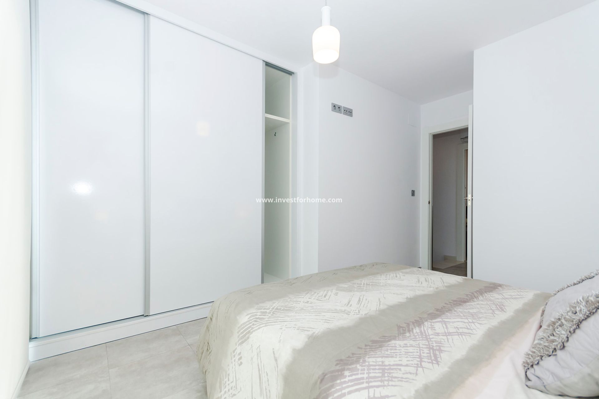 Located in the charming town of Torrevieja, this residential complex offers an exclusive selection of 7 townhouses. Designed for those seeking a home in a peaceful and well-connected environment, these townhouses are just 3 kilometers from the sea, allowing you to enjoy the sea breeze and a Mediterranean lifestyle. The housing typology focuses on townhouses, ensuring a community living experience with the necessary privacy for each family. The location in Torrevieja is ideal for those who want to be close to services, shops, and leisure options, without giving up the tranquility of a residential setting. OUTDOOR AREAS The exteriors of these townhouses in Torrevieja are designed to maximize enjoyment of the Mediterranean climate. Each home features a private terrace, perfect for relaxing outdoors or enjoying family meals. Additionally, there is the option to include a solarium, ideal for those who want additional space for sunbathing or creating a personalized relaxation area. The presence of a private pool in each townhouse adds a touch of luxury and exclusivity, allowing you to cool off on the hottest days without leaving home. The electric shutters installed on the exterior windows offer convenience and security, allowing easy adjustment of light entry. INDOOR AREAS The interior of the townhouses is designed to offer comfort and functionality. With a layout that includes 3 bedrooms and the option of 2 or 3 bathrooms, these homes cater to the needs of different types of families. Ceramic floors add a modern touch and are easy to maintain, while built-in wardrobes in the bedrooms optimize storage space. The pre-installation of air conditioning ensures the home is ready to maintain a pleasant temperature year-round. Additionally, the homes are equipped with appliances, making the move and start of a new life in this cozy environment easier. TORREVIEJA Torrevieja, on the Costa Blanca, is a popular tourist destination known for its wide beaches, Mediterranean climate and vibrant atmosphere. It attracts tourists for its beautiful fine sandy beaches, such as Playa del Cura or Playa de la Mata, ideal for swimming and water sports. Tourism in Torrevieja focuses on its beaches, its lively promenade and its nightlife. It also stands out for its salt lagoon, the Salinas de Torrevieja, known for its therapeutic properties and for being a unique environment. The lifestyle in Torrevieja is dynamic and sea-oriented. Residents and visitors enjoy an active coastal life, taking part in water activities, local festivals and a lively nightlife. Torrevieja offers a vibrant coastal atmosphere for those looking to enjoy the sea, beaches and lively life on the Costa Blanca, fusing beach tourism with a wide range of leisure and entertainment.