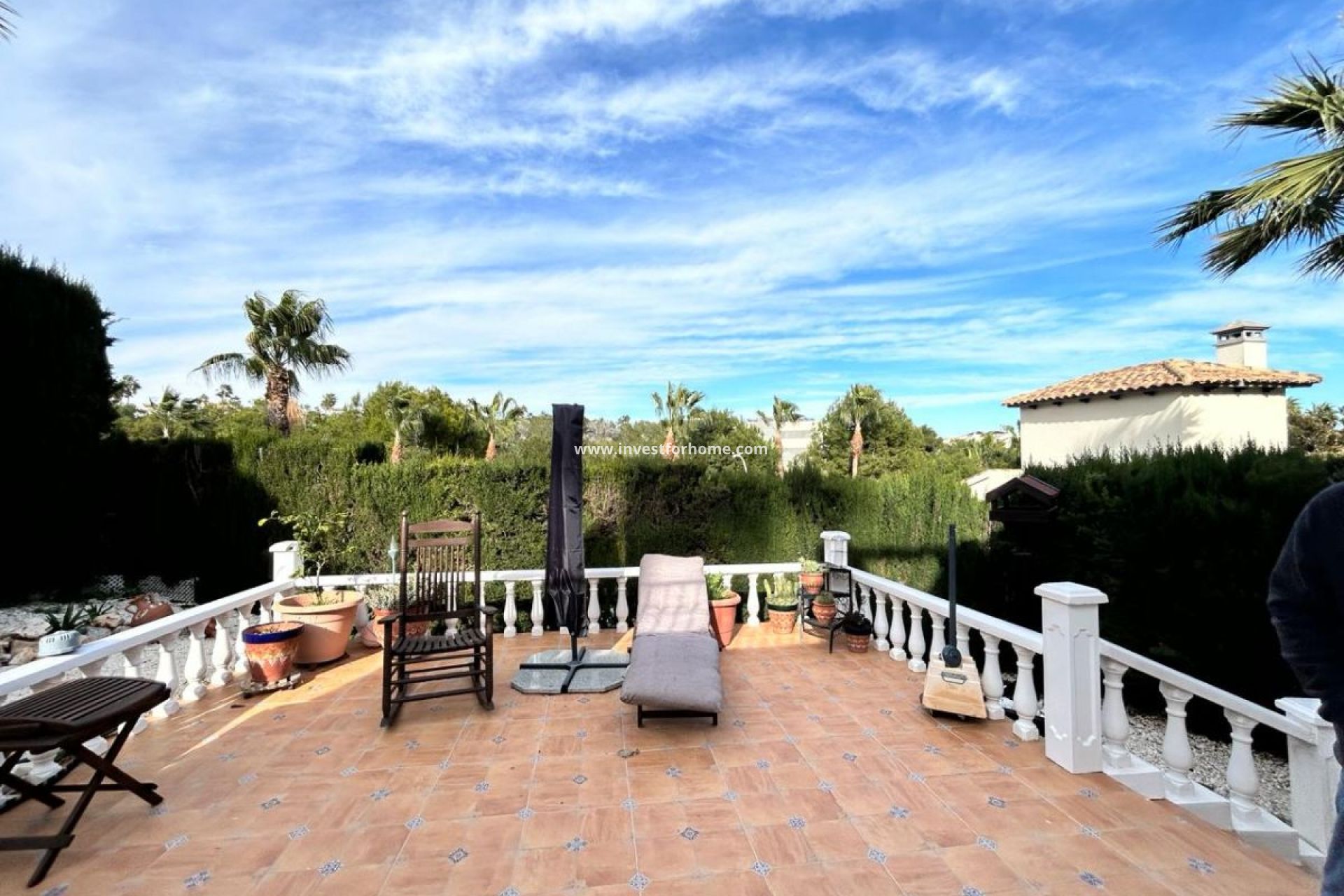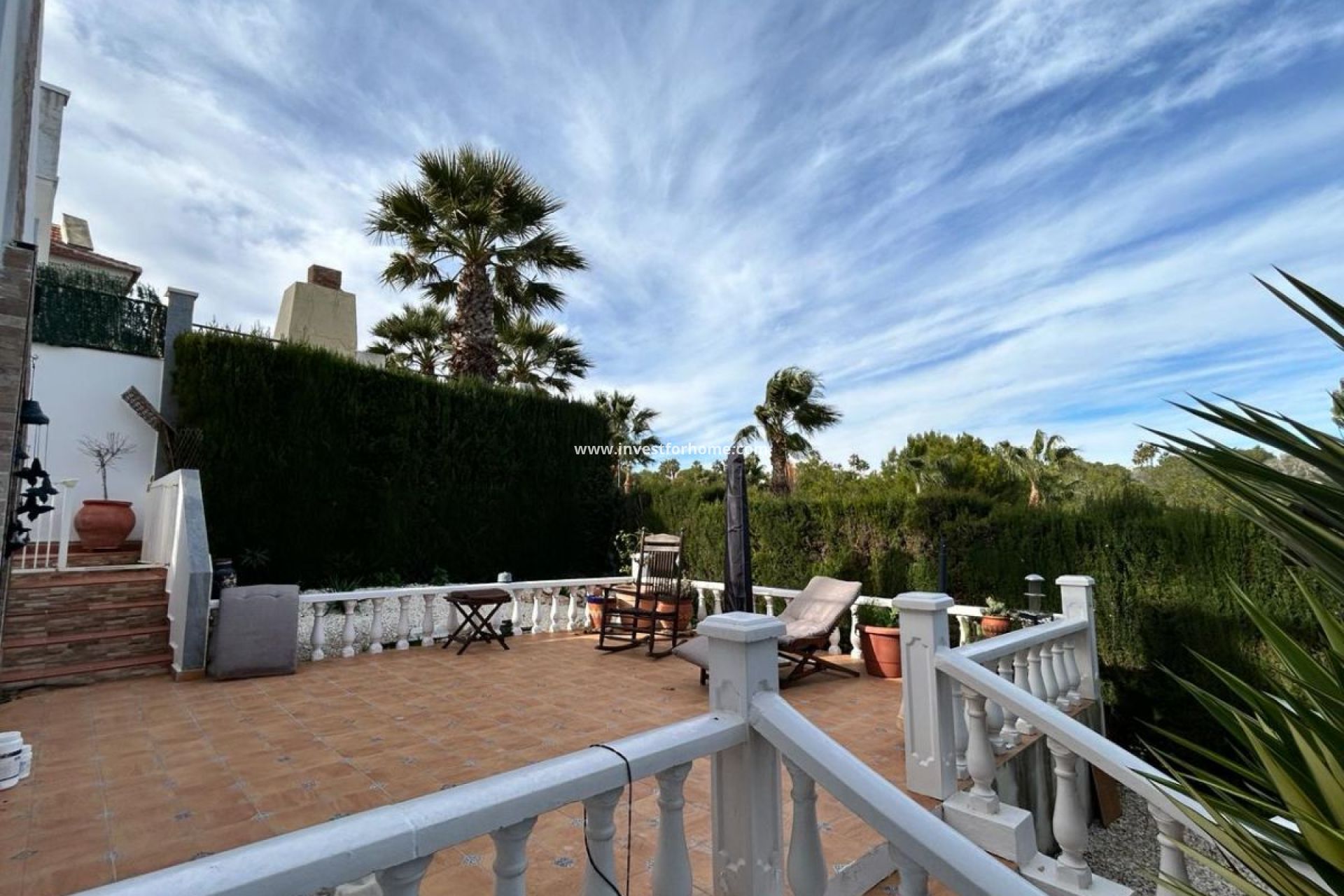 Mediterranean Semi-Detached Villa Near La Fuente – Prime Location on Costa Blanca South This charming Mediterranean-style semi-detached villa is located in one of the most desirable areas of South Costa Blanca, within walking distance of the popular La Fuente Commercial Centre, known for its lively restaurants, cafés and services. The property is built on a slightly elevated hillside plot, giving it a unique layout and wonderful open views. From the street level at the front, you enter the property where there is also private access to the garage. At the rear of the house, the land drops away, placing the terraces at an elevated position similar to the height of a third floor, offering beautiful panoramic views over the surrounding green areas. The villa is distributed over two levels and offers three bedrooms, two bathrooms and an additional guest toilet. The main entrance level features a bright living room and a separate fully equipped kitchen, both with access to a large sunny terrace where you can relax and enjoy the peaceful surroundings. On the lower level, you will find three bedrooms and two bathrooms, along with access to a spacious private terrace, providing another excellent outdoor living area. The property sits on a plot of approximately 210 m², with around 120 m² of living space, plus a 16 m² private garage with its own gate located next to the main entrance. Residents also benefit from a well-maintained community with a communal swimming pool and landscaped green areas. The location is ideal for both permanent living and holidays: • La Fuente Commercial Centre only 300 m away • Supermarkets Mercadona and Aldi within walking distance • Three golf courses within 5 minutes drive • Sandy beaches of Orihuela Costa just 10 minutes away With its elevated views, generous terraces and unbeatable location close to all amenities, this property offers a fantastic opportunity to enjoy the Mediterranean lifestyle on Costa Blanca South. Reasonable offers will be considered.